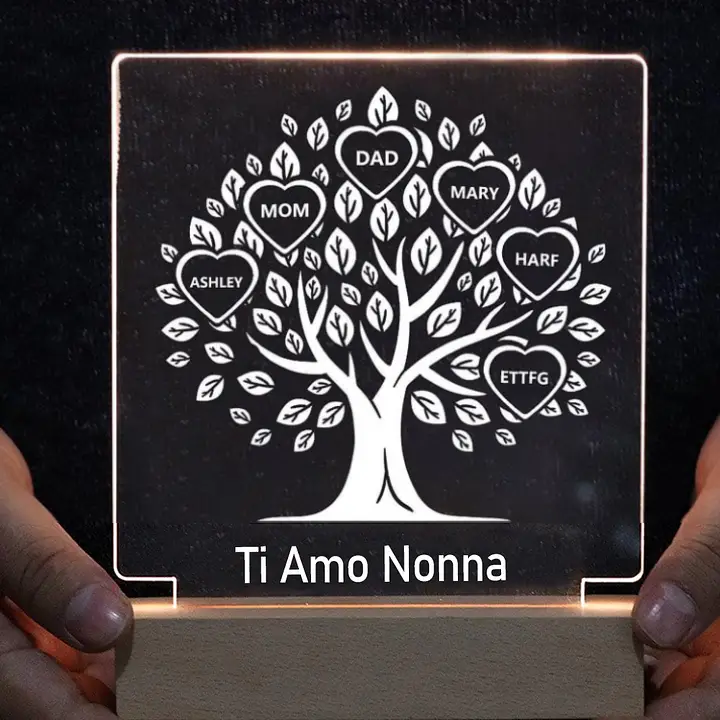 Lampada acrilica con albero di vita 7 nomi personalizzabili per mamma/nonna