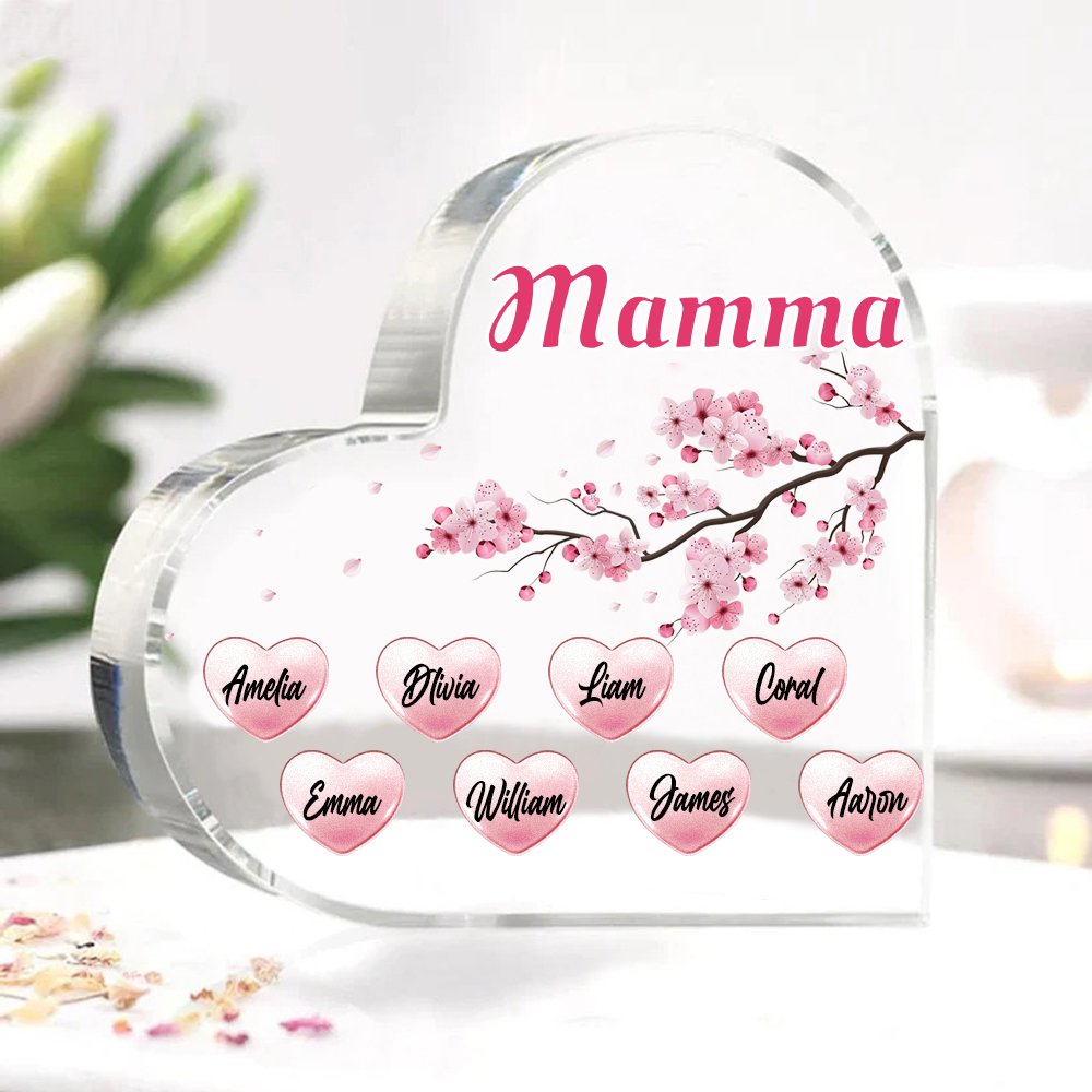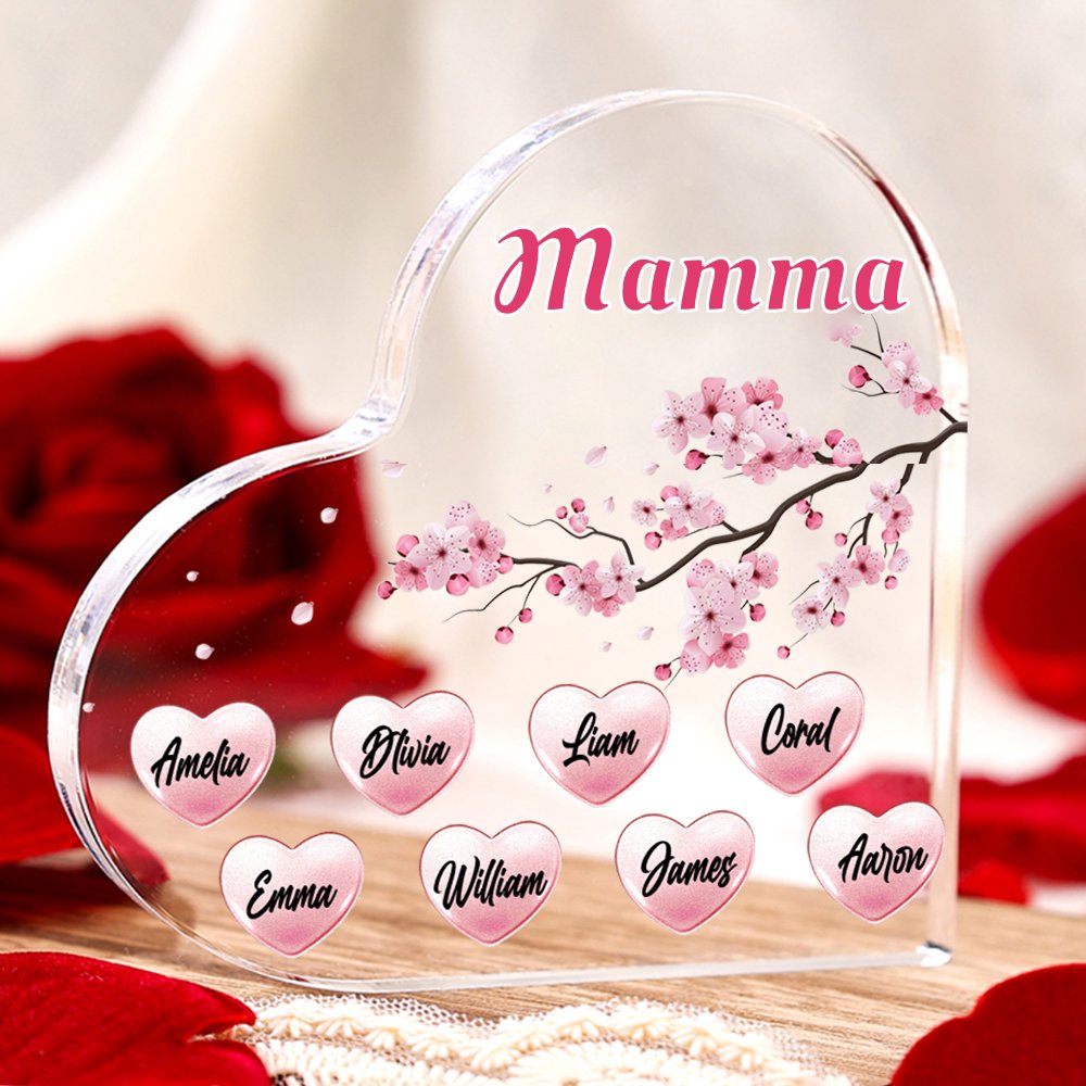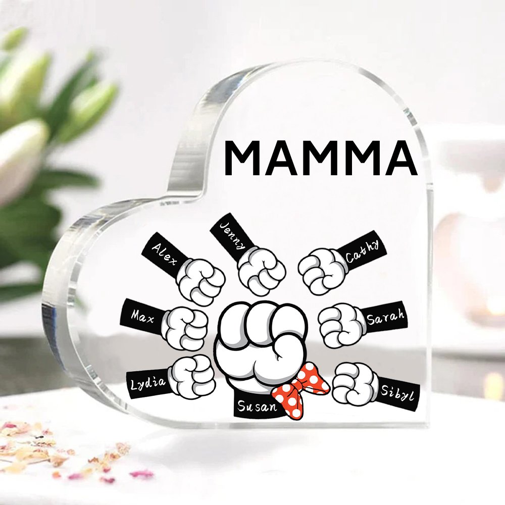 MAMMA Decorazione acrilica pugno a pugno a forma di cuore 8 nomi e 1 testo personalizzati per mamma/nonna