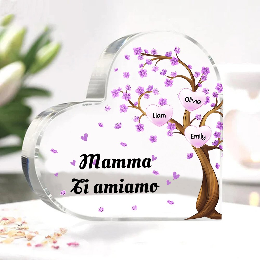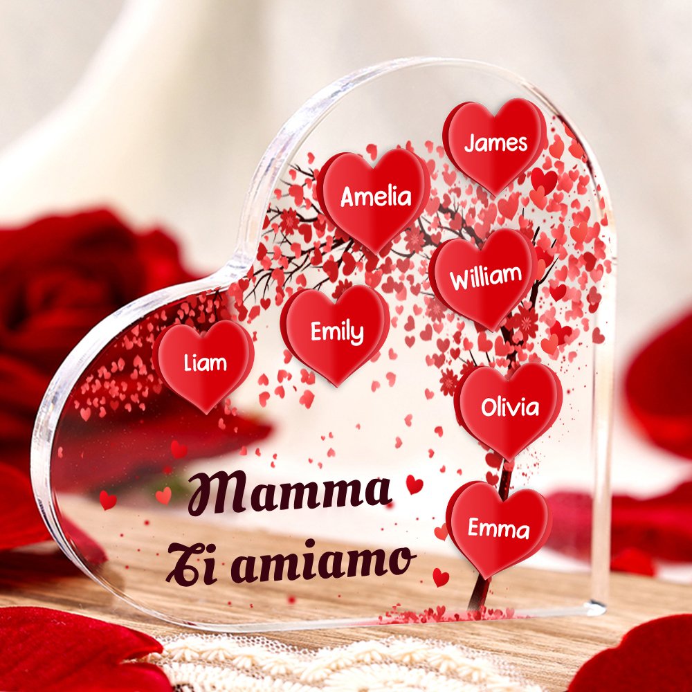 Mamma ti voglio bene-Decorazione acrilica albero di cuore a forma di cuore 8 nomi e 1 testo personalizzati per mamma/nonna