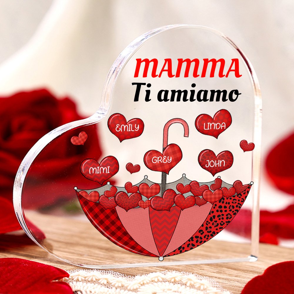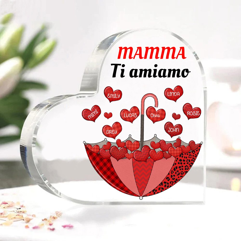 MAMMA Ti amiamo-Decorazione acrilica ombrello e cuore 8 nomi e 1 testo personalizzati per mamma/nonna