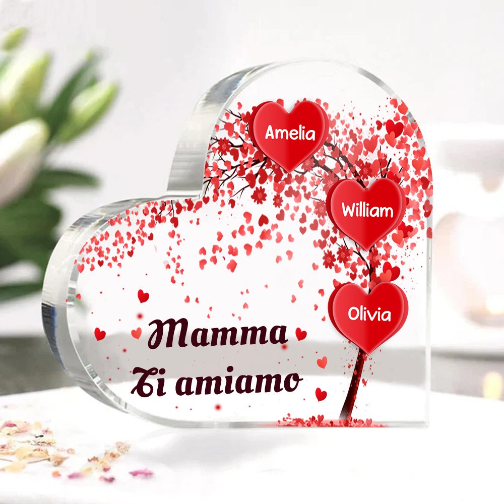Mamma ti voglio bene-Decorazione acrilica albero di cuore a forma di cuore 3 nomi e 1 testo personalizzati per mamma/nonna