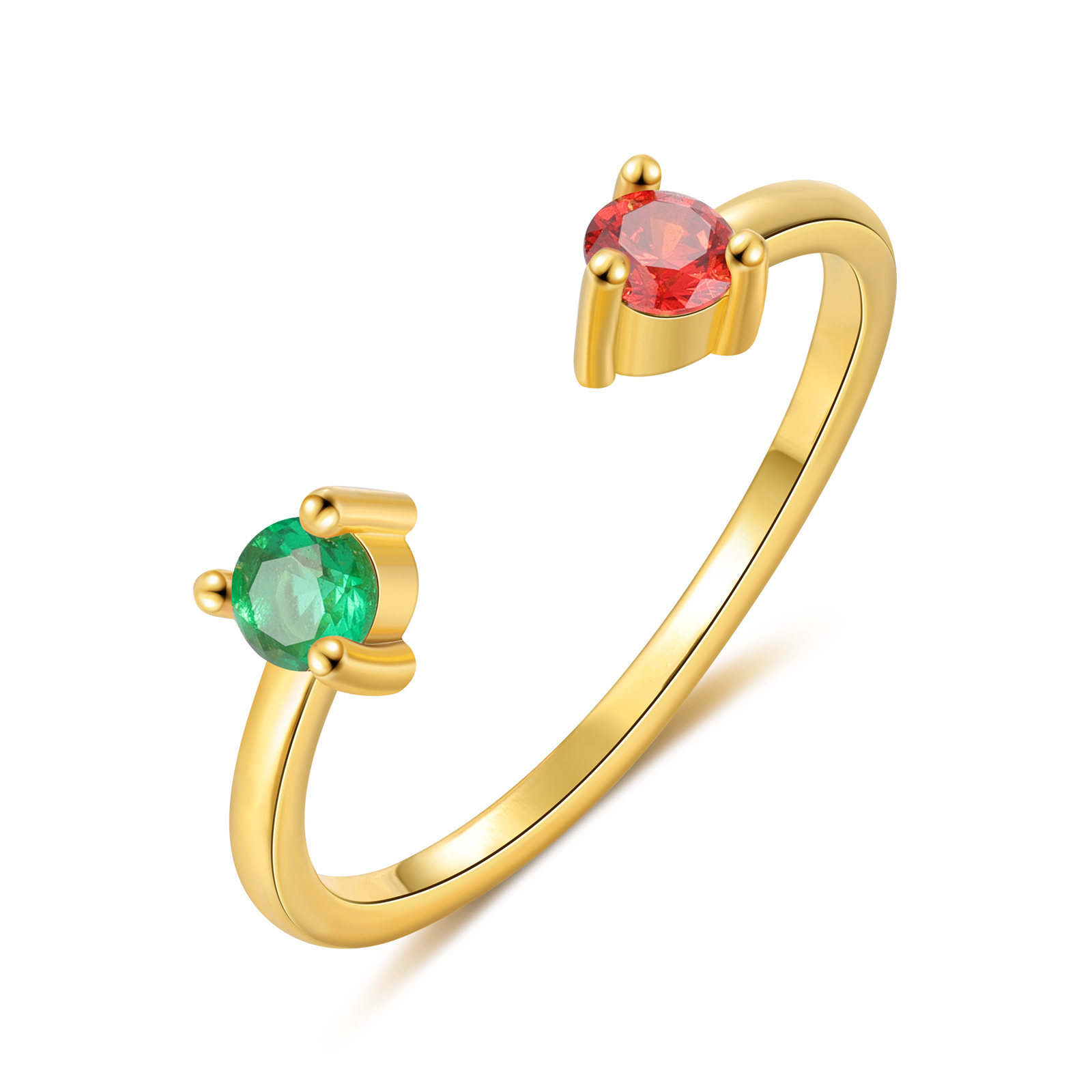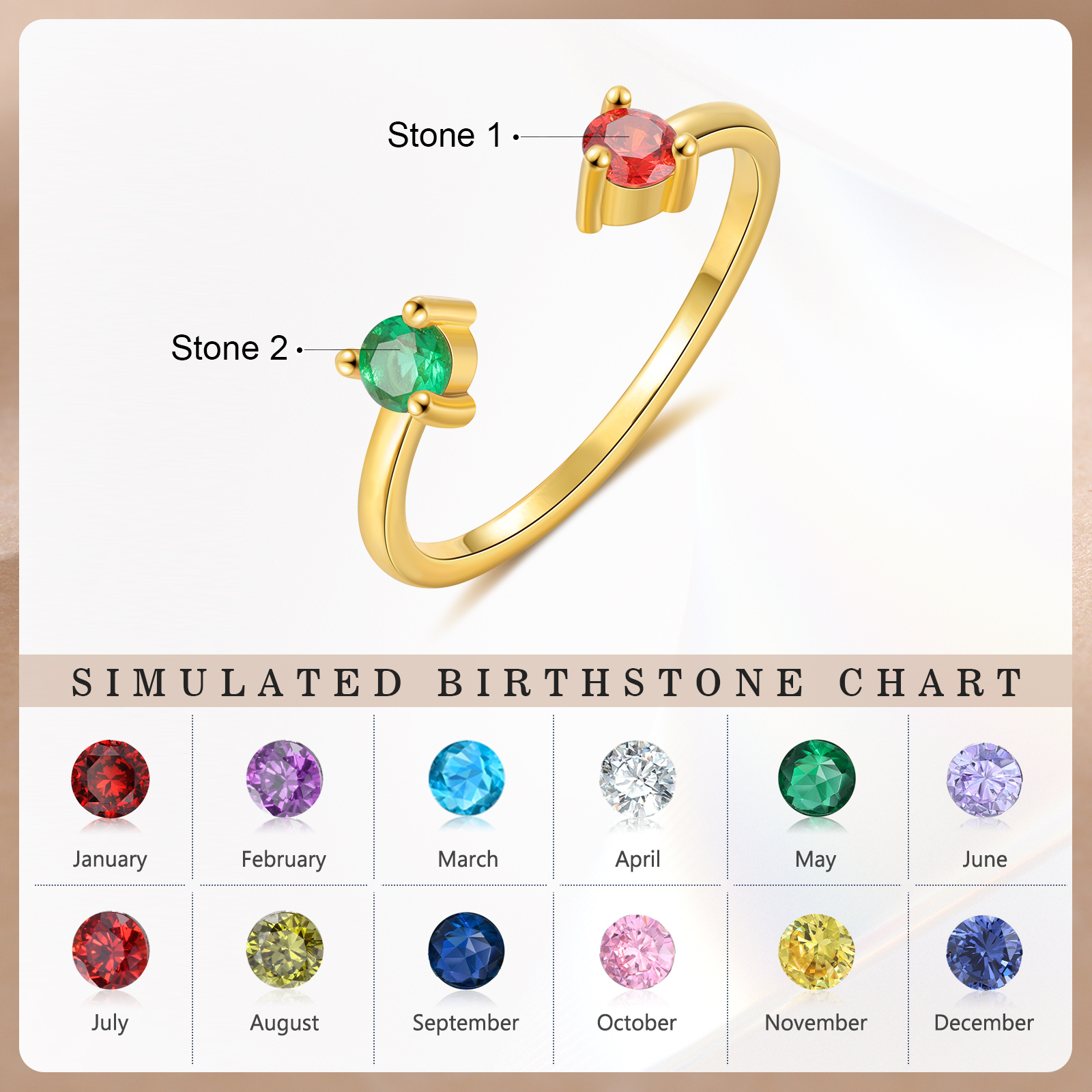 Anello aperto regorabile con 2 pietre di nascita personalizzati regalo per donna