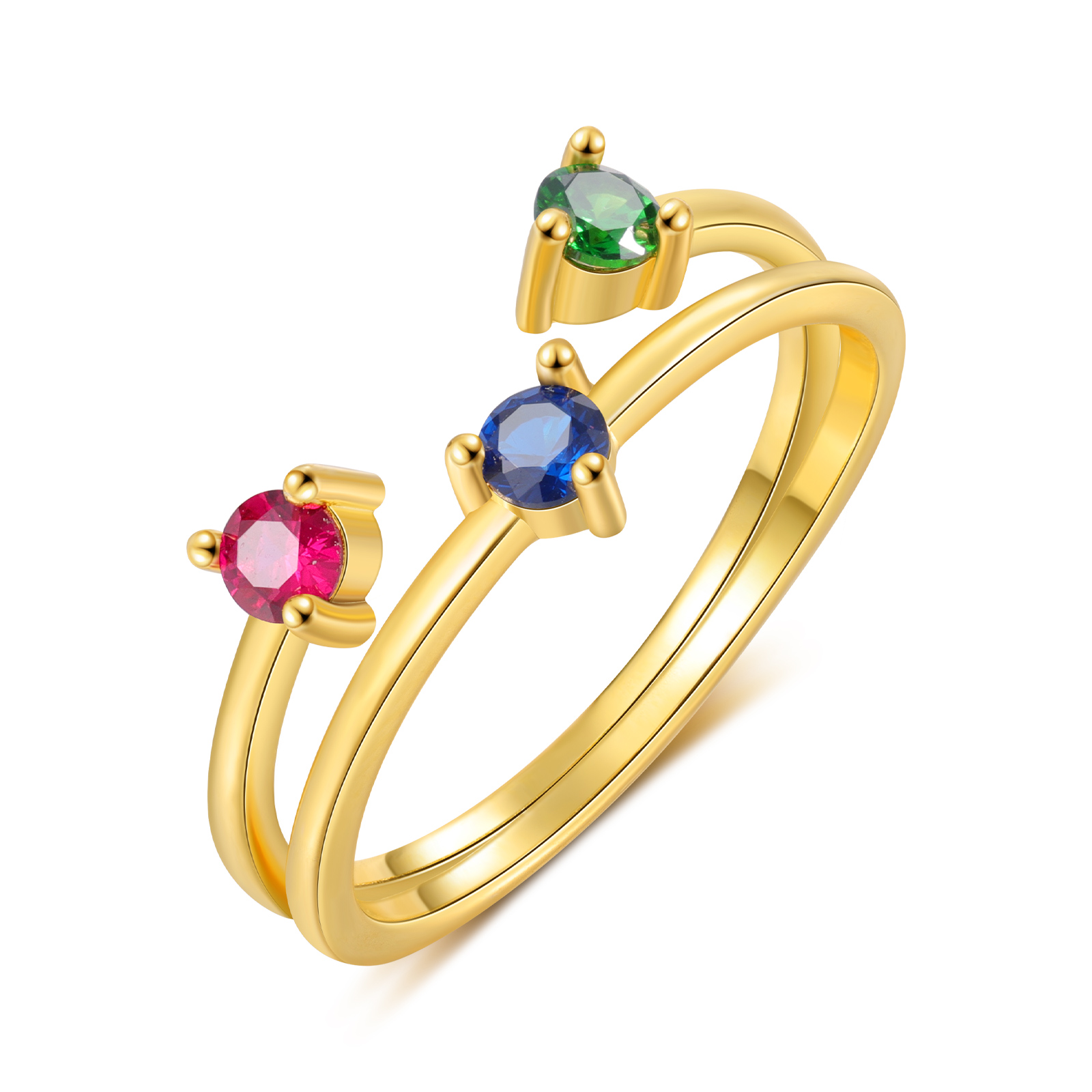 Anello aperto regorabile con 3 pietre di nascita personalizzati regalo per donna