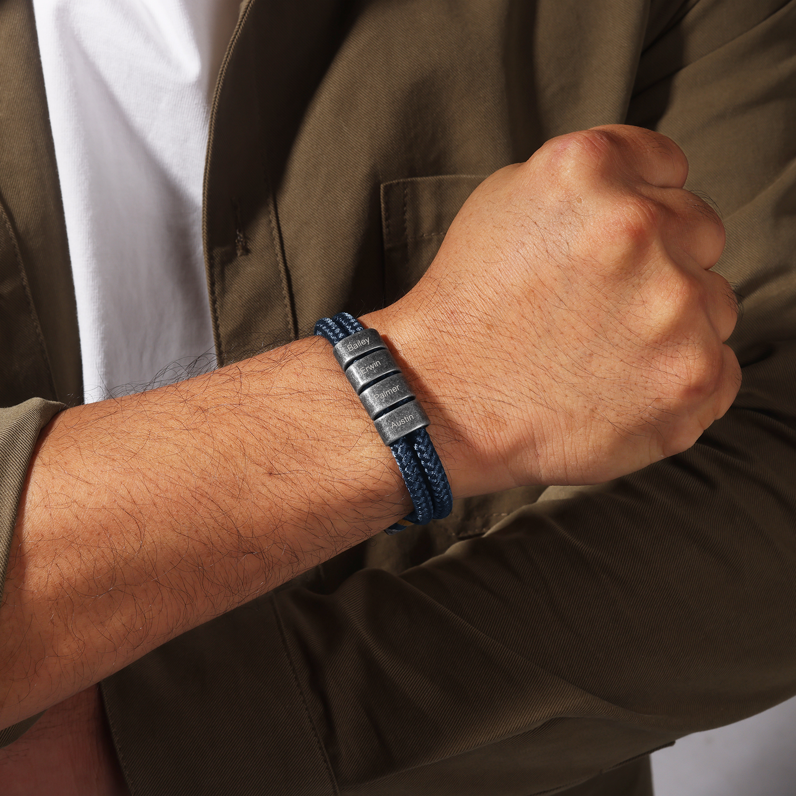 Bracciale marinario blu a corda per uomo 4 nomi personalizzati