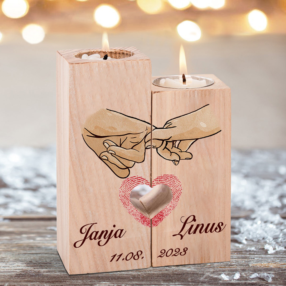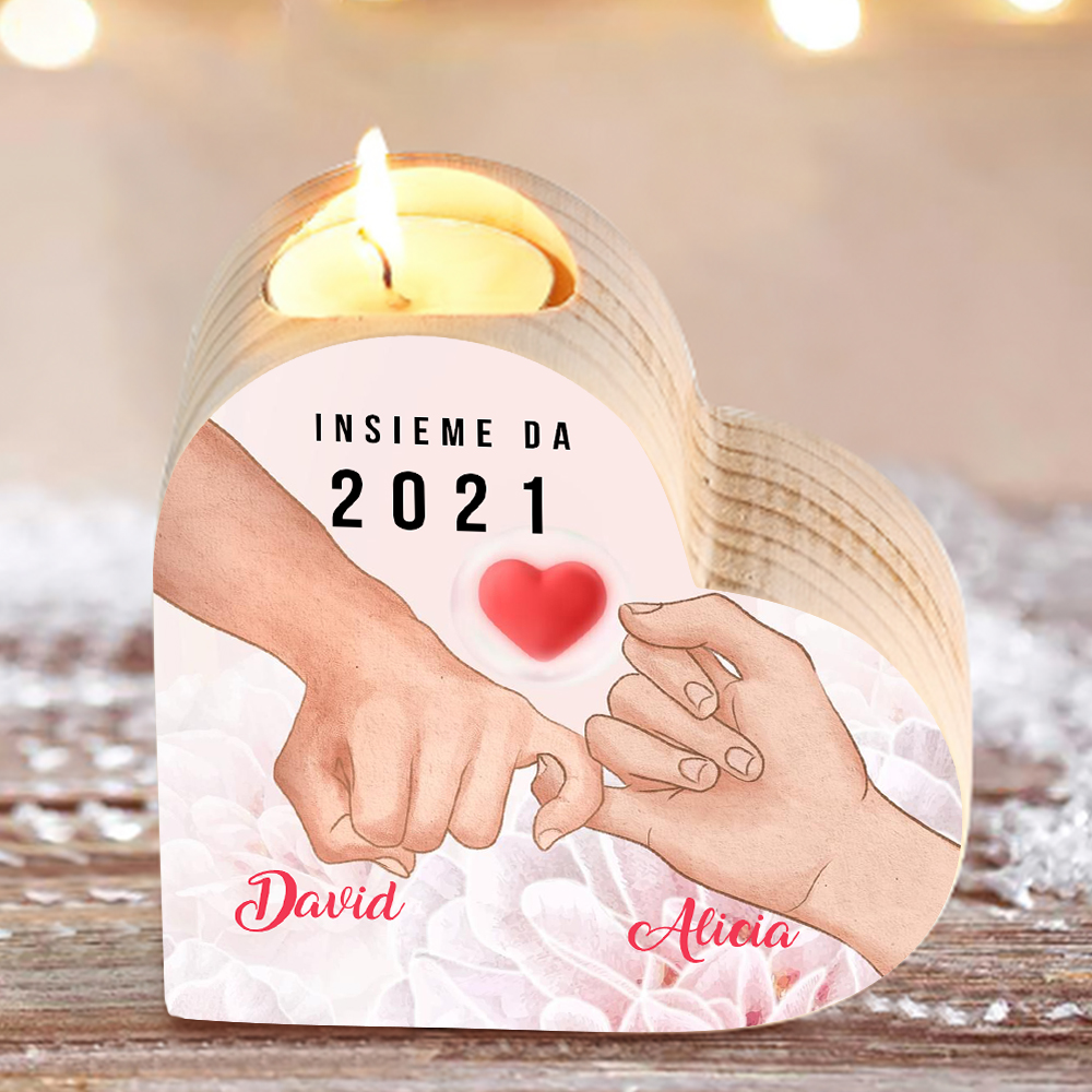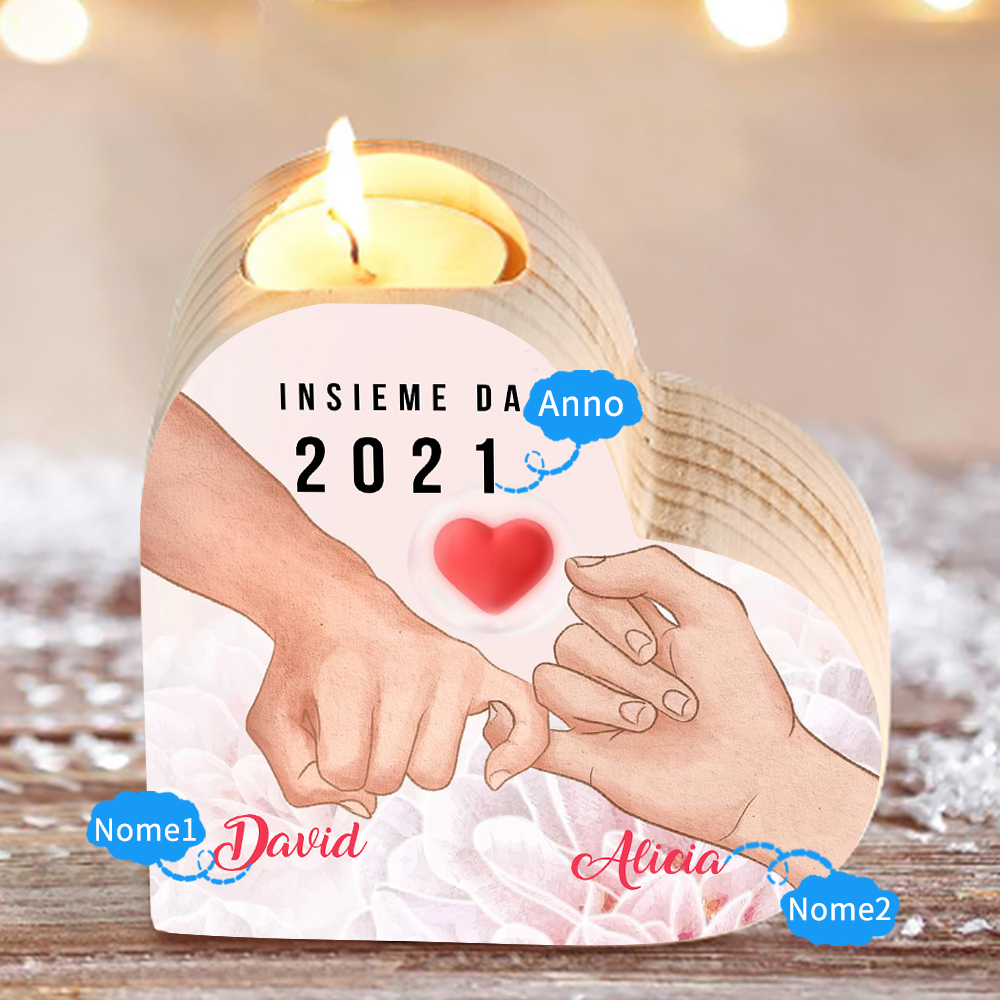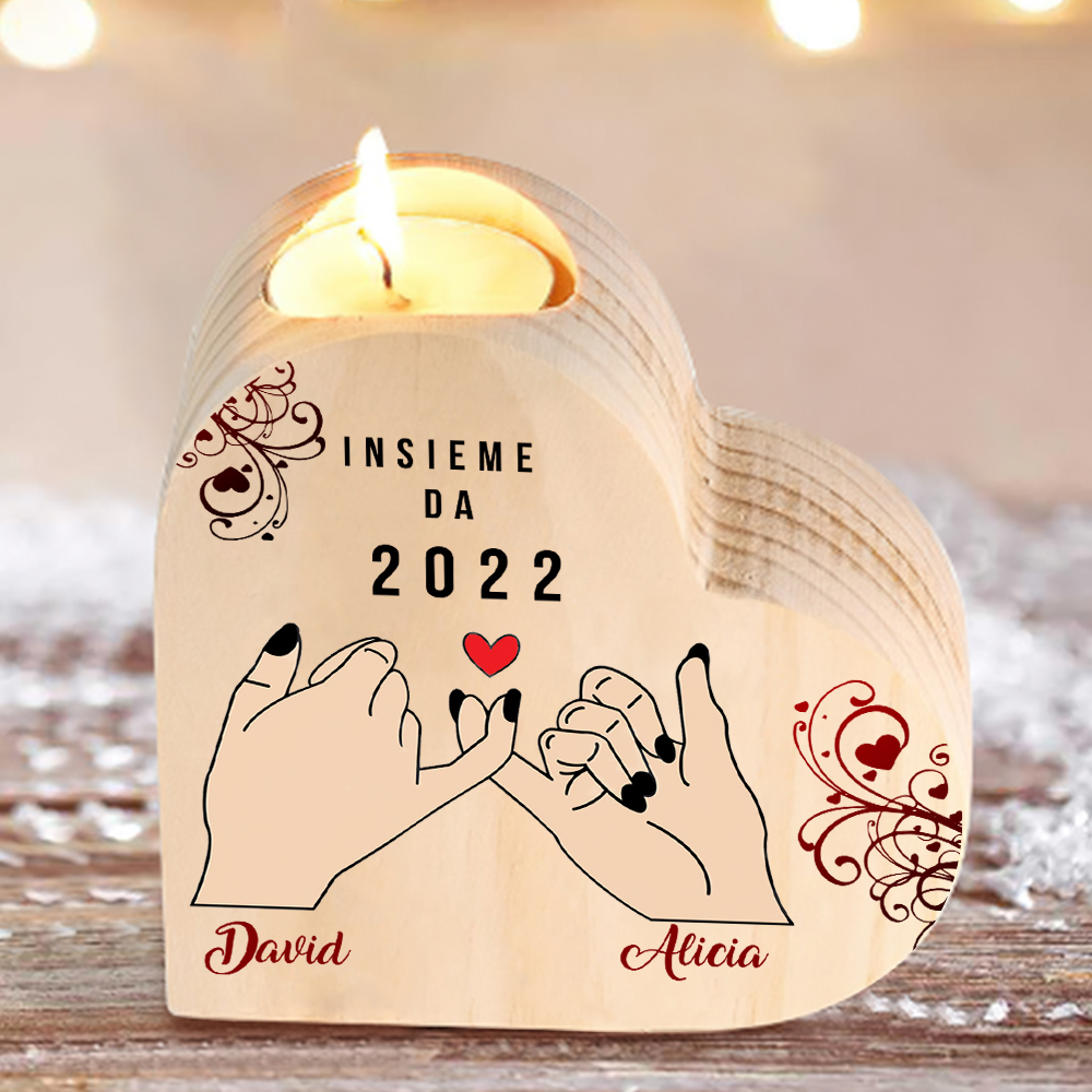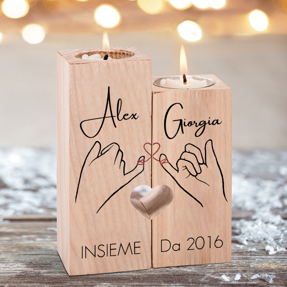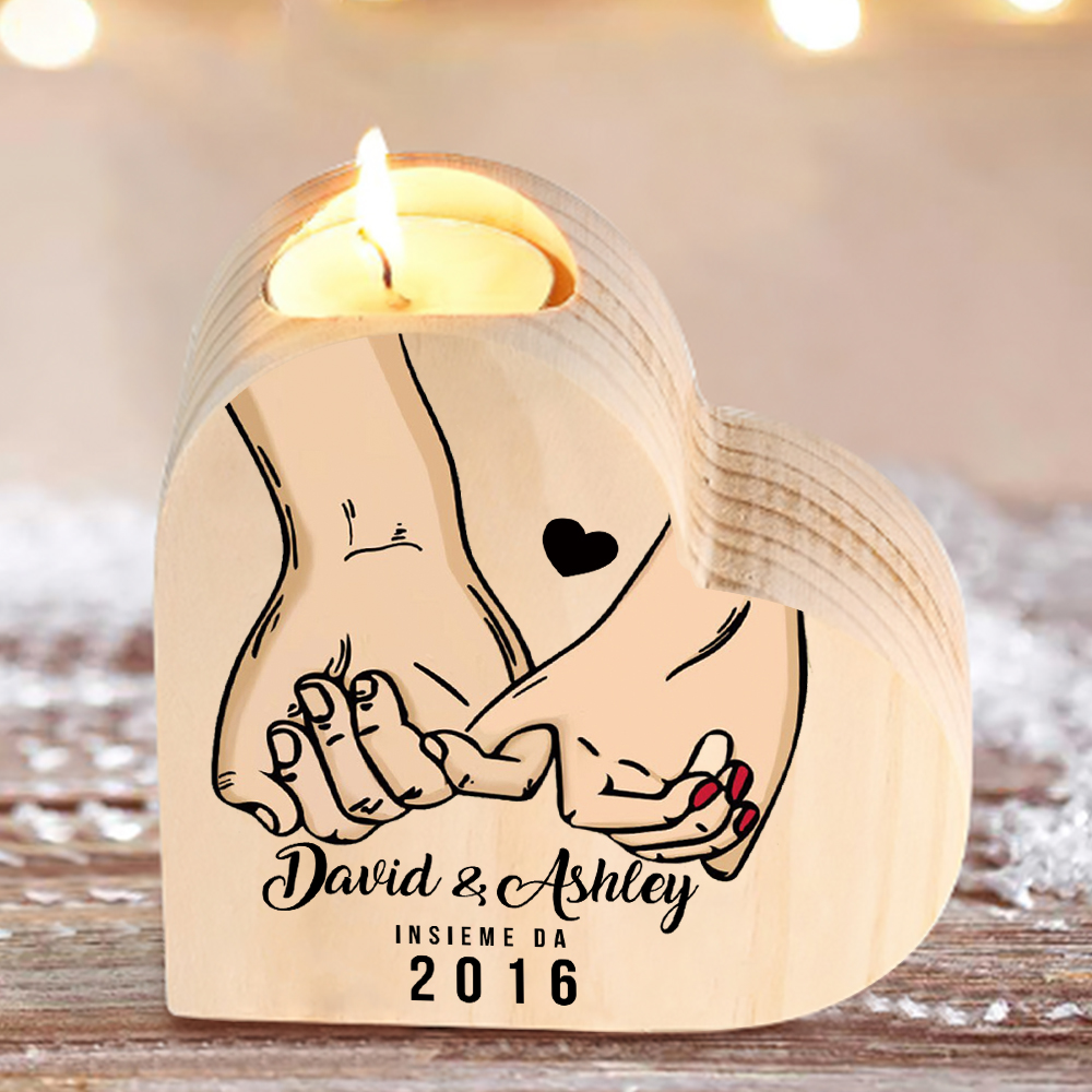 mano e mano insieme con un cuore-Candelieri in legno per coppia regalo di amore 2 nomi personalizzati