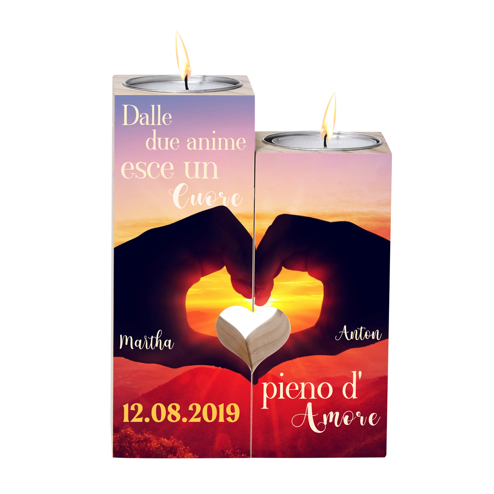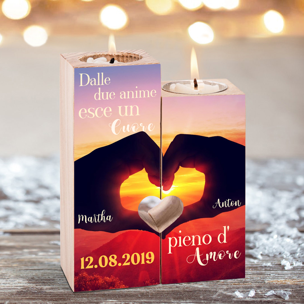 Un Cuore pieno d'Amore-Candelieri in legno per coppia regalo di amore 2 nomi personalizzati