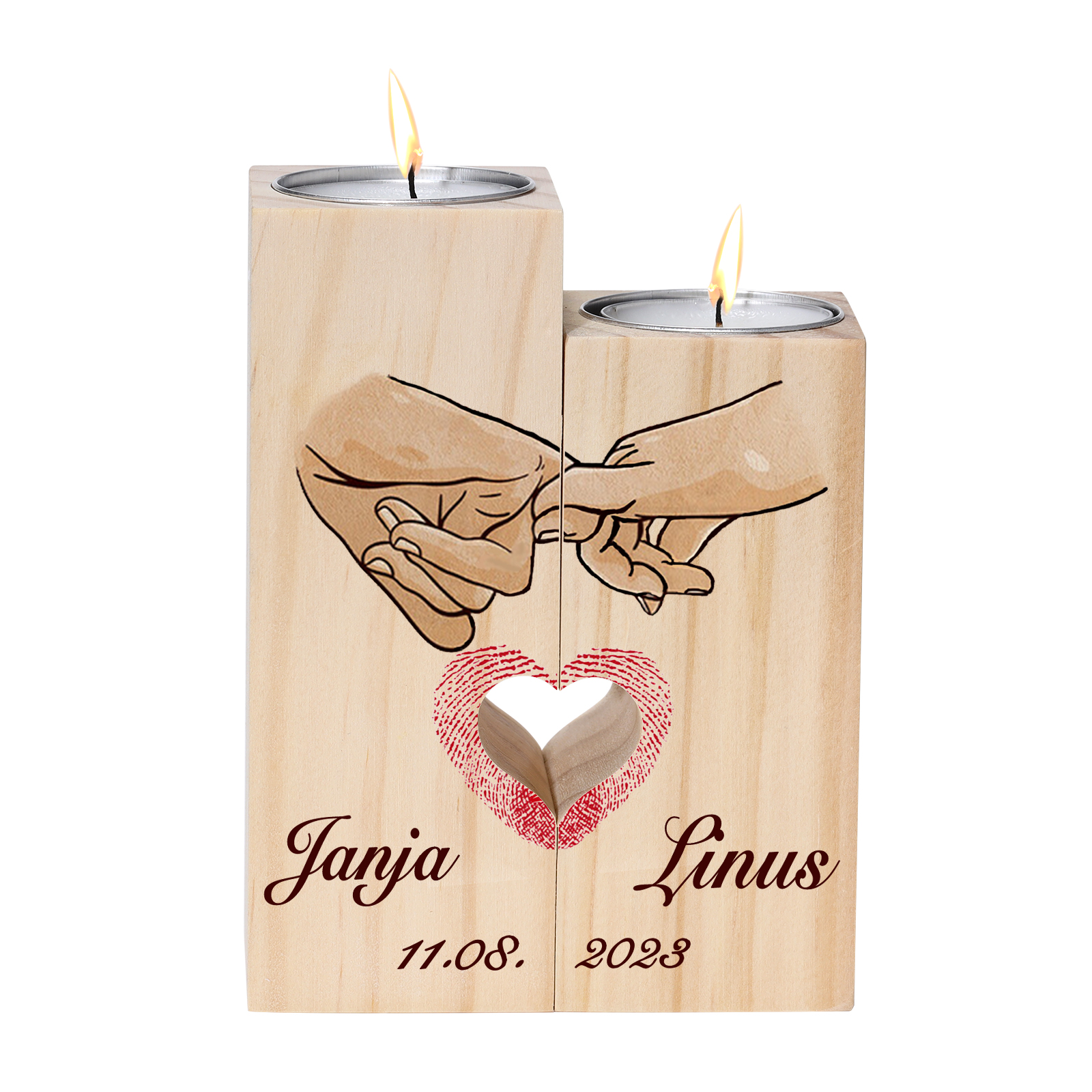 Mano nella mano insieme da-Candelieri in legno 2 nomi e 1 data personalizzati cuore rosso per coppia
