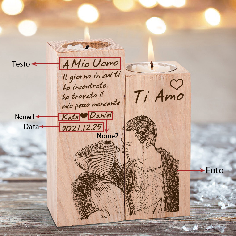 Il giorno di cui ti ho incontrato-Candelieri in legno 2 nomi 2 lettere 1 data e 1 foto personalizzati per coppia regalo di amore