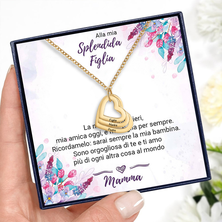 Alla mia figlia - Collana 3 nomi personalizzati con ciondilo cuore