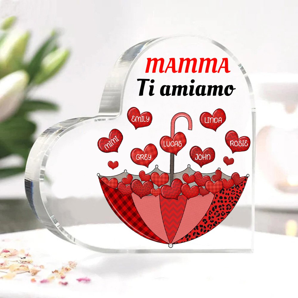 MAMMA Ti amiamo-Decorazione acrilica ombrello e cuore 8 nomi e 1 testo personalizzati per mamma/nonna