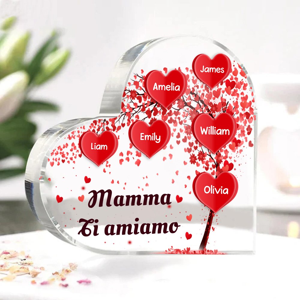 MAMMA Ti amiamo-Decorazione acrilica albero di cuore rosso 6 nomi e 1 testo personalizzati per mamma/nonna
