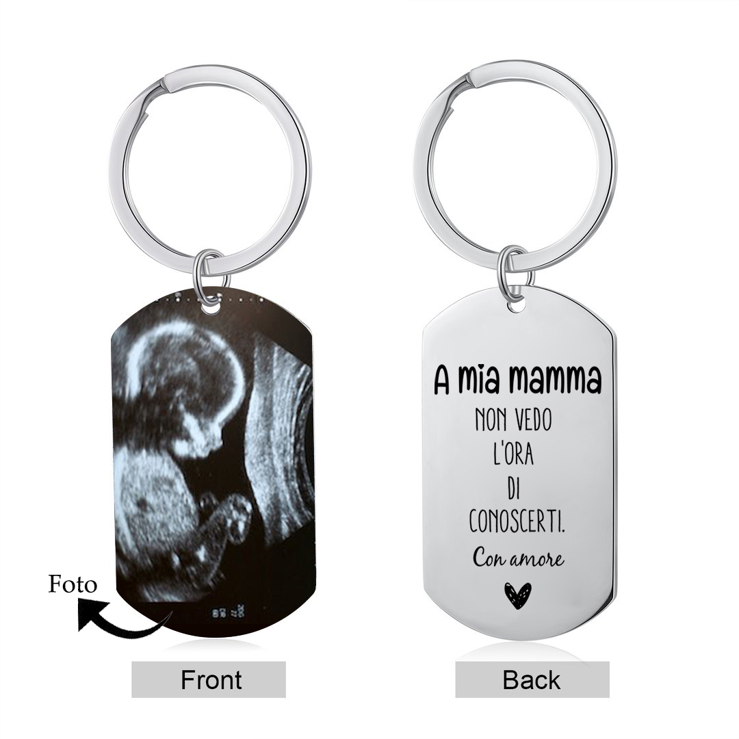 Mamma non vedo ora di conoscerti-Portachiavi con 1 foto personalizzata regalo per mamma/nonna