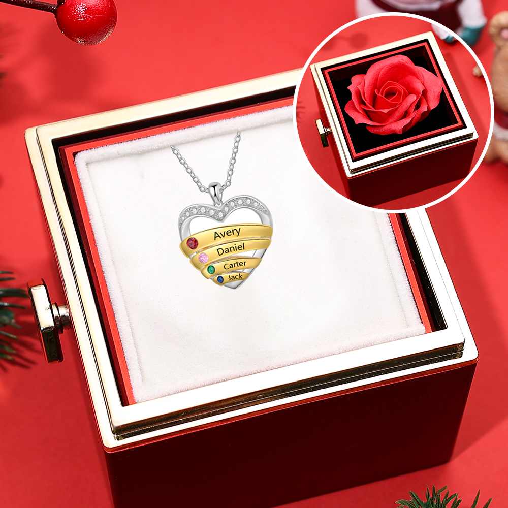 Collana cuore con ciondolo di mum 4 pietre di nascita e 4 nomi personalizzati regalo per mamma/nonna