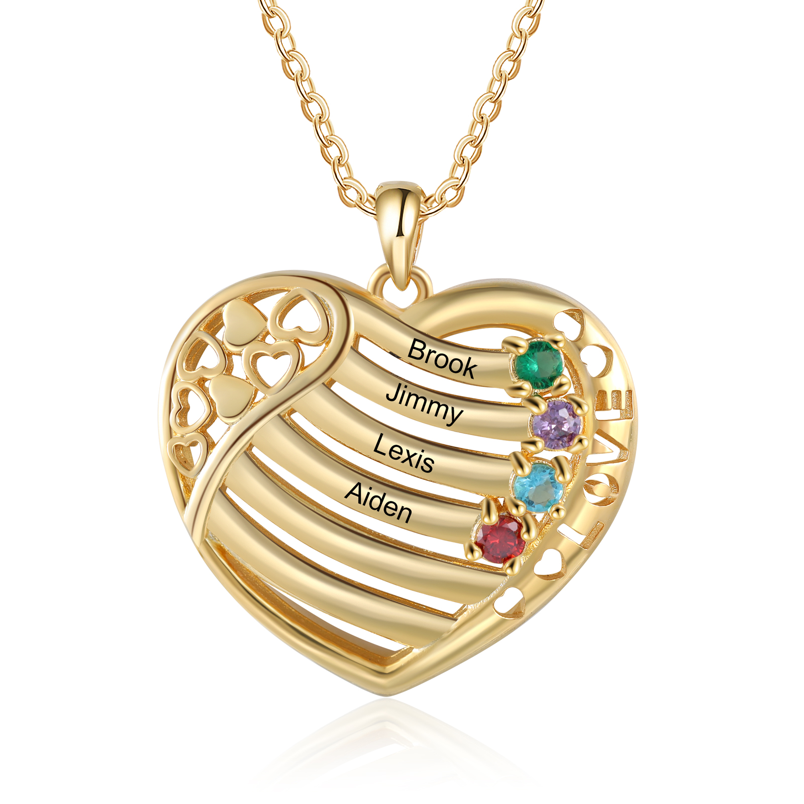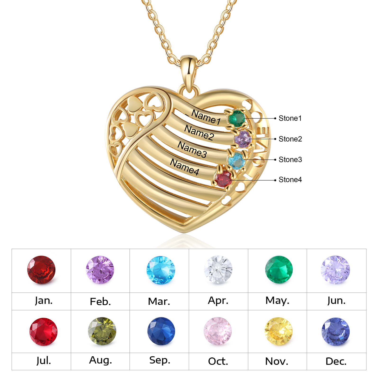 Collana cuore con ciondolo di 4 nomi e 4 pietre di nascita regalo per donna