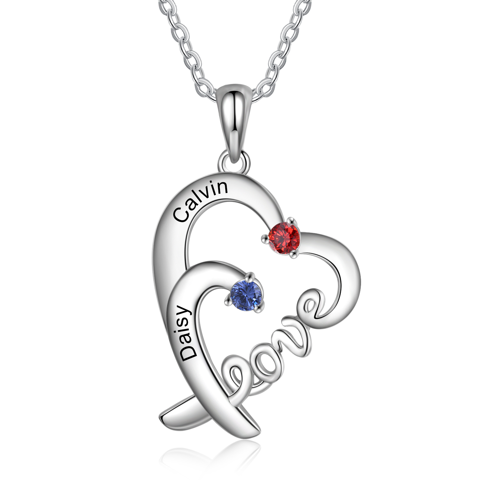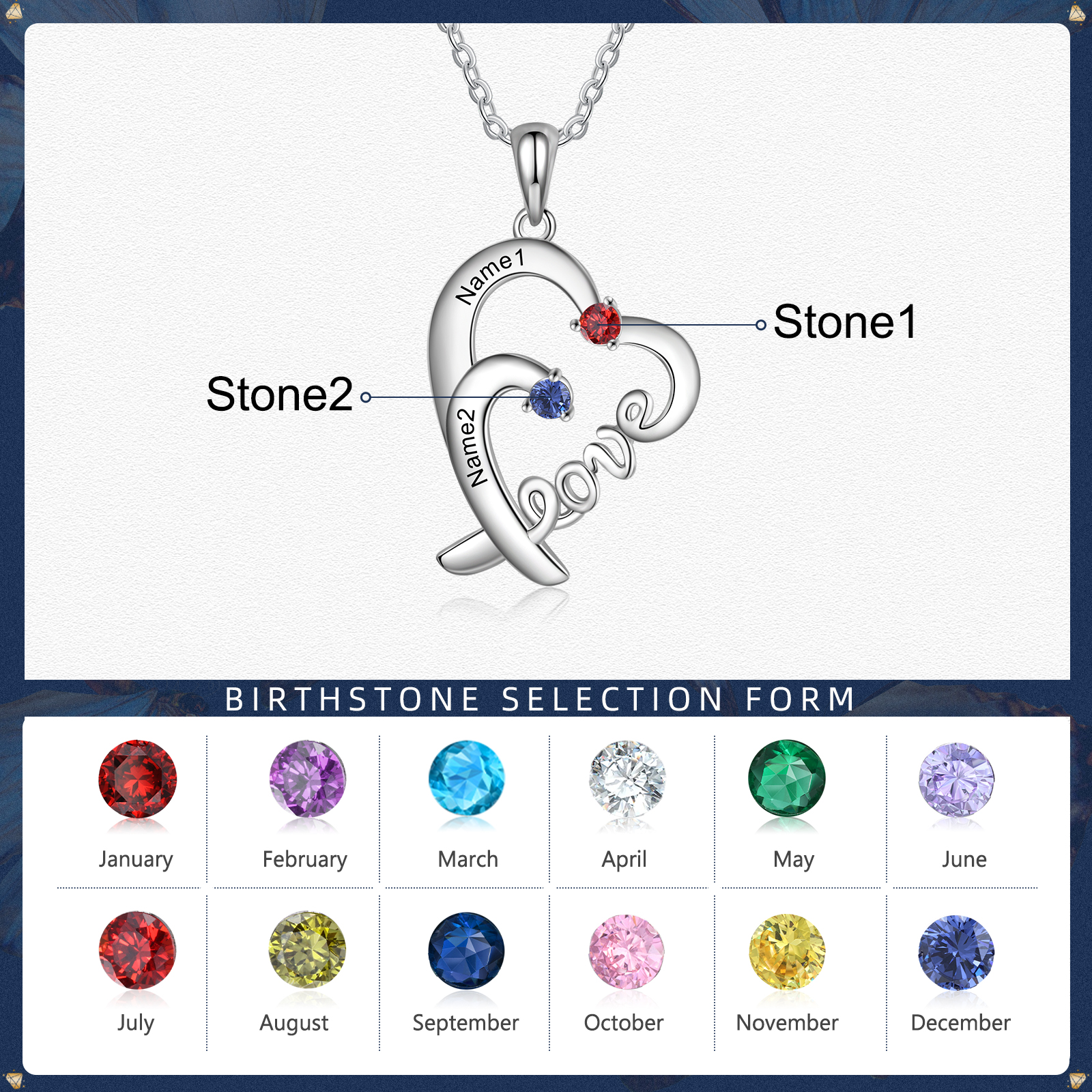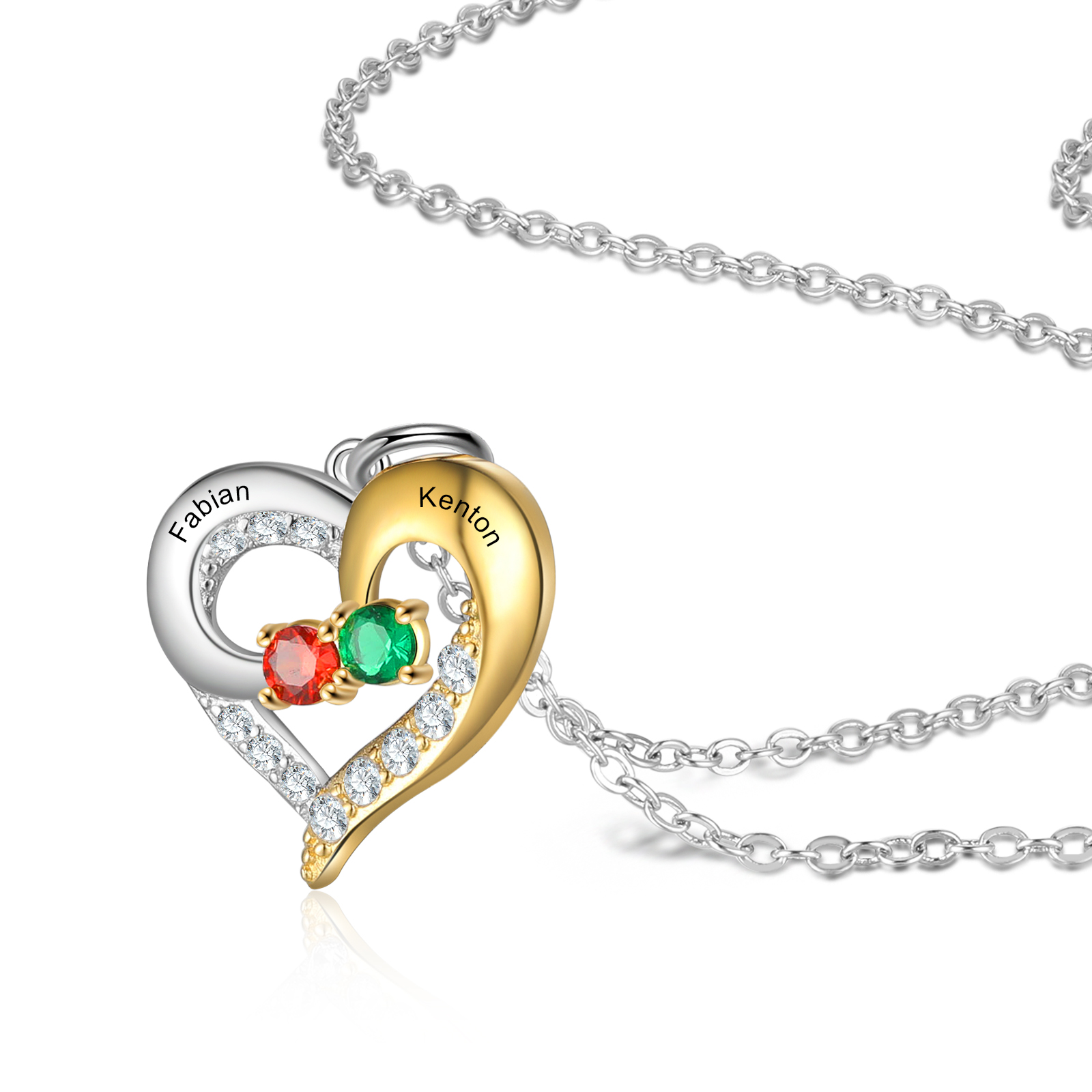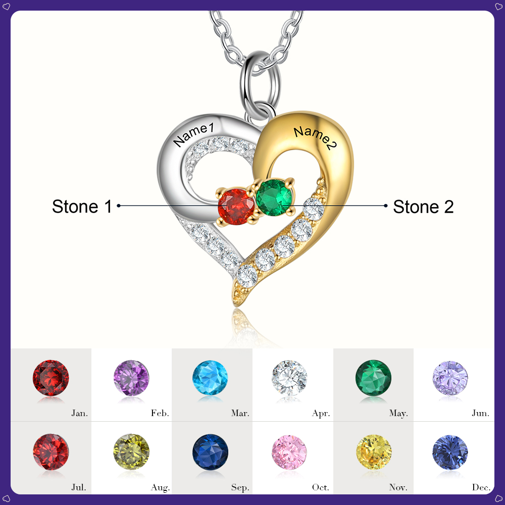 Collana cuore con ciondolo di 2 nomi e 2 pietre di nascita regalo per donna