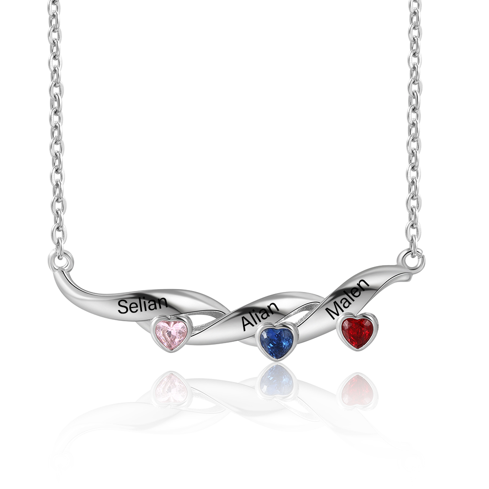 Collana cuore con 3 nomi e 3 cuore pietre di nascita regalo per donna