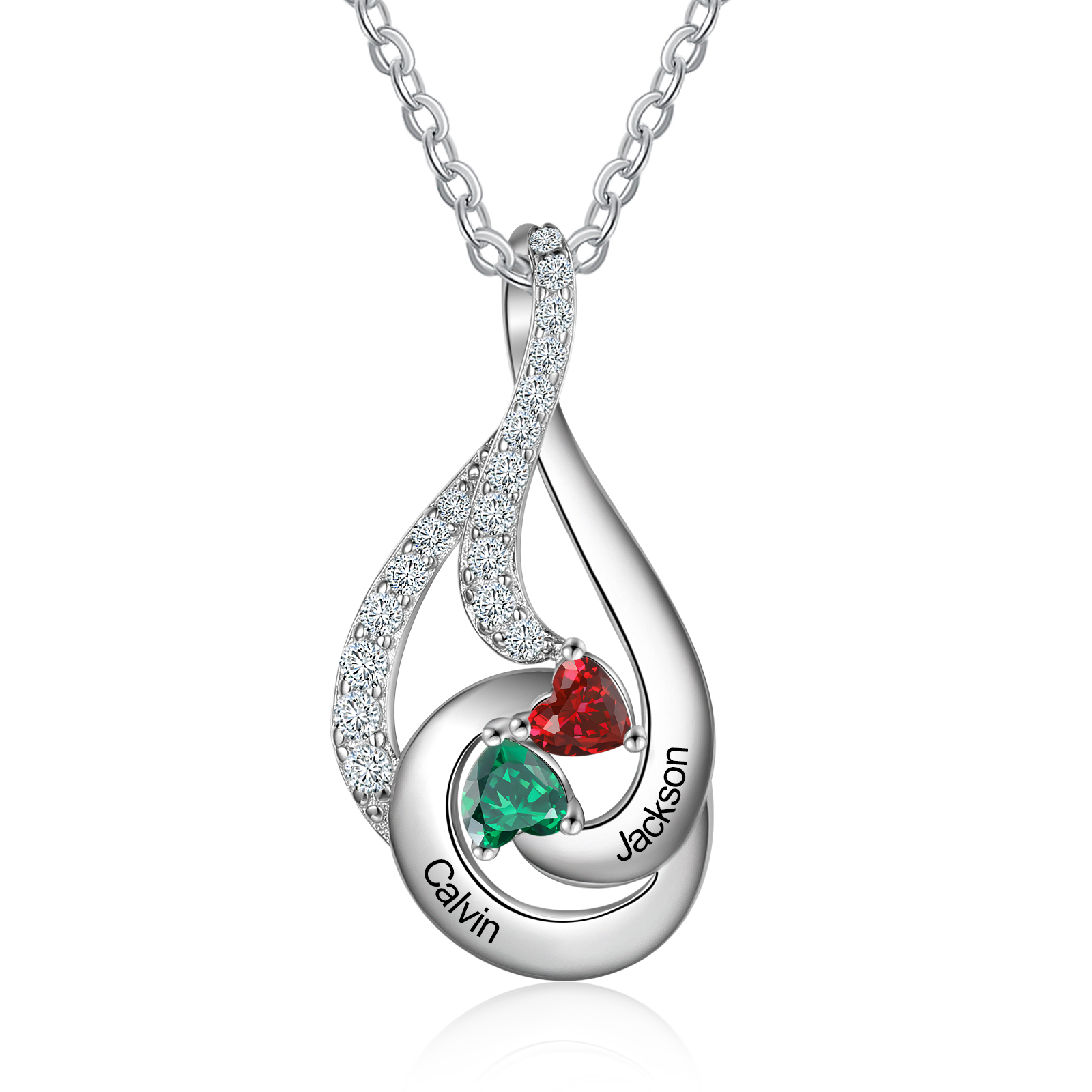 Collana goccia d'acqua con 2 pietre di nascita e 2 nomi regalo per donna