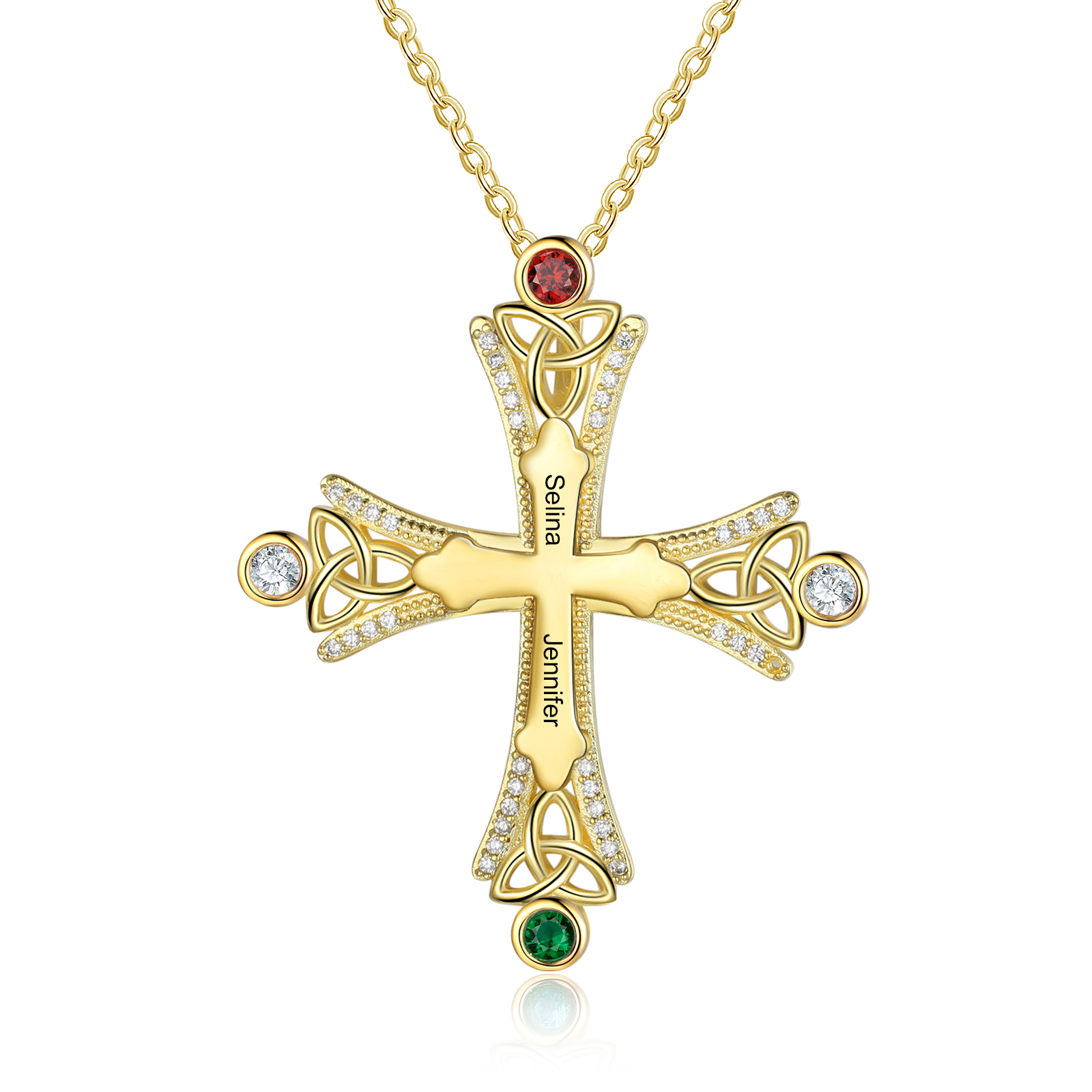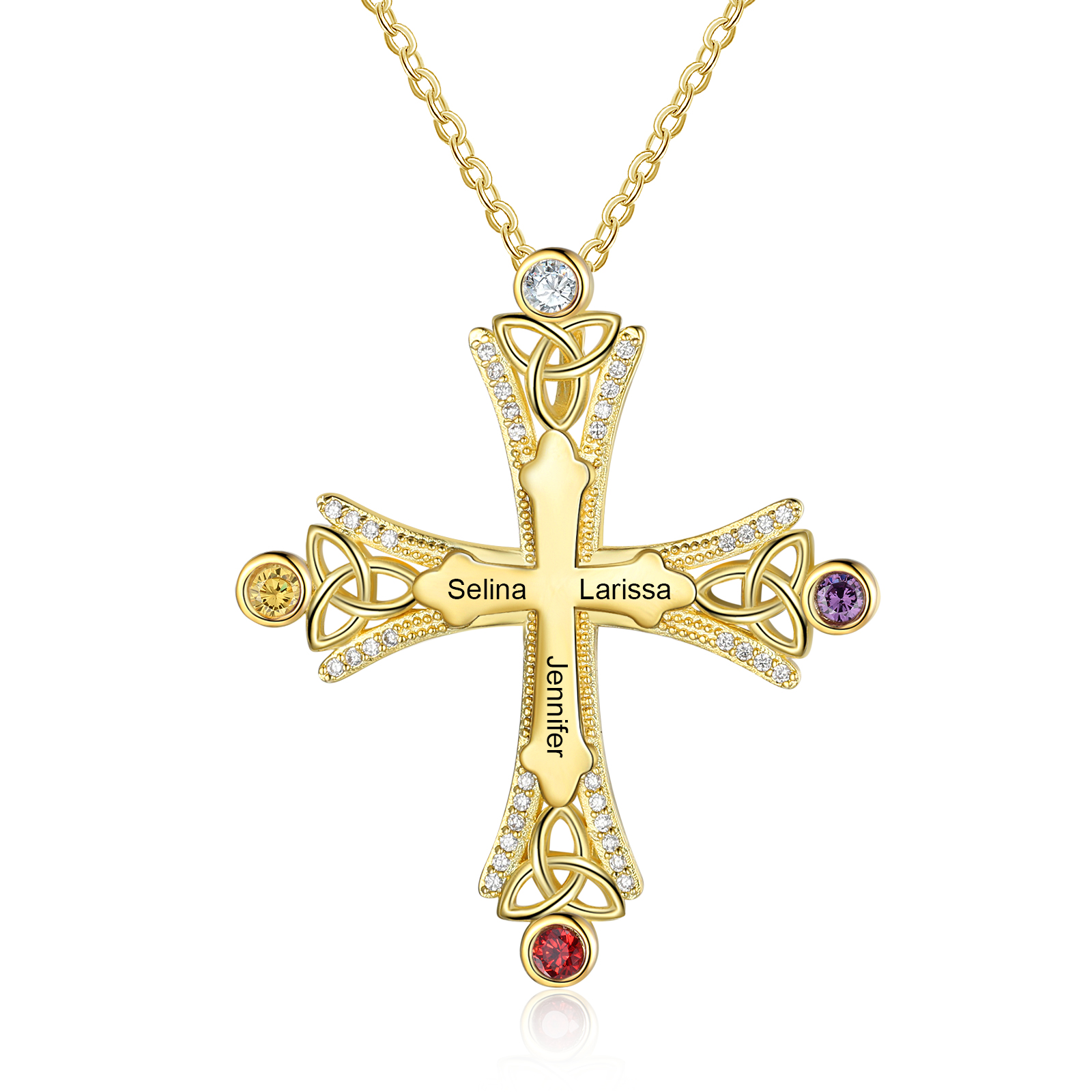 Collana con croce con 3 pietre di nascita e 3 nomi regalo