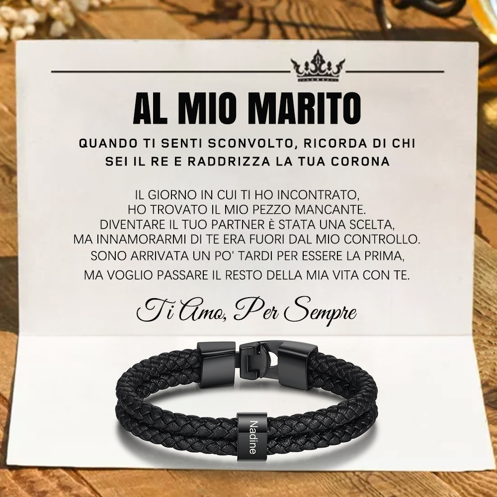 AL MIO MARITO Bracciale in pelle 1 perline Bracciale da uomo personalizzato con nome e cognome