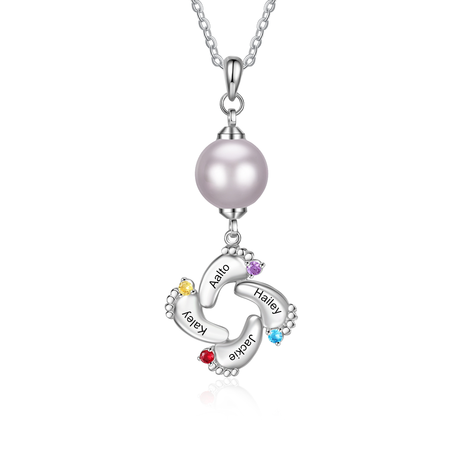 Collana con ciondolo mamma 4 nomi incisioni e pietra di nascita personalizzati