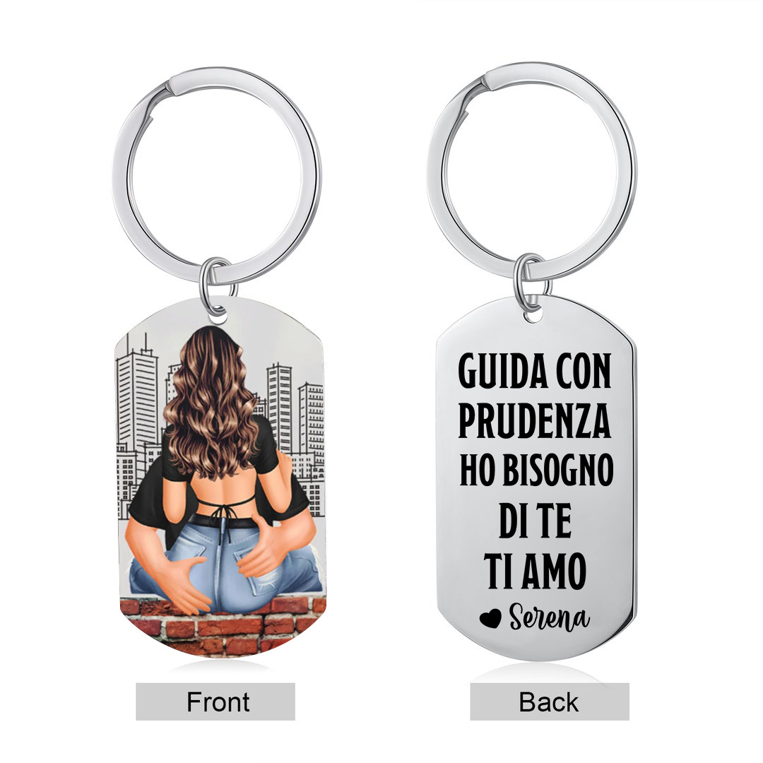 Guida Con Prudenza-Portachiavi personalizzabile con nome per coppia