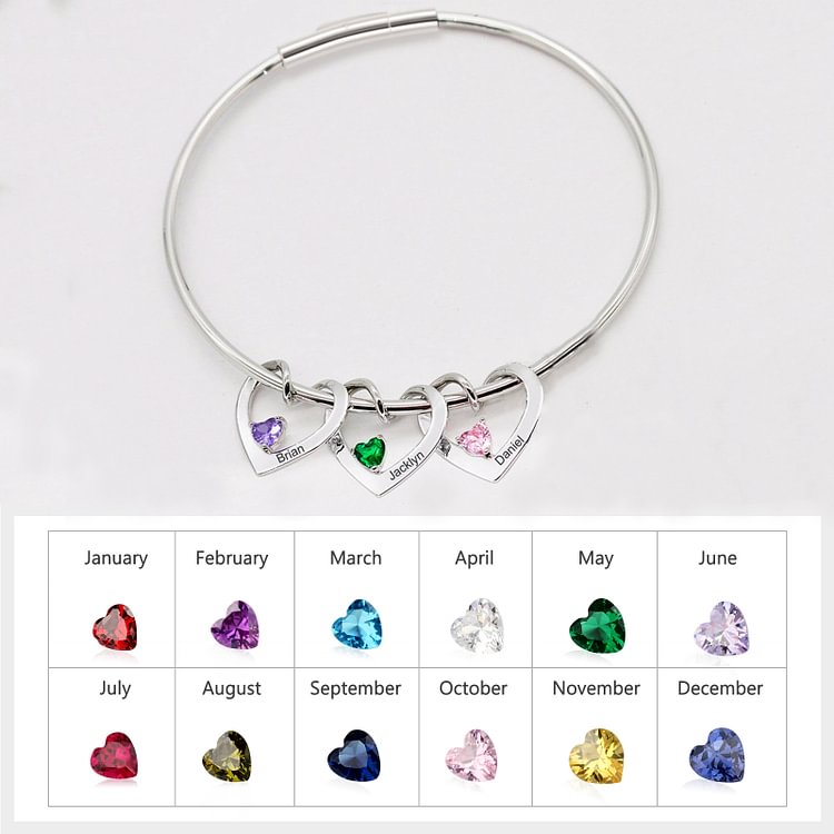Bracciale femminile con 3 nomi e 3 pietre di nascita personalizzabili