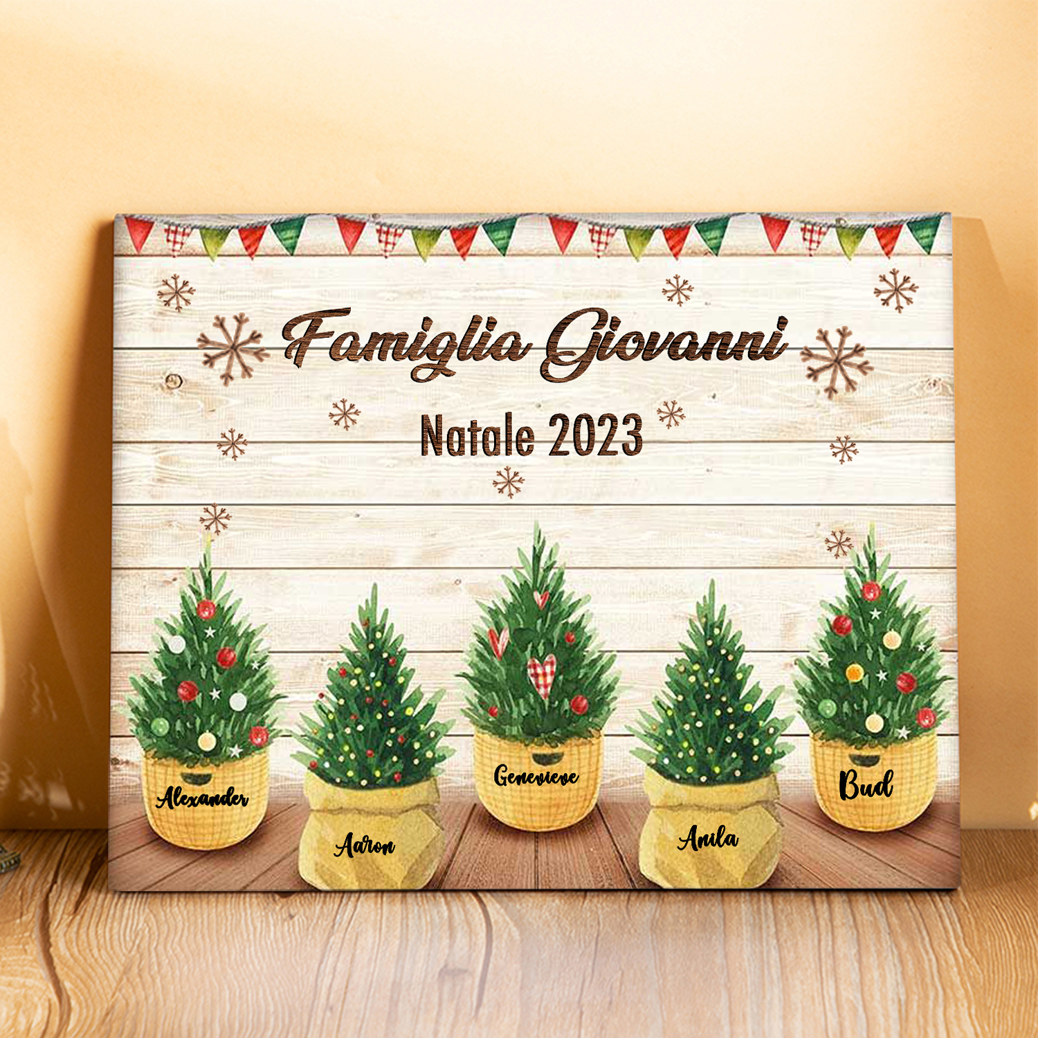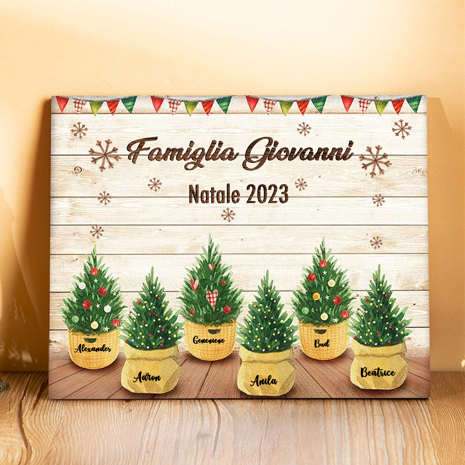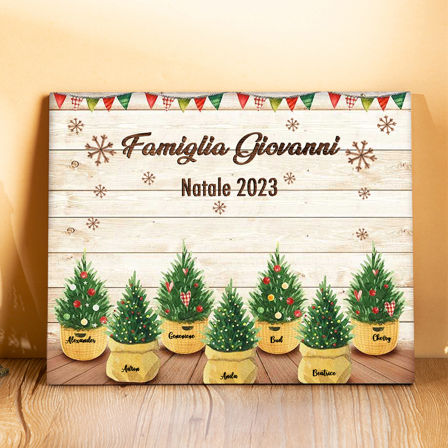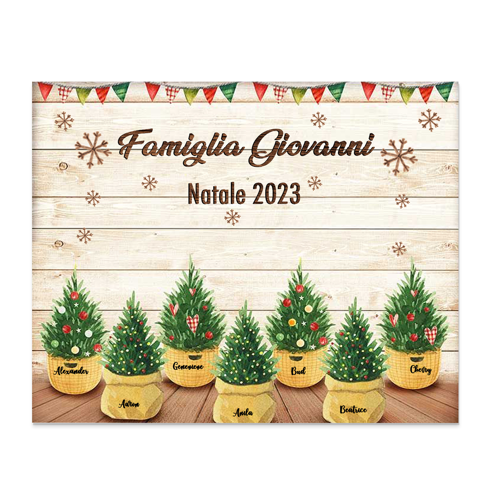 Targa di legno🎄FAMIGLIA GIOVANNI i pini davanti alla porta 8 nomi e 2 testi personalizzabili