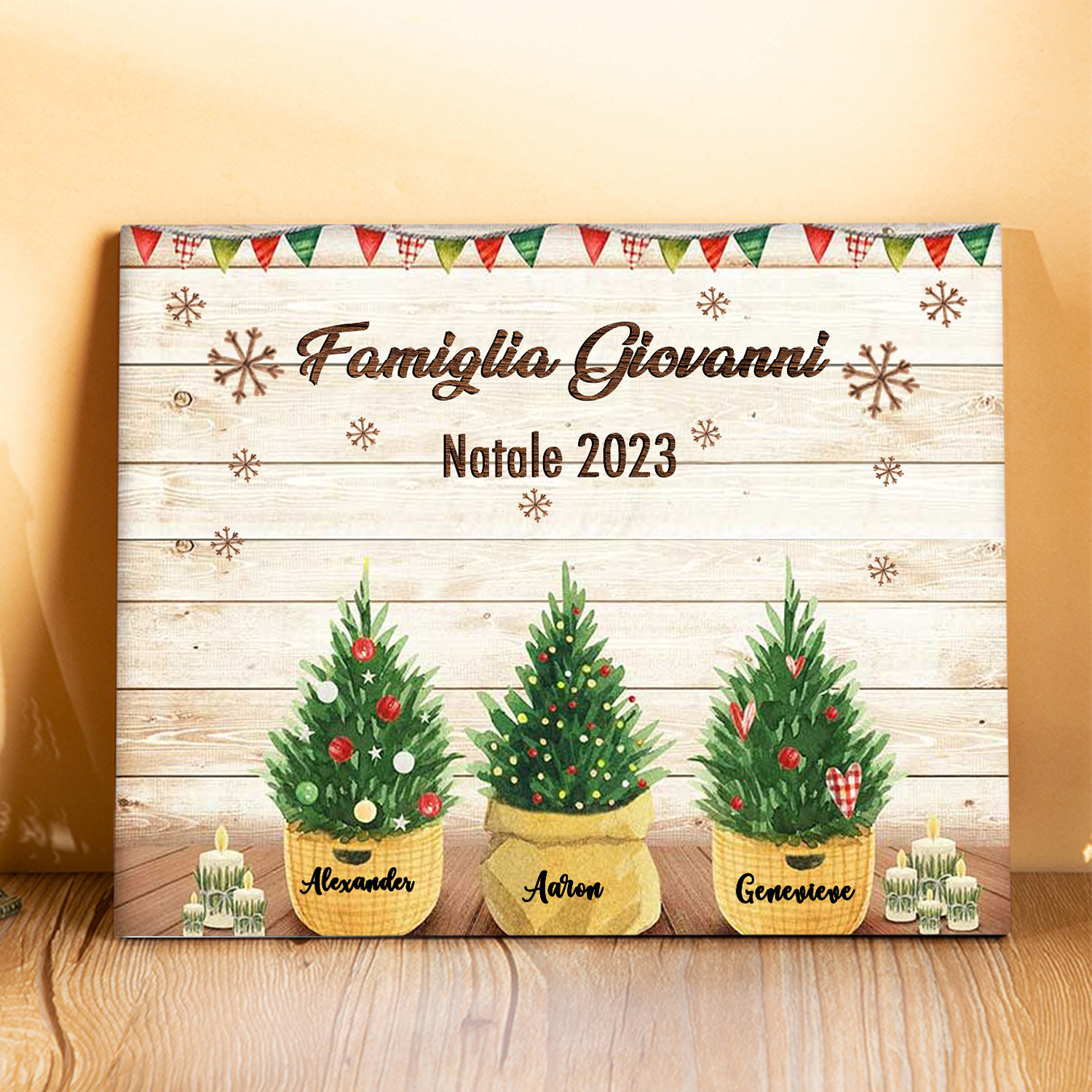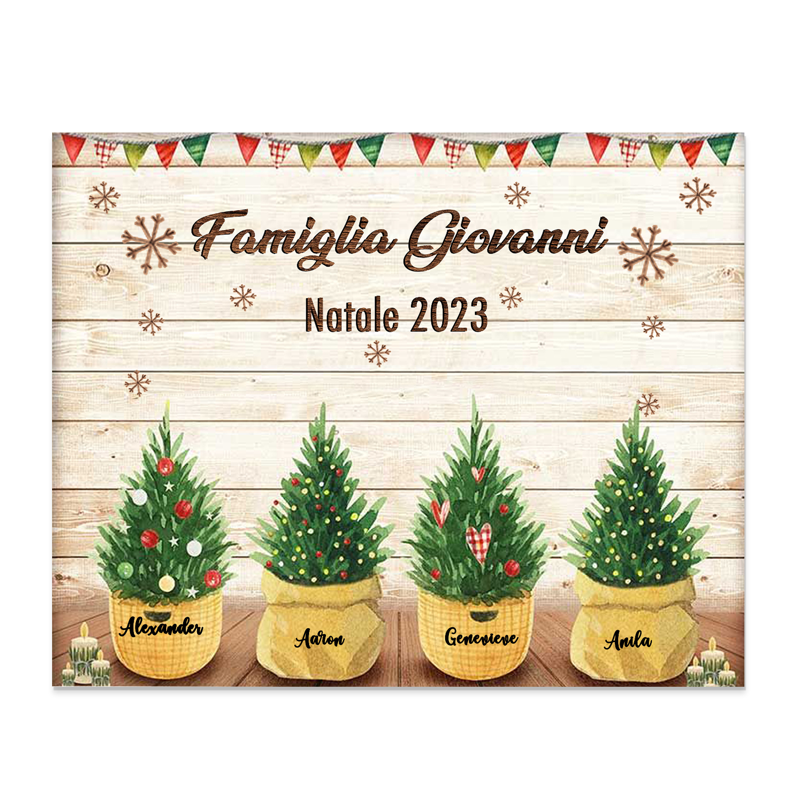 Targa di legno🎄FAMIGLIA GIOVANNI i pini davanti alla porta 4 nomi e 2 testi personalizzabili