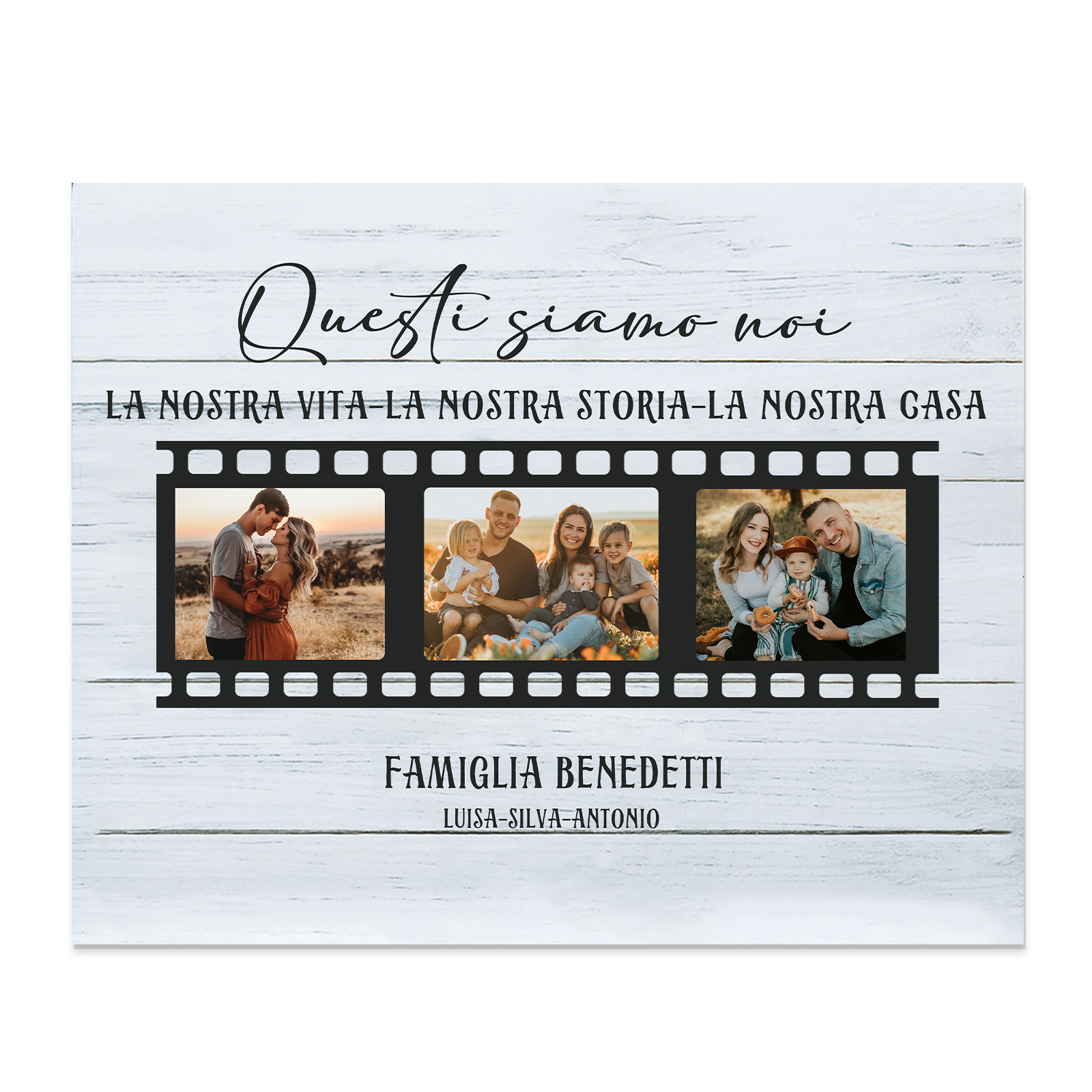 Decorazione targa QUESTI SIAMO NOI personalizzabile con 3 foto e 6 nomi regalo famiglia