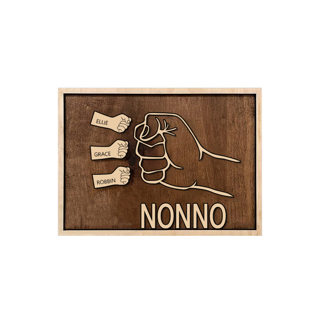 Targa di legno mano a mano 3 nomi personalizzabile regalo per nonno