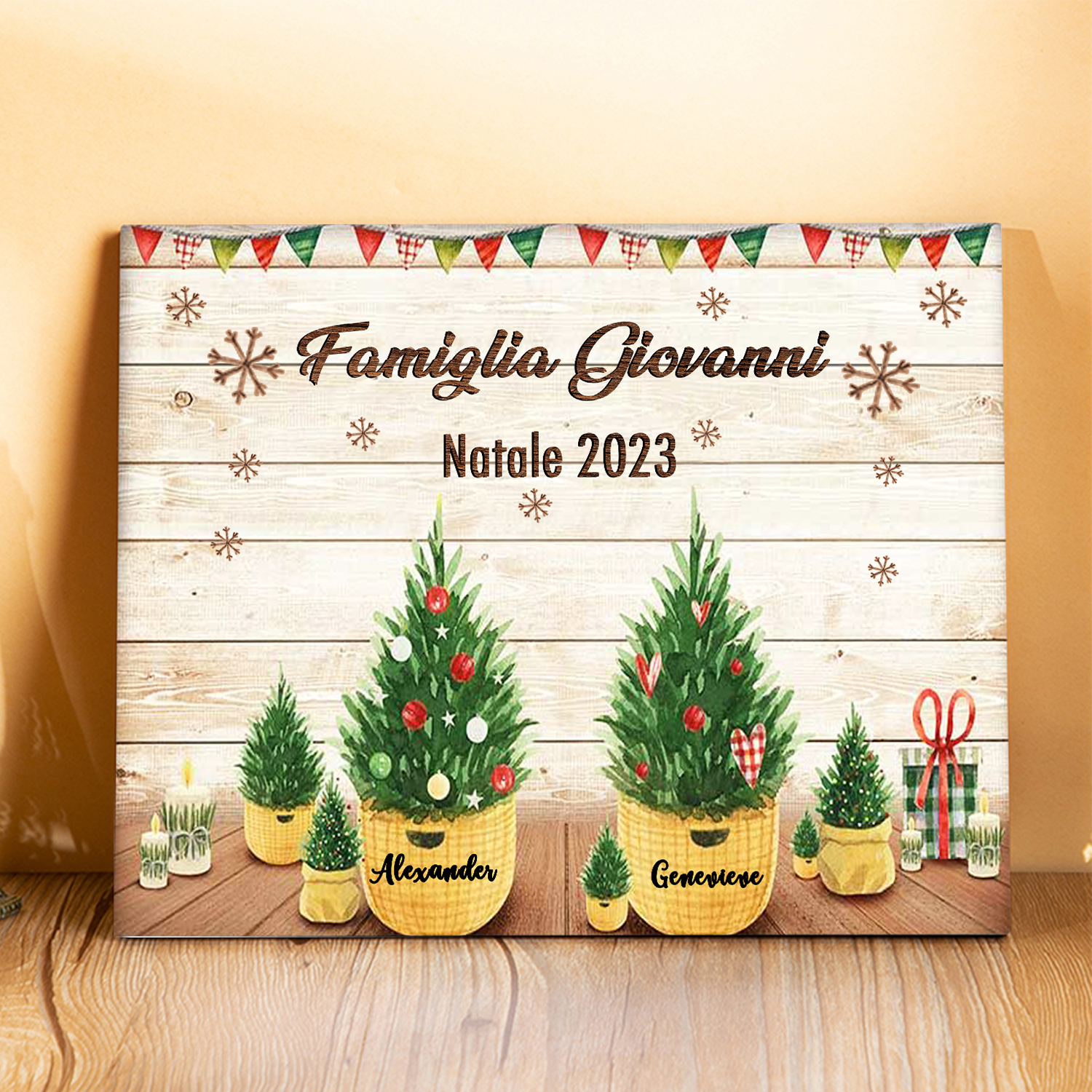 Targa di legno🎄FAMIGLIA GIOVANNI i pini davanti alla porta 2 nomi e 2 testi personalizzabili