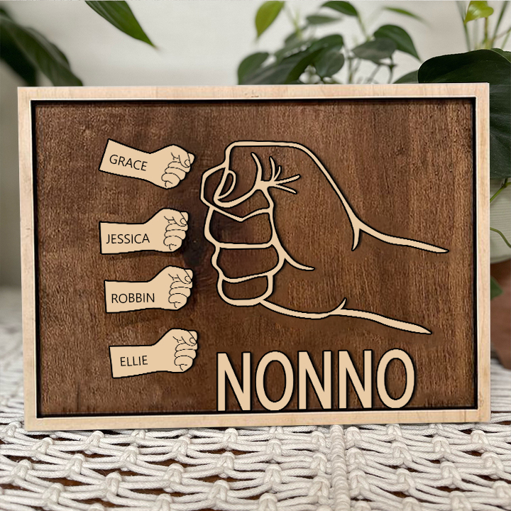 Targa di legno mano a mano 4 nomi personalizzabile regalo per nonno