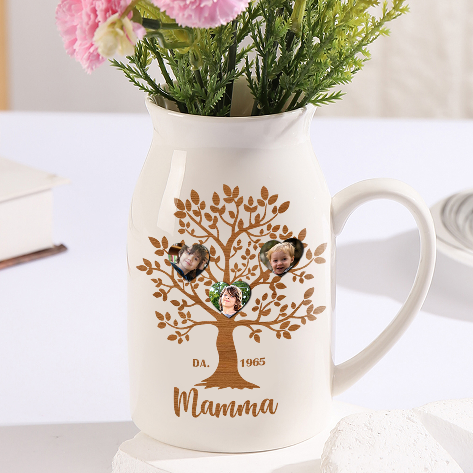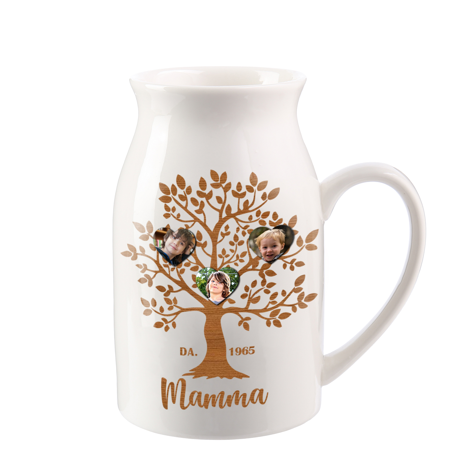 Vaso di Ceramica Mamma marrone Albero di Vita Personalizzato con 4 foto e 1 testo 1 data per mamma/nonna