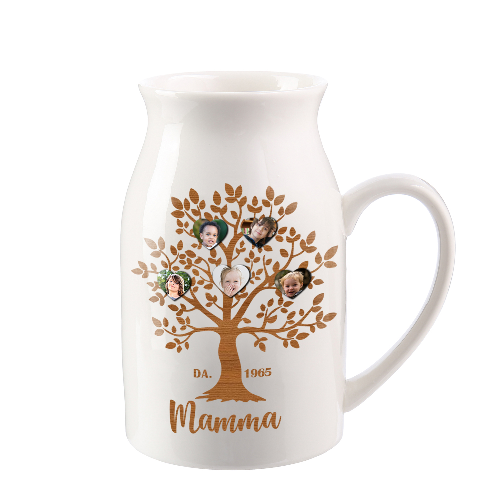 Vaso di Ceramica Mamma marrone Albero di Vita Personalizzato con 6 foto e 1 testo 1 data per mamma/nonna