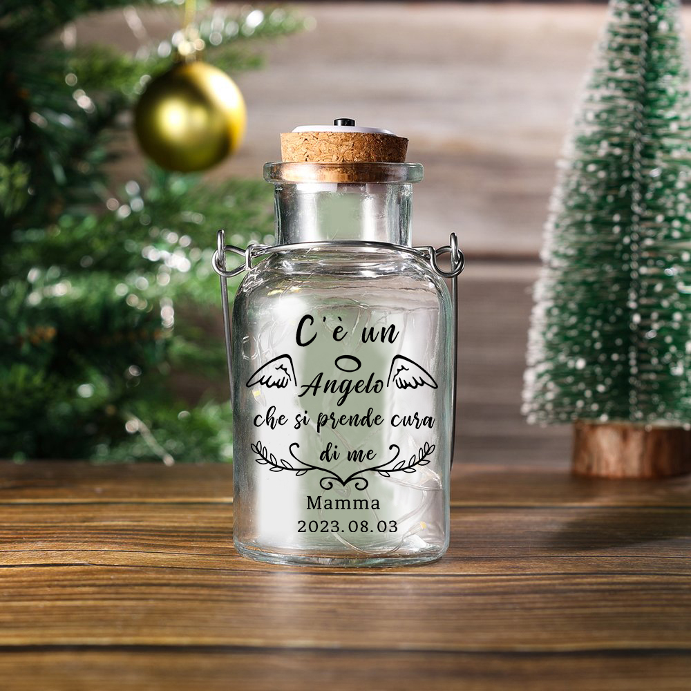 🕯️C'è un angelo mi protegge-Bottiglia illuminante commemorativa PERSONALIZZABILE per membri della famiglia ognissanti
