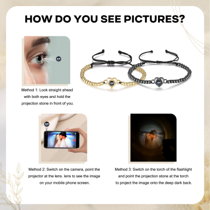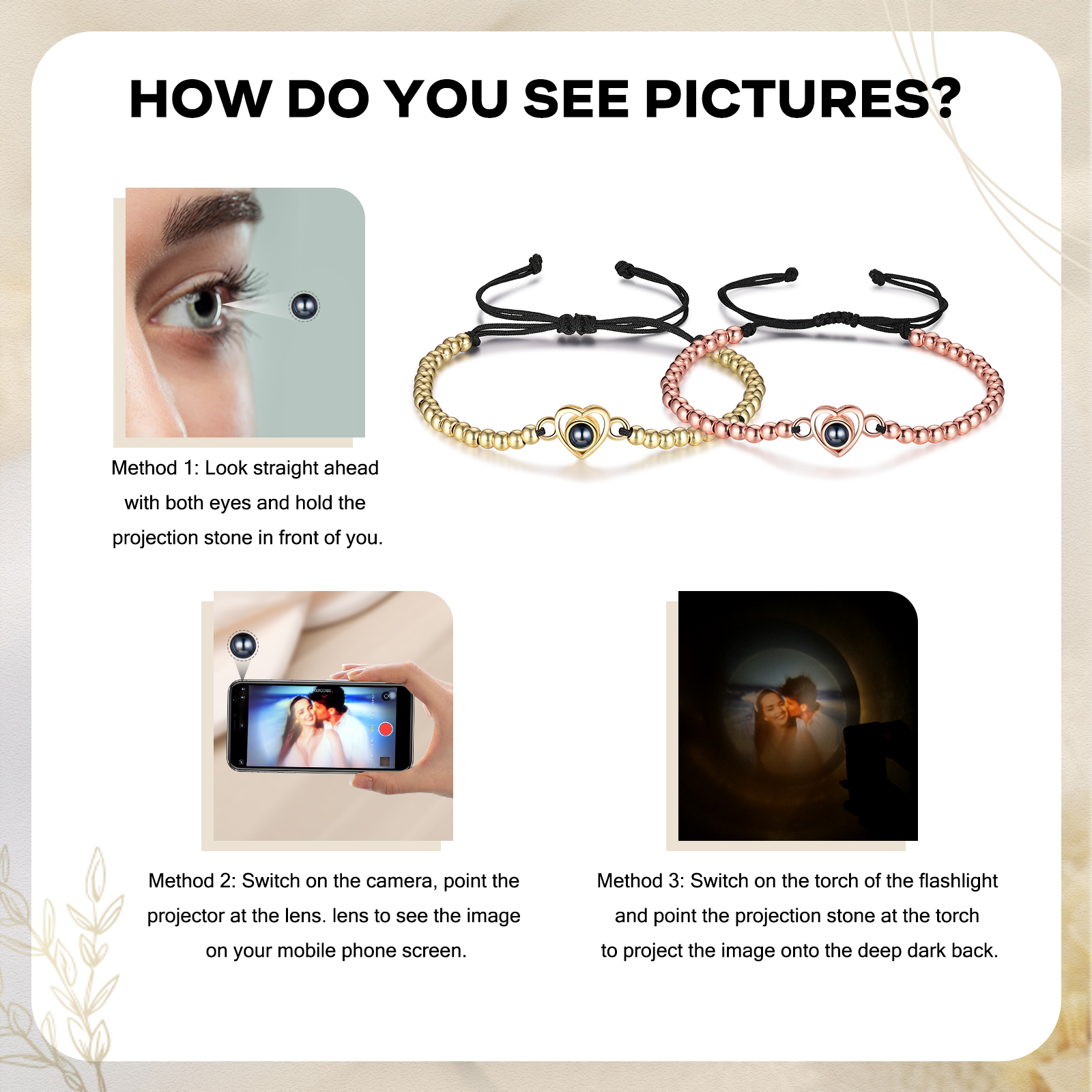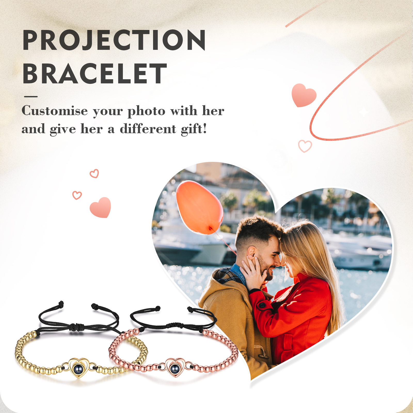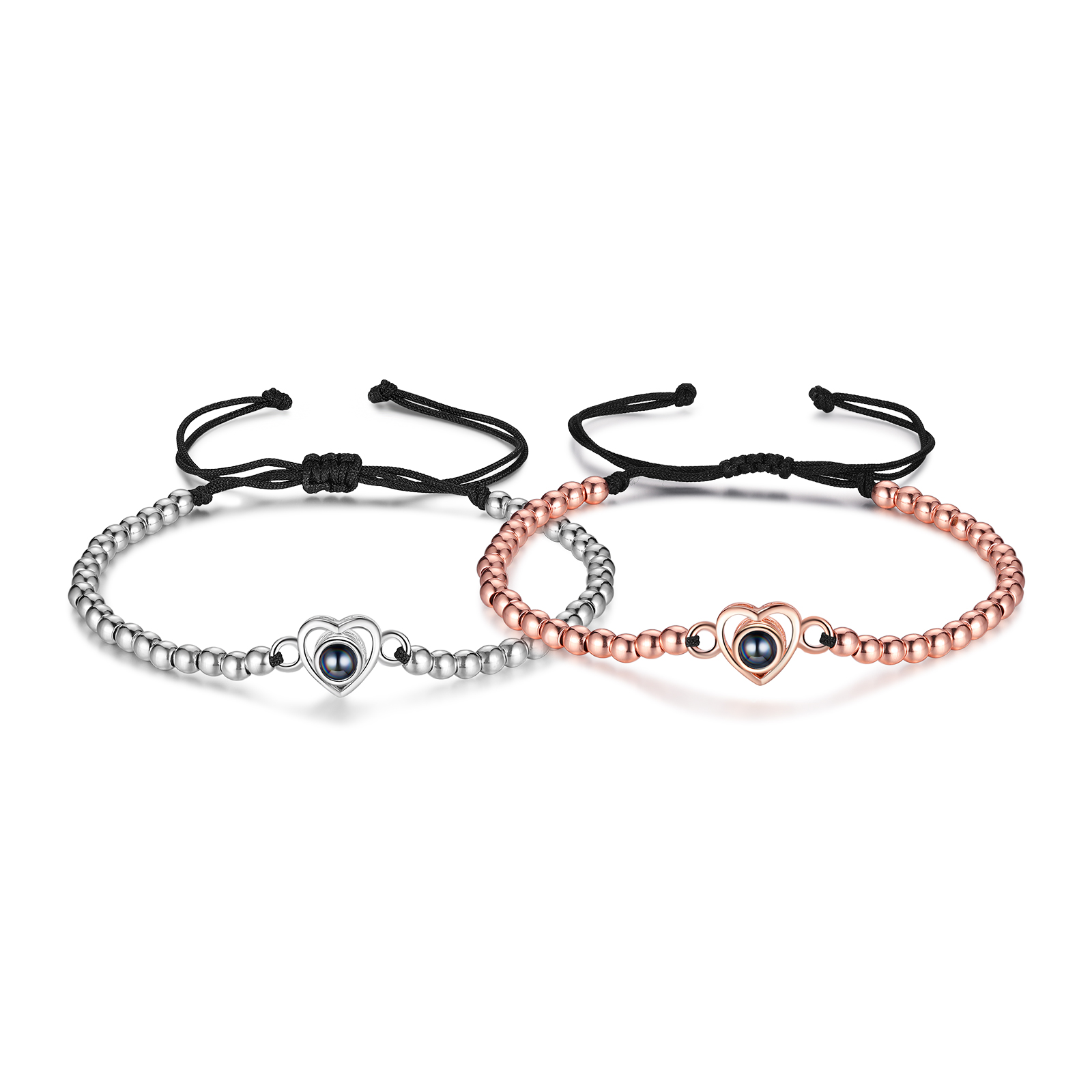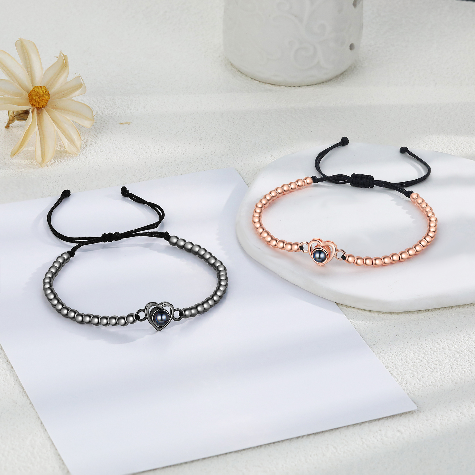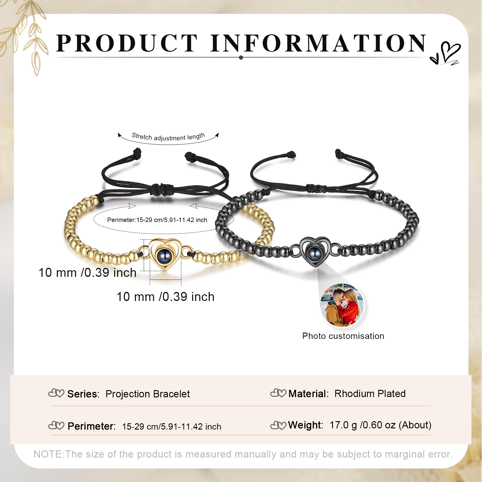 2 PCS Braccialetto con Proiezione 1 foto personalizzabile cuore regalo per coppia amore