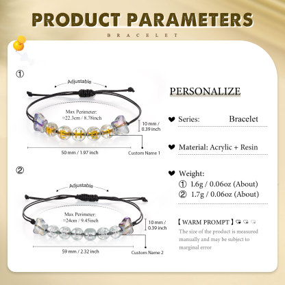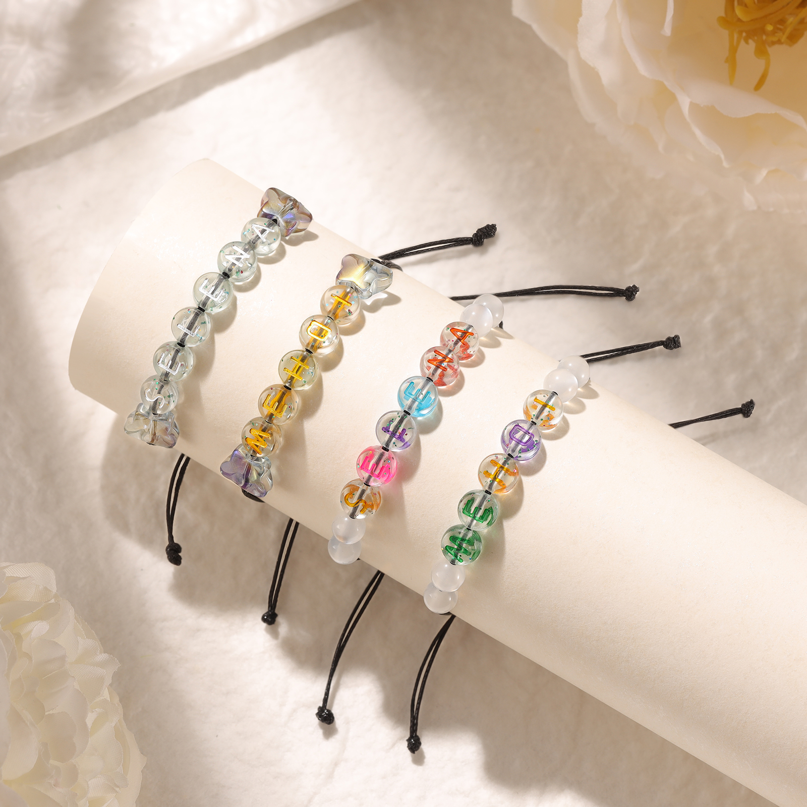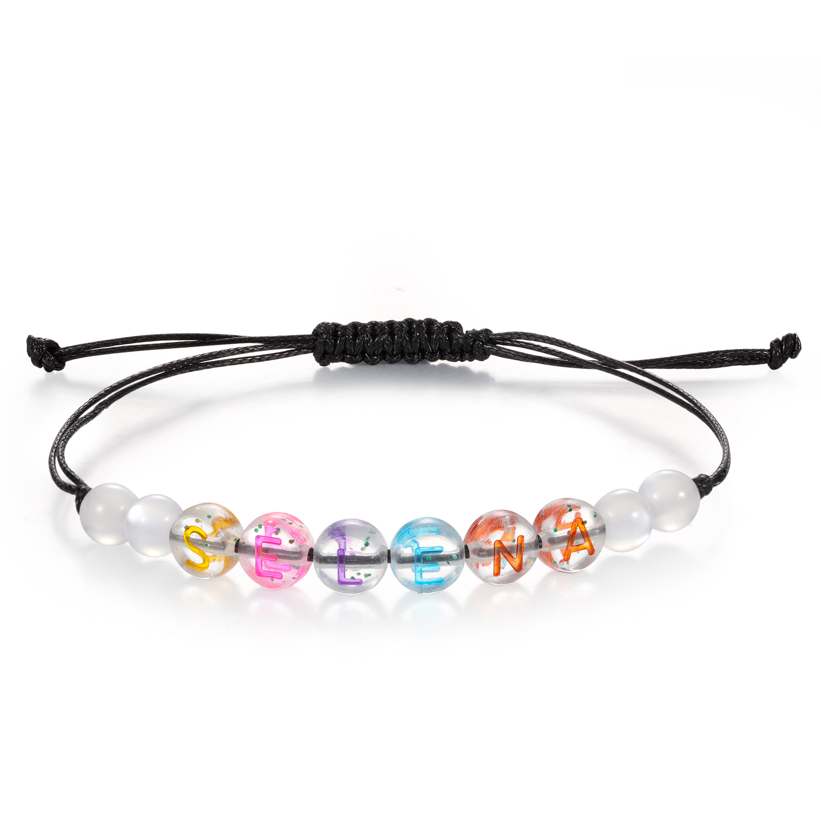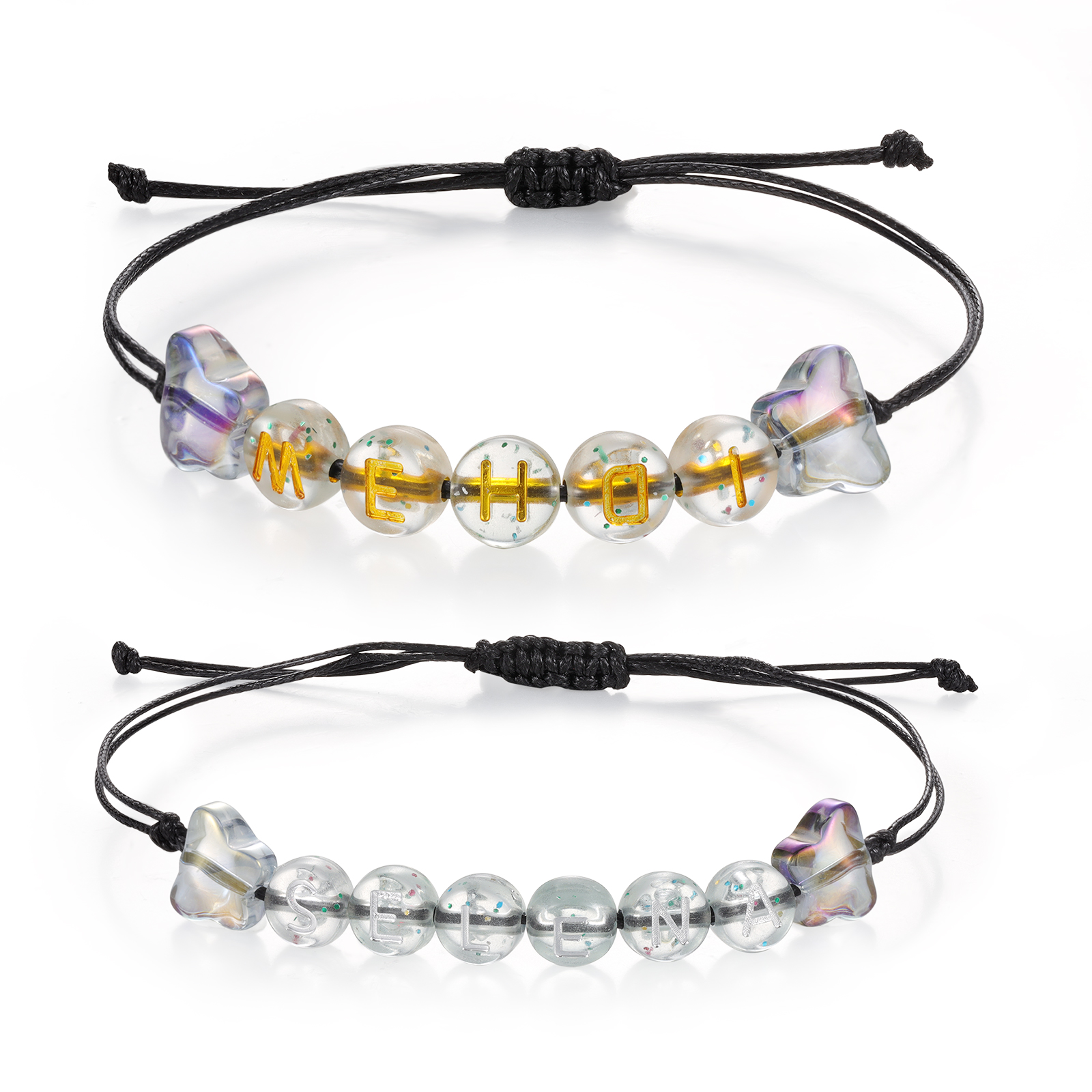 2PCS Braccialetto corda intrecciata con perline trasparenti di 2 nomi personalizzati regalo per scuola bambina