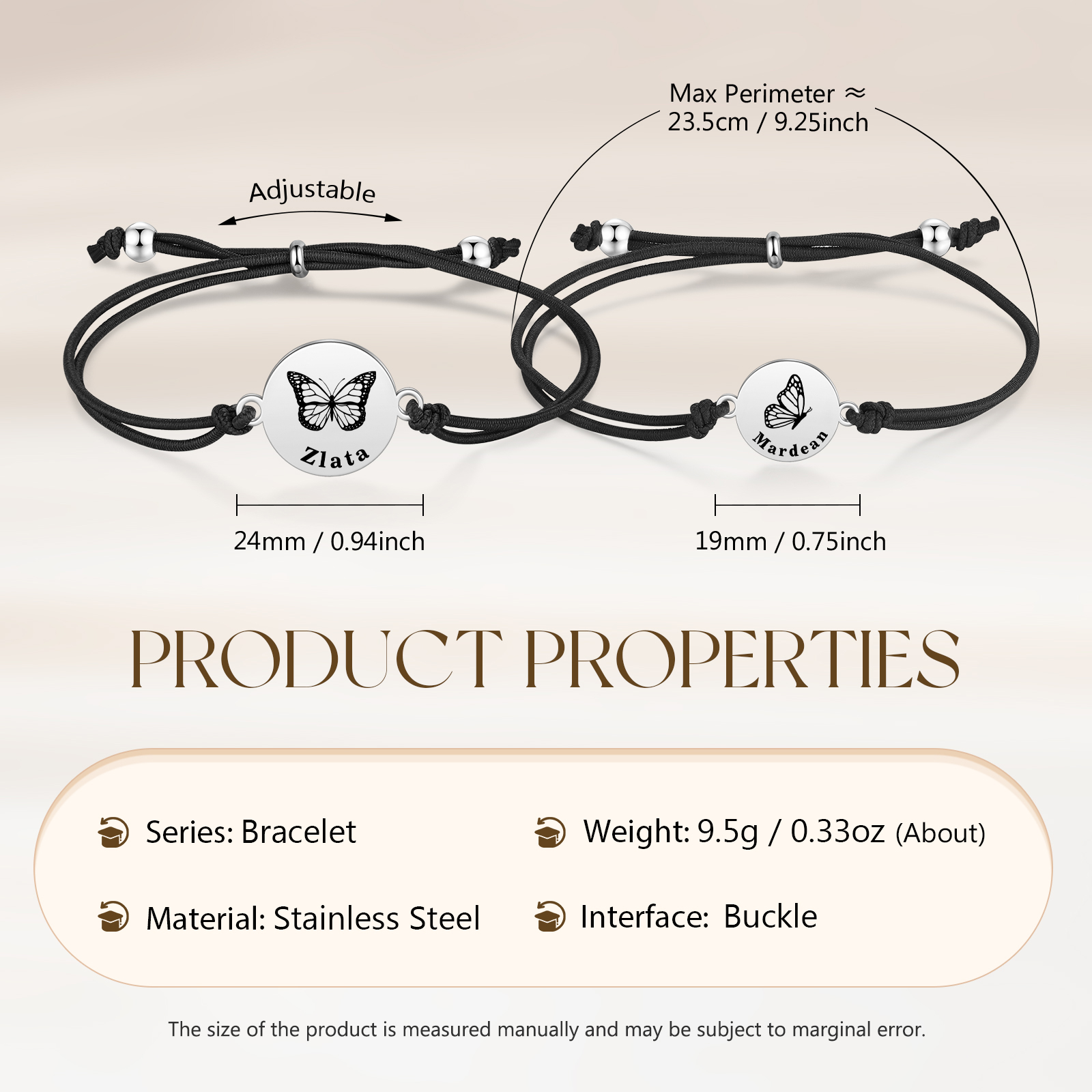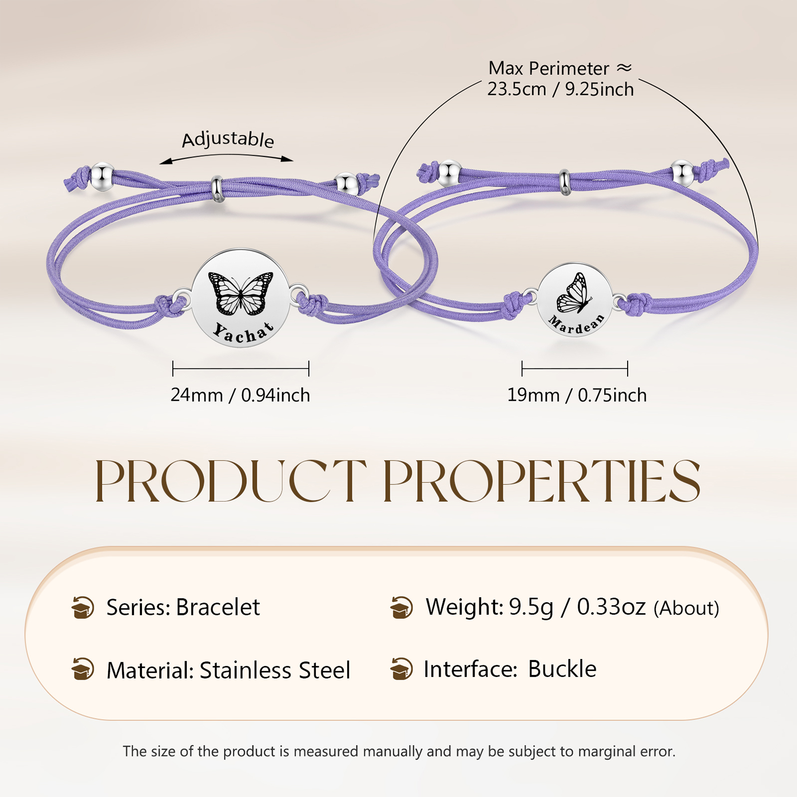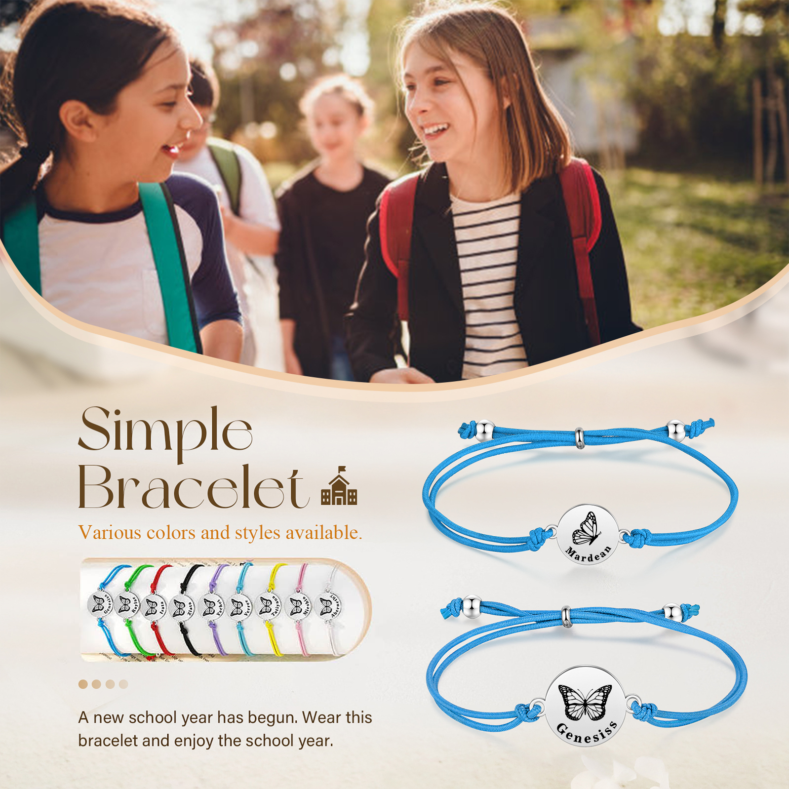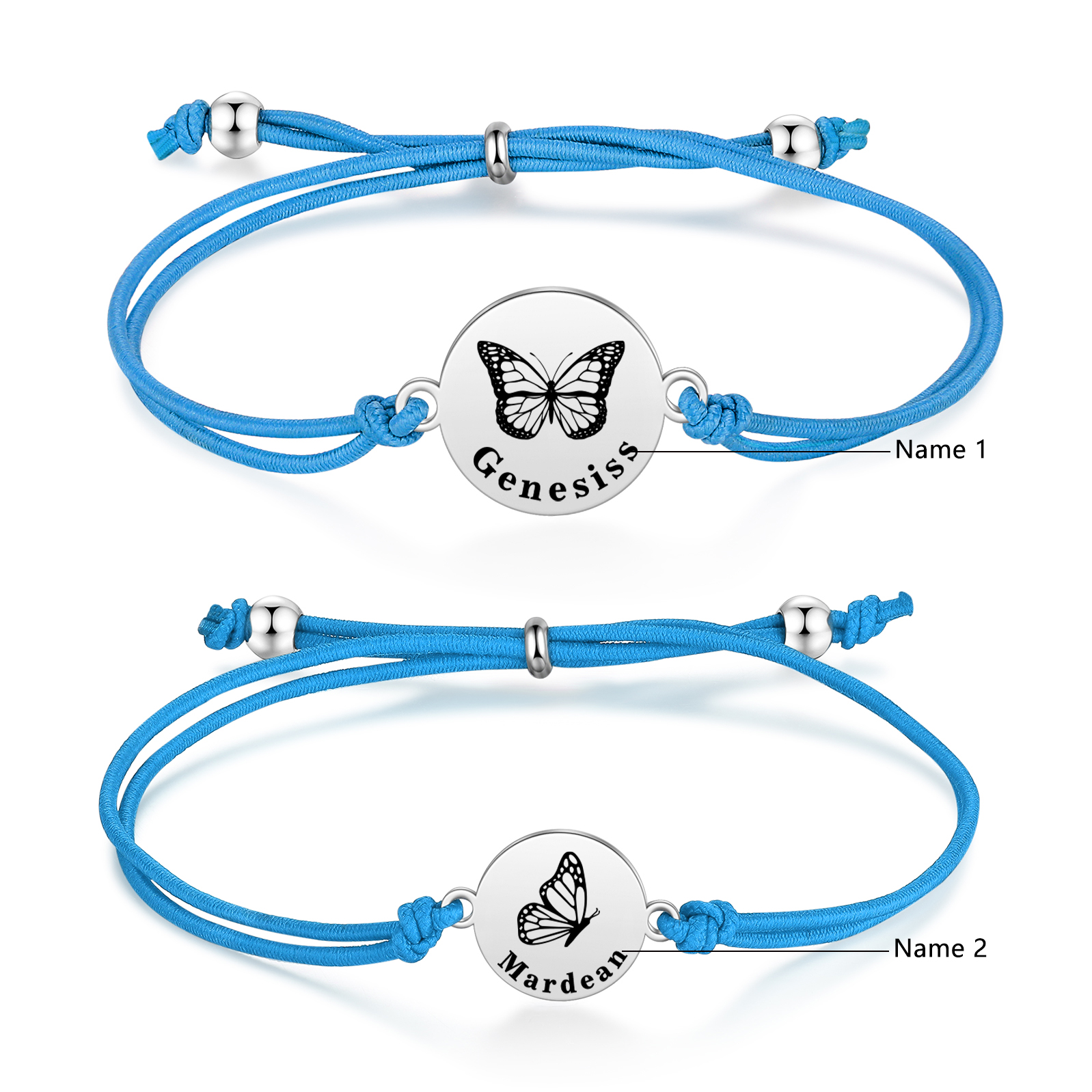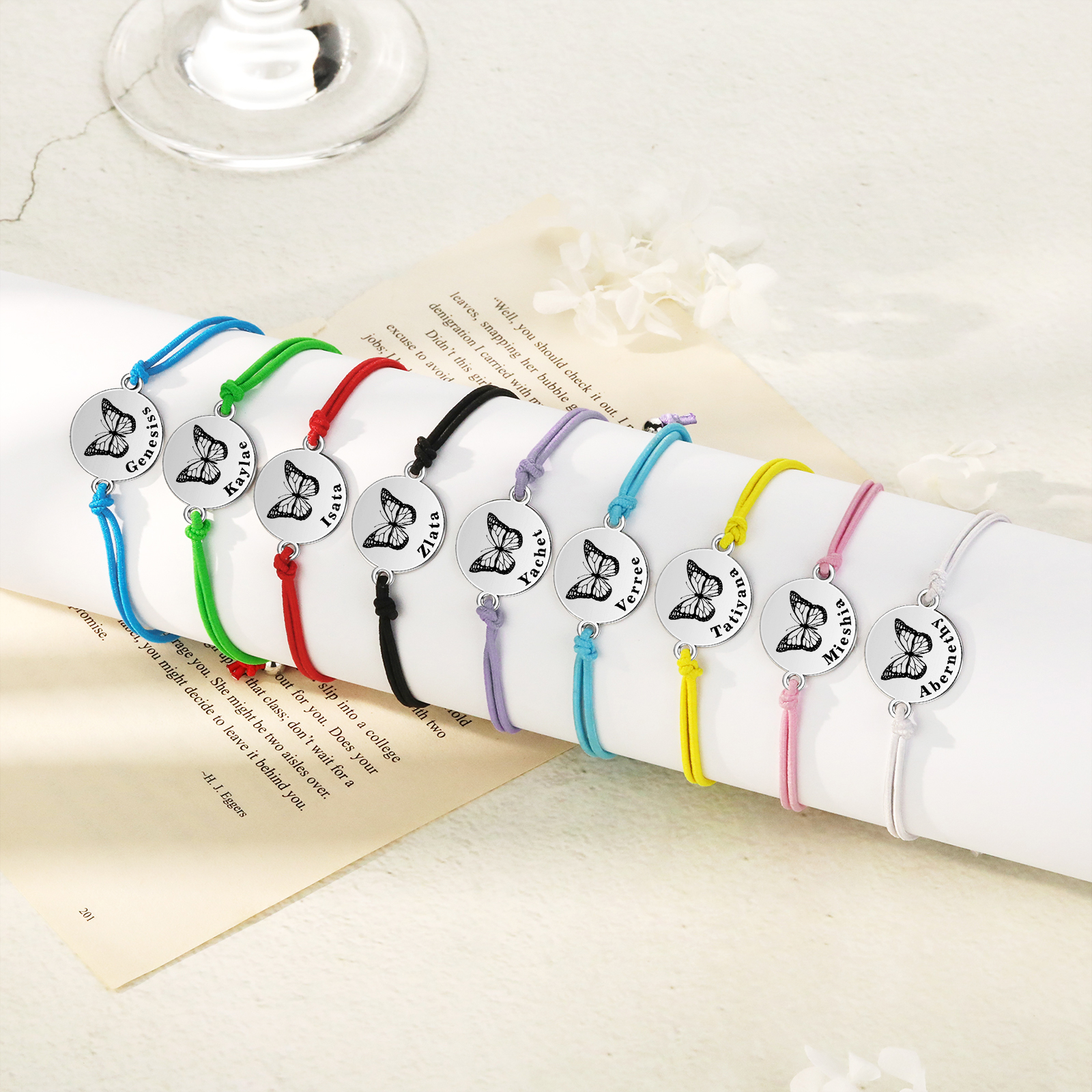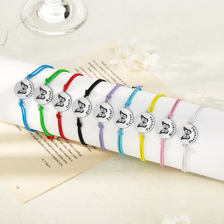 2PCS Braccialetto/Fasce per i capelli farfalla con 2 nomi personalizzati regalo per bambina/donna multicolori da scegliere