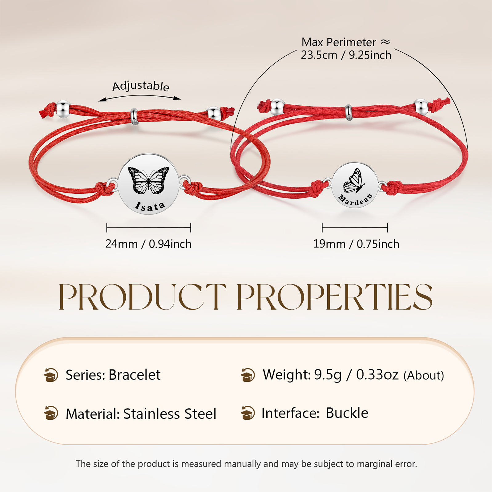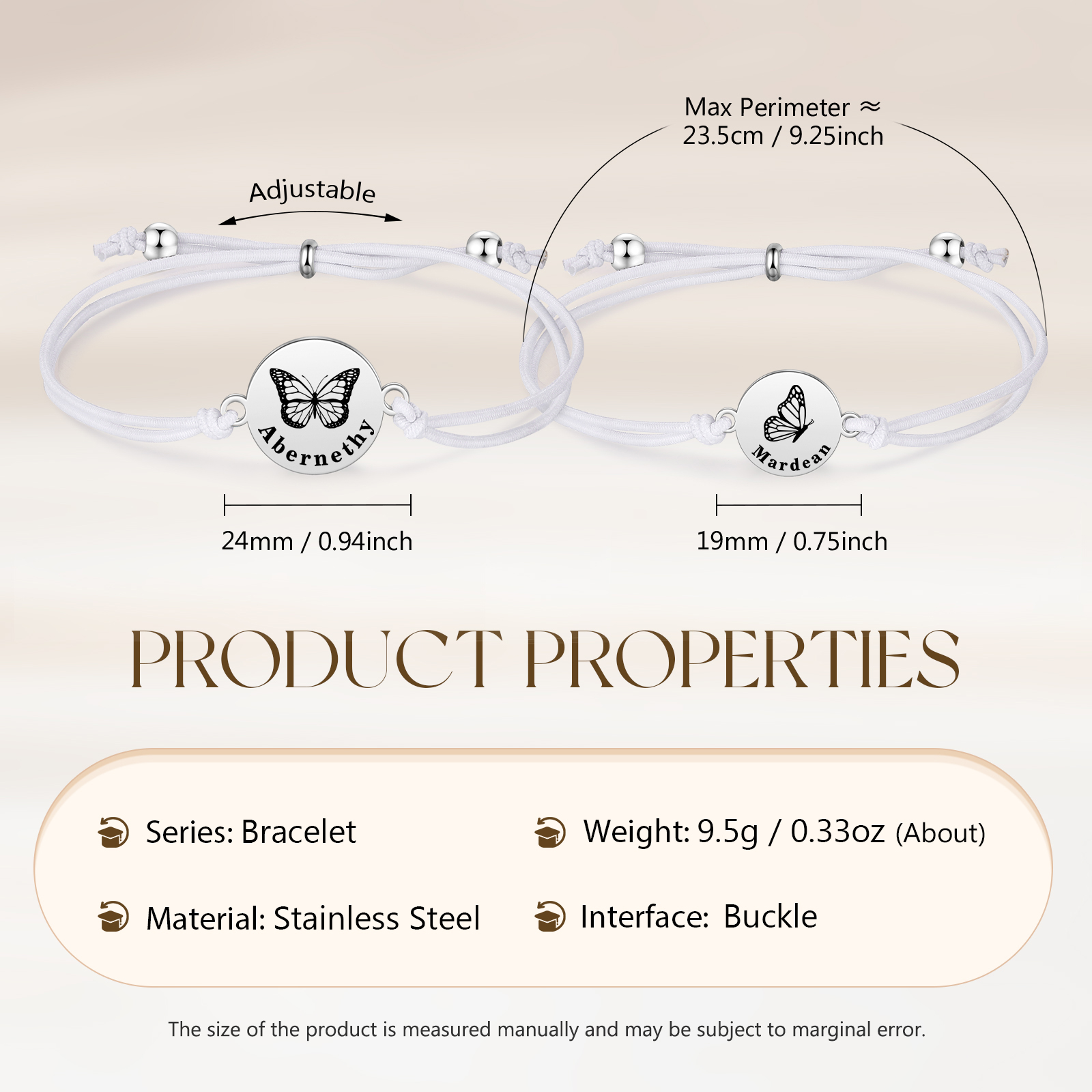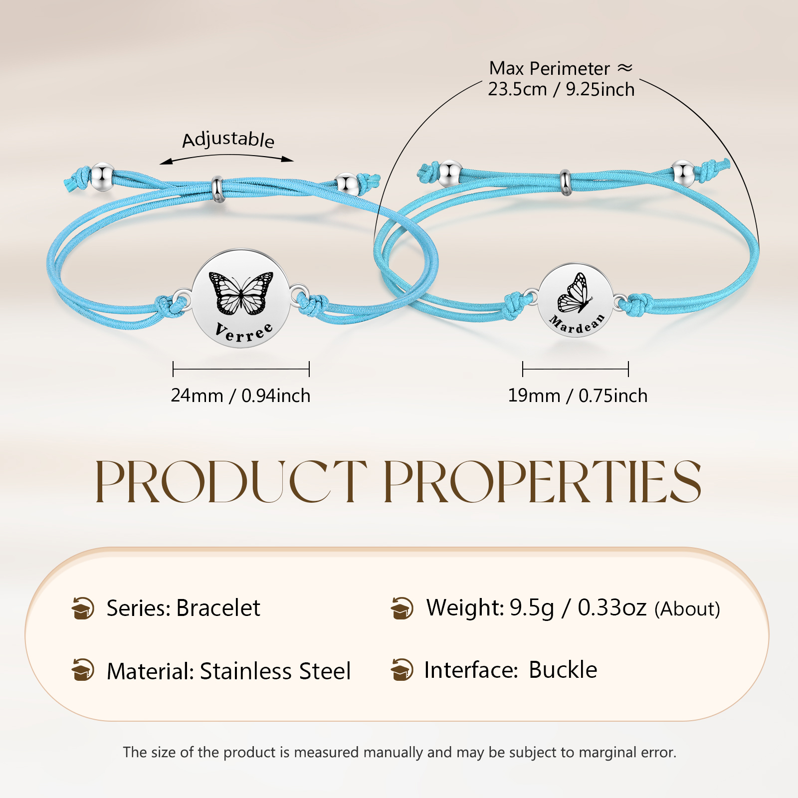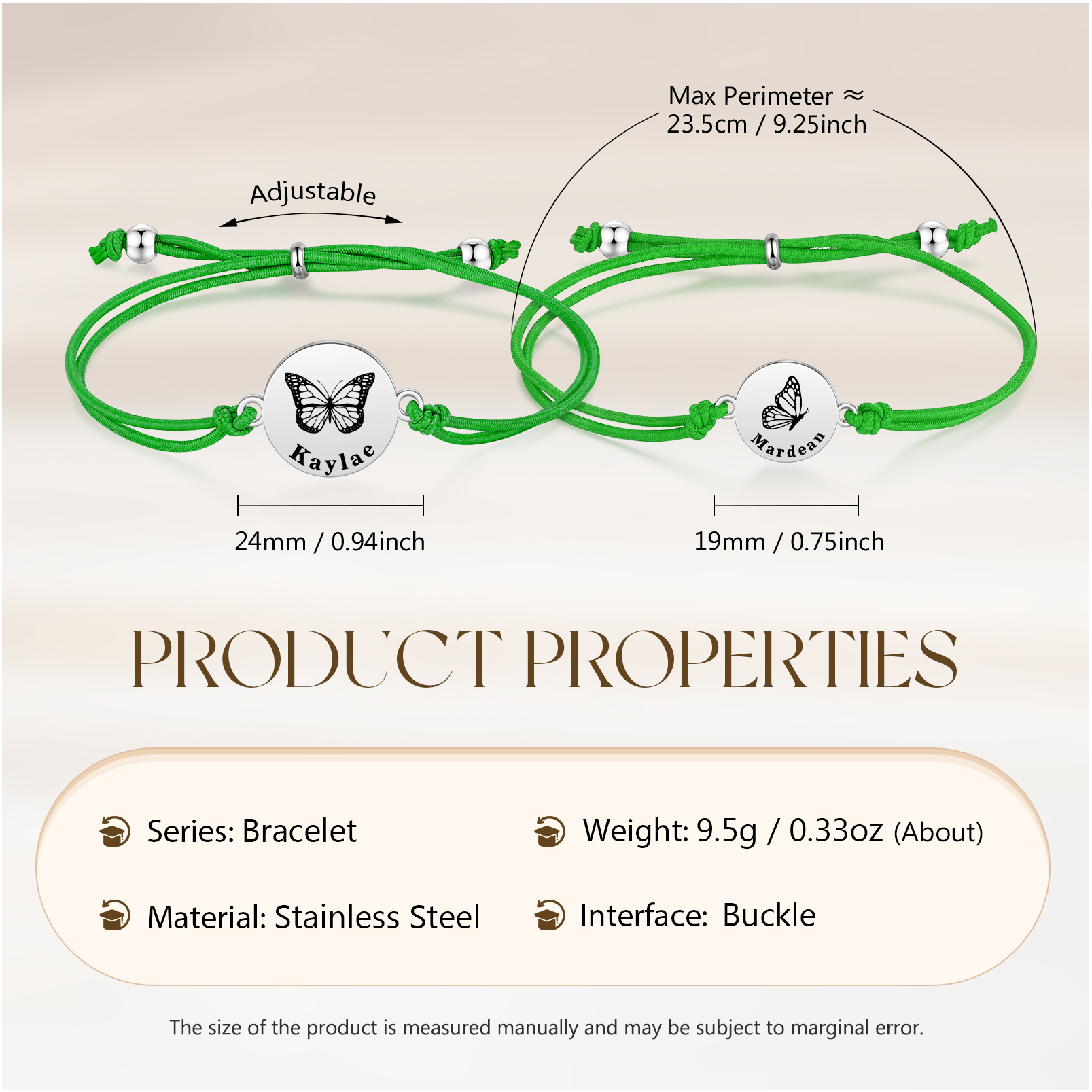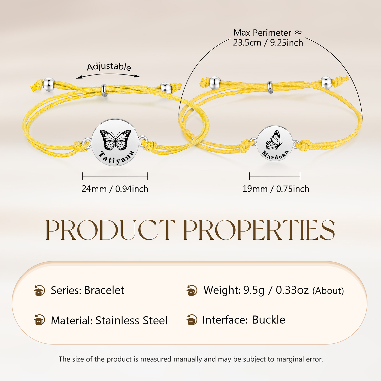 2PCS Braccialetto/Fasce per i capelli farfalla con 2 nomi personalizzati regalo per bambina/donna multicolori da scegliere