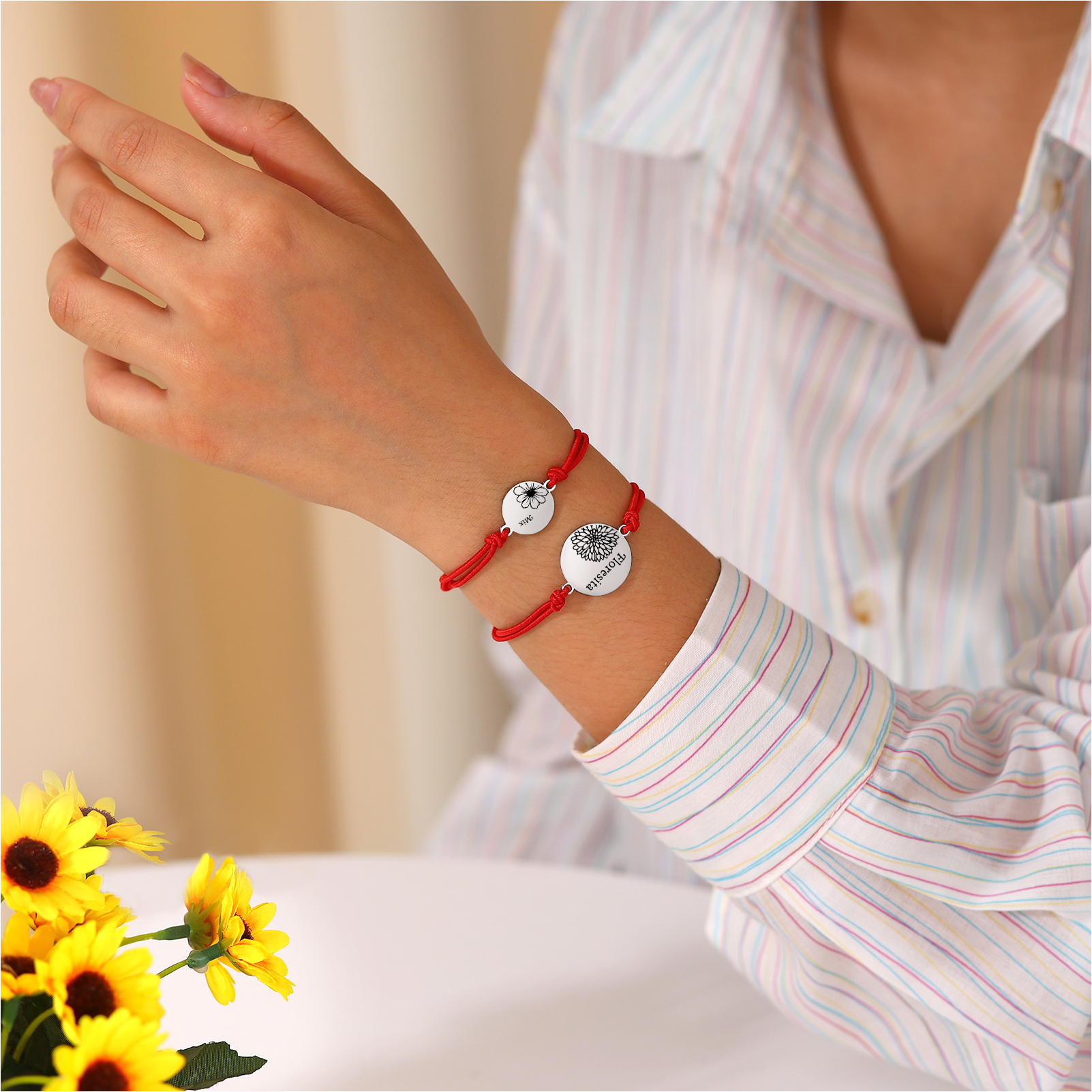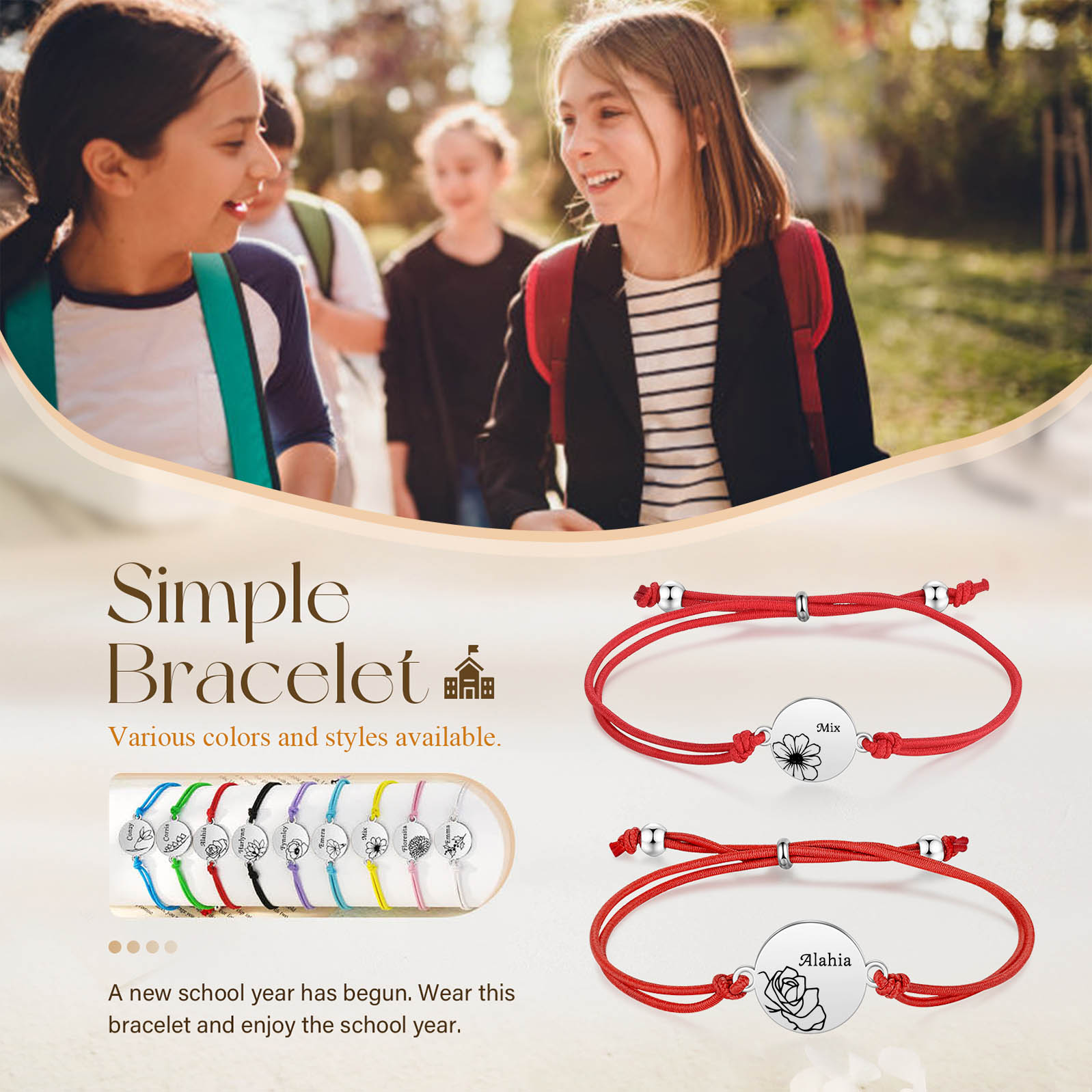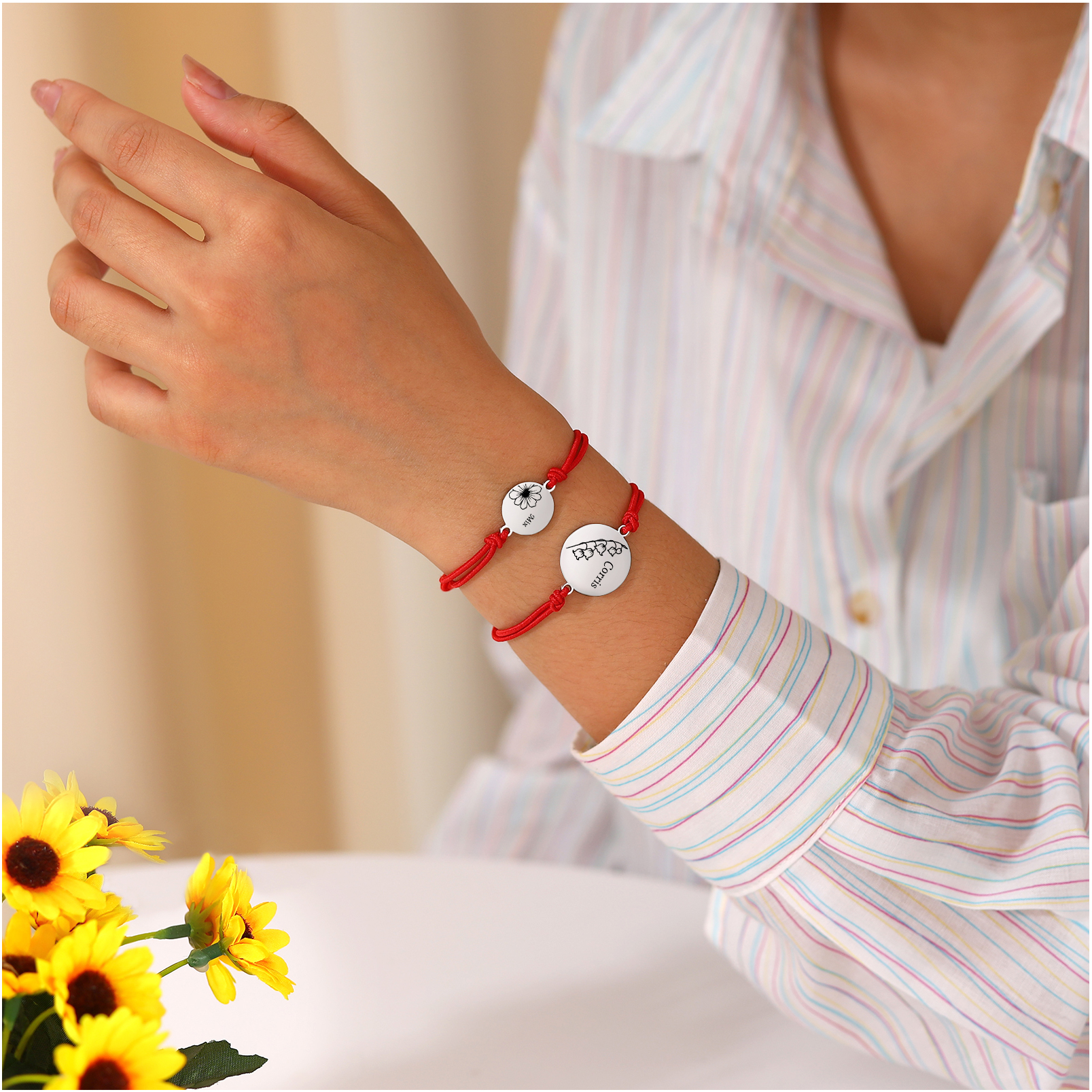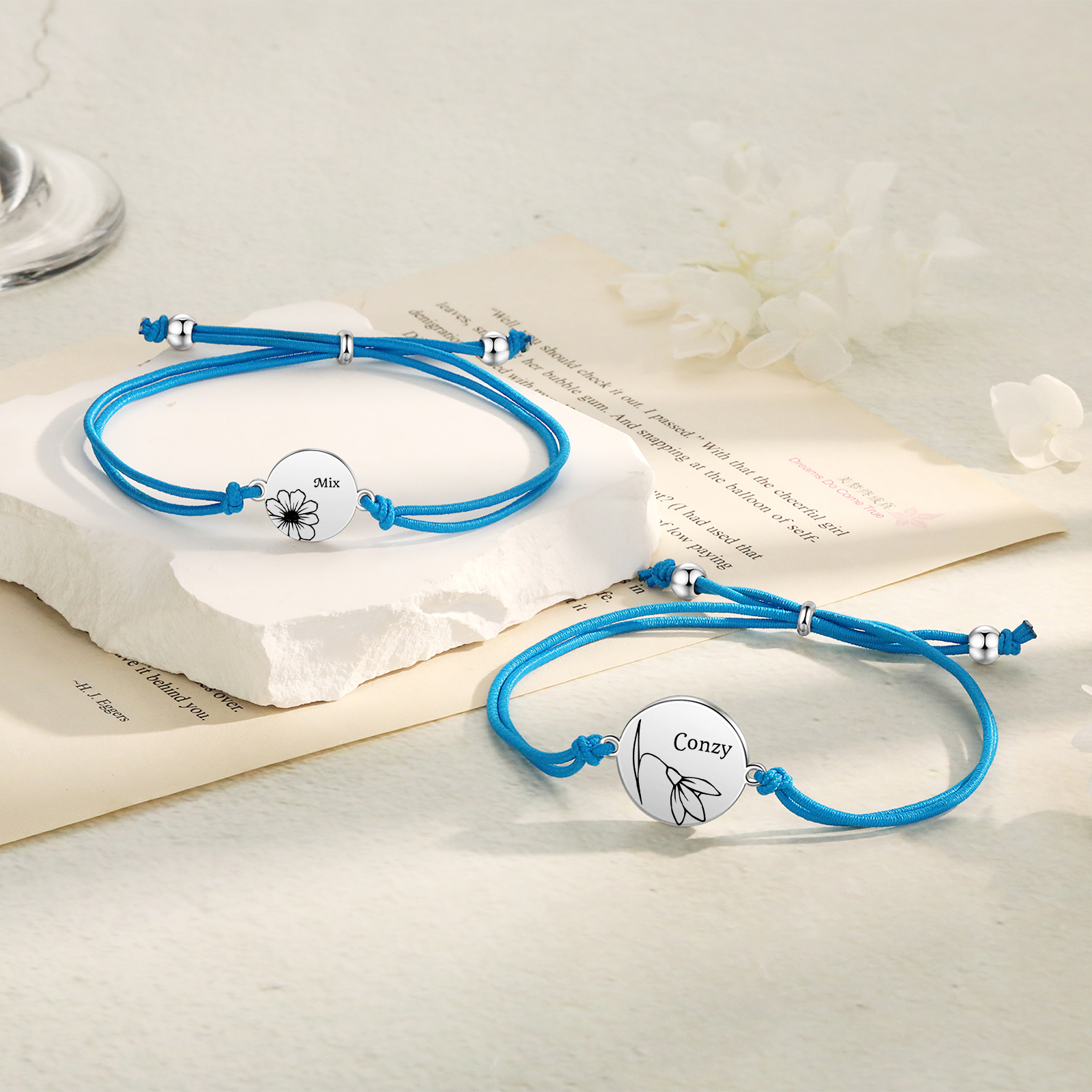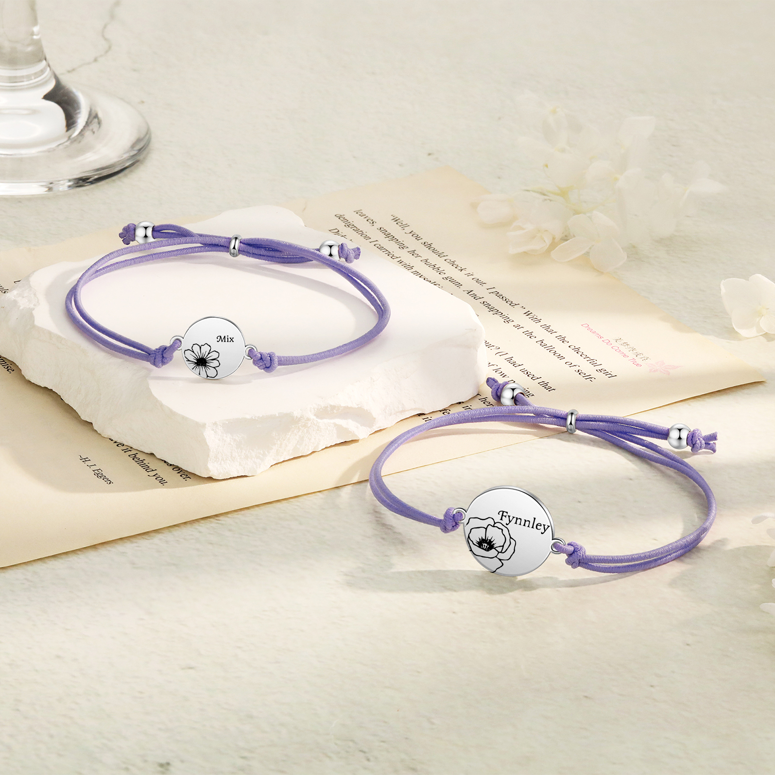 2PCS Braccialetto/Fasce per i capelli fiore di nascita con 2 nomi e 2 fiori personalizzati regalo per bambina/donna multicolori da scegliere
