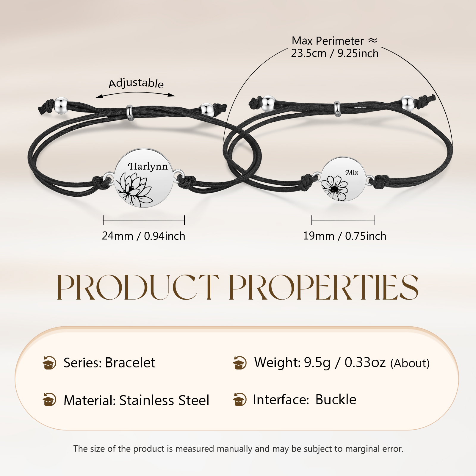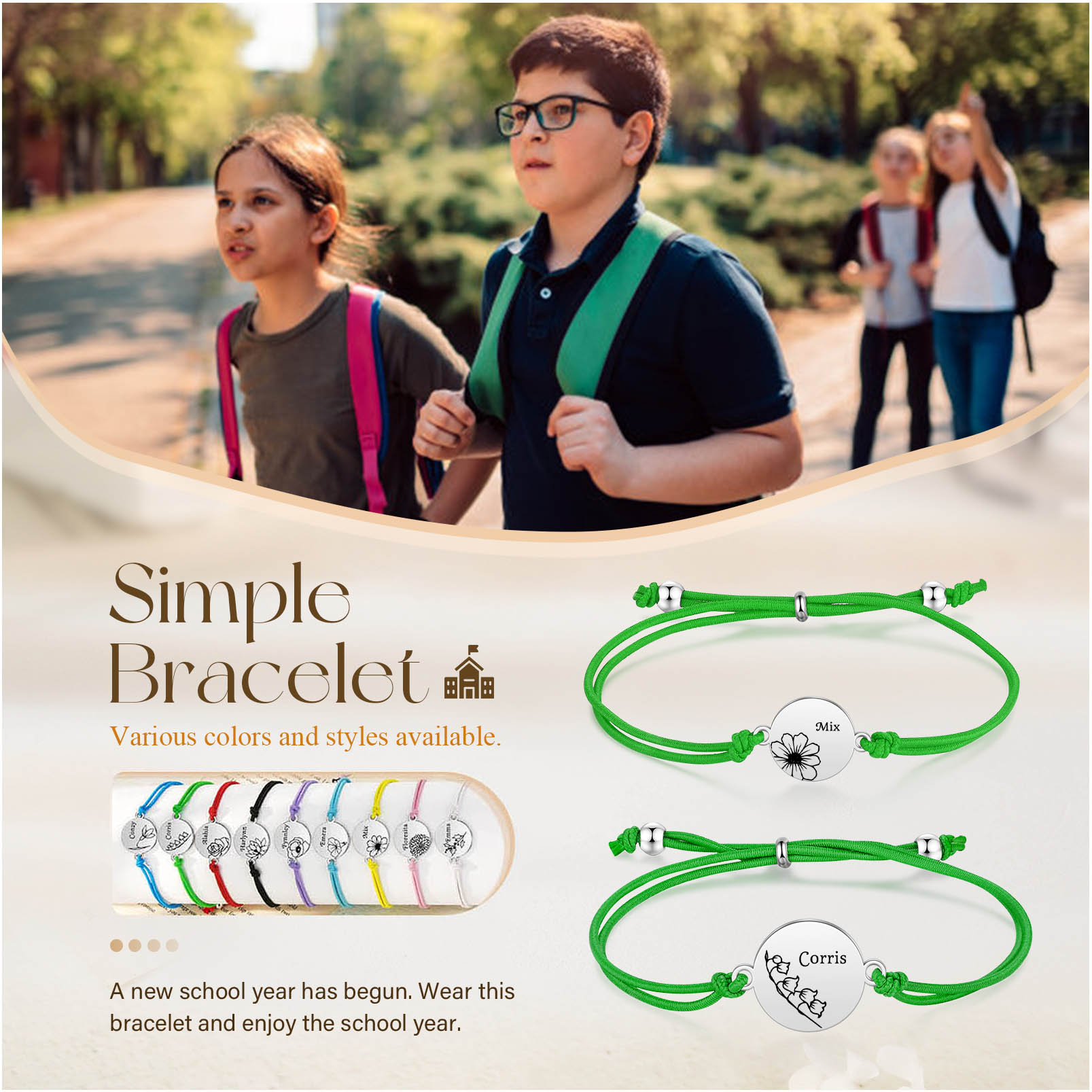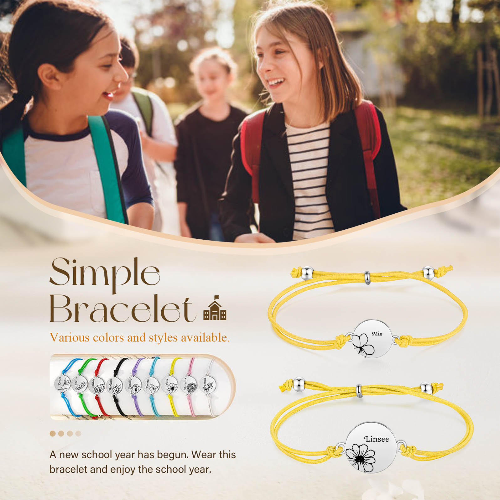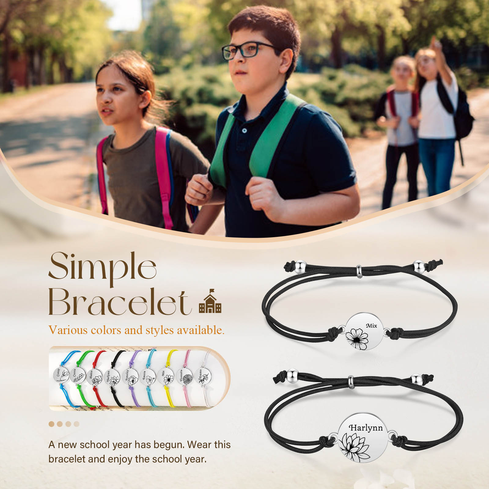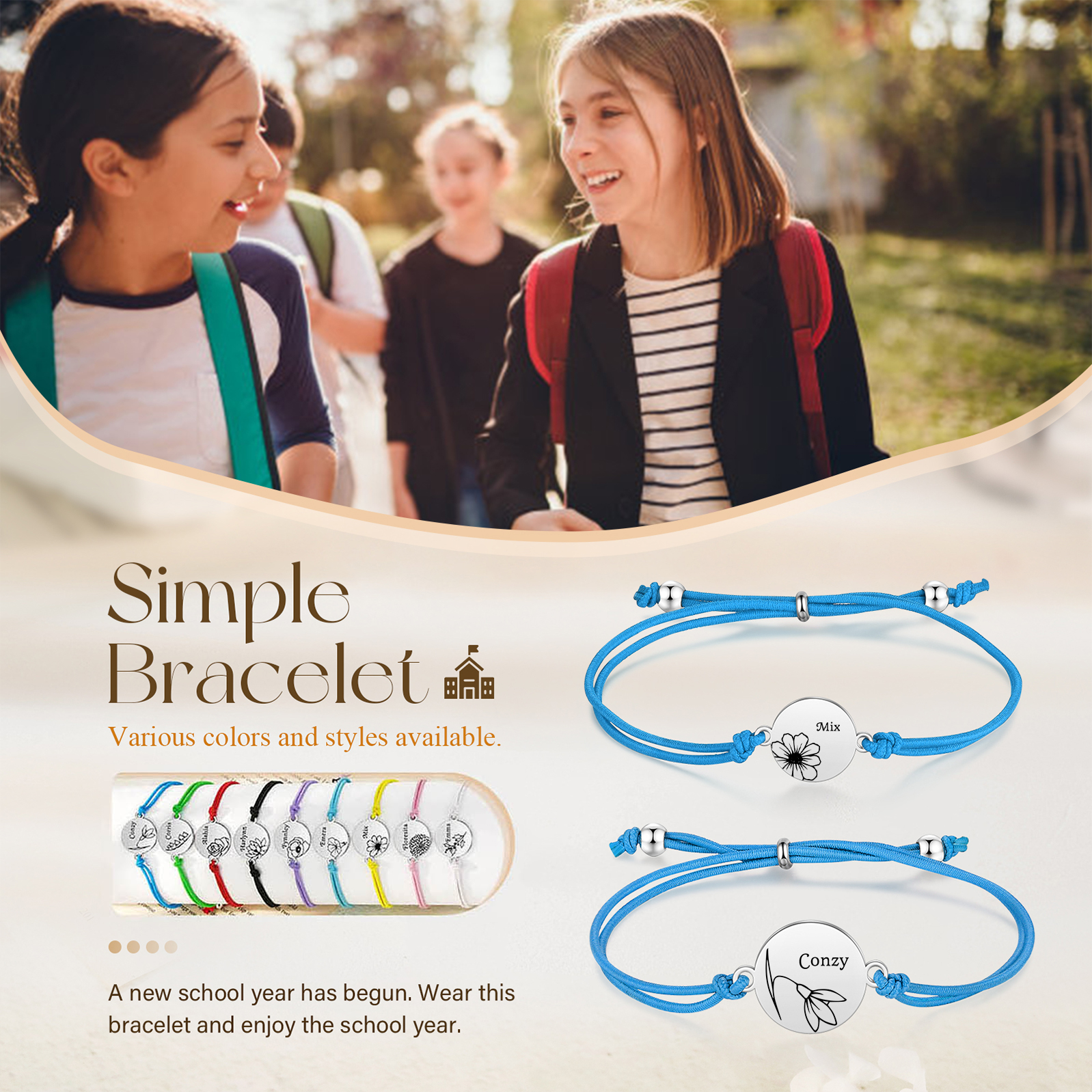 2PCS Braccialetto/Fasce per i capelli fiore di nascita con 2 nomi e 2 fiori personalizzati regalo per bambina/donna multicolori da scegliere