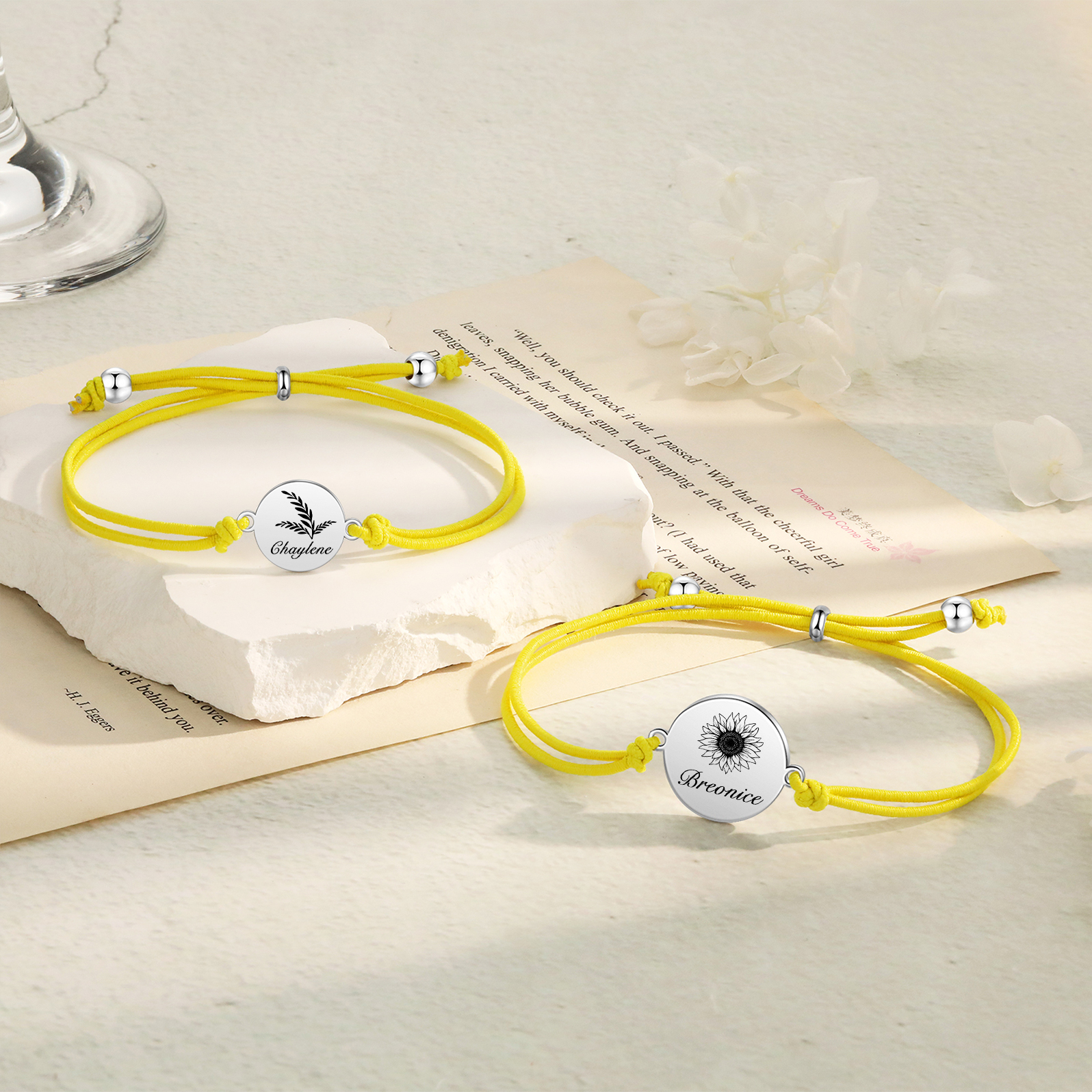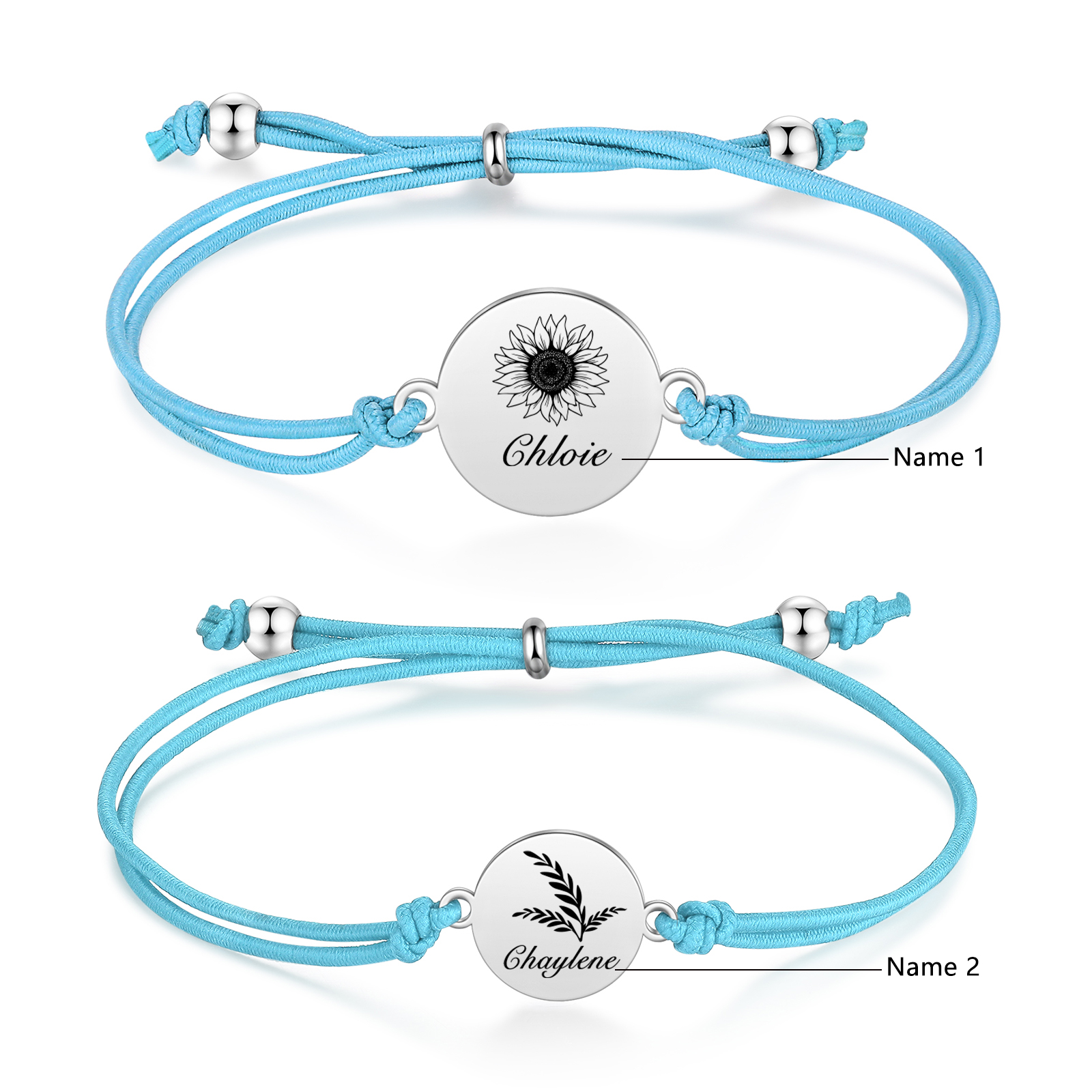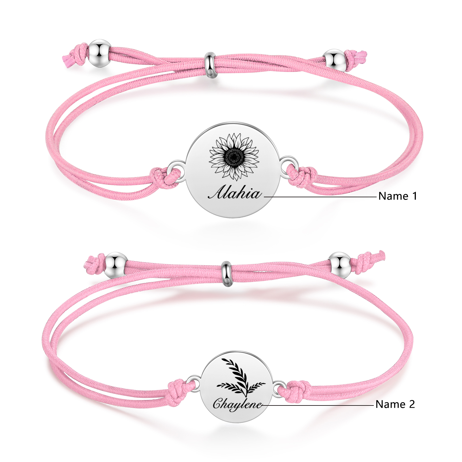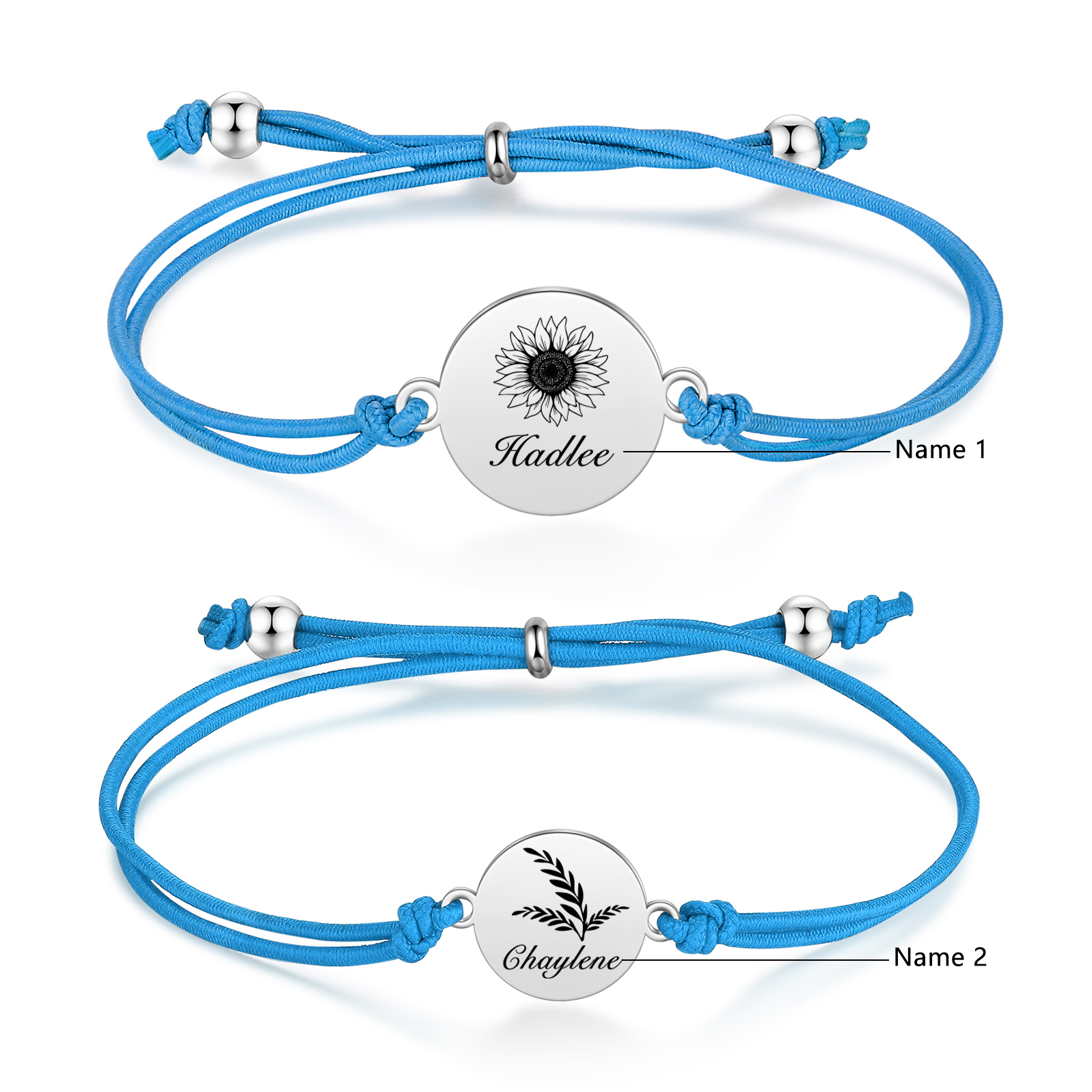 2PCS Braccialetto/Fasce per i capelli girasole con 2 nomi personalizzati regalo per bambina/donna multicolori da scegliere