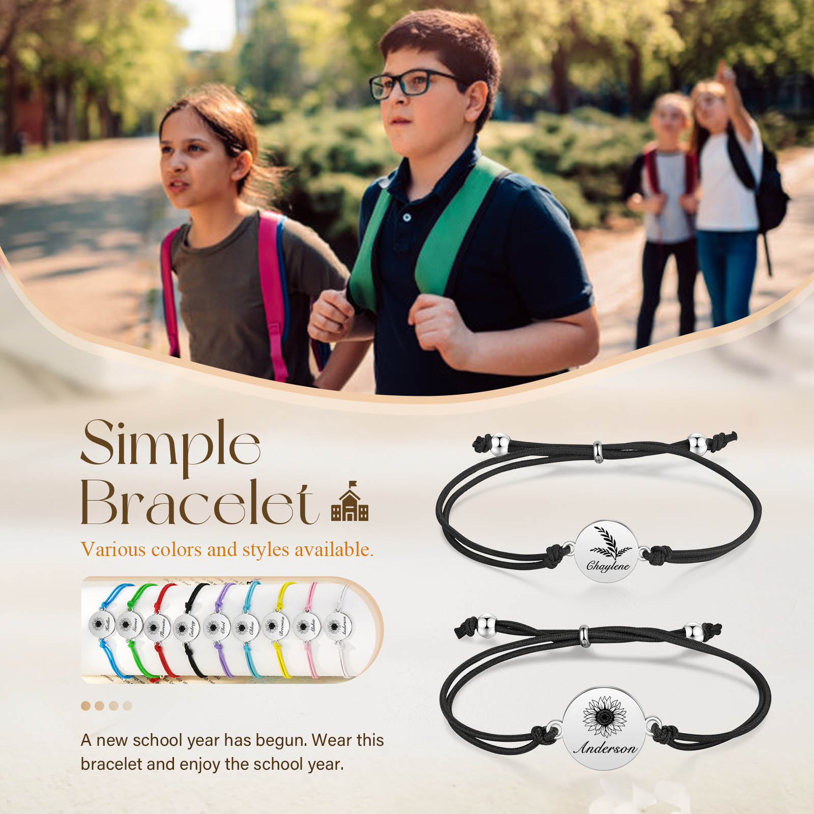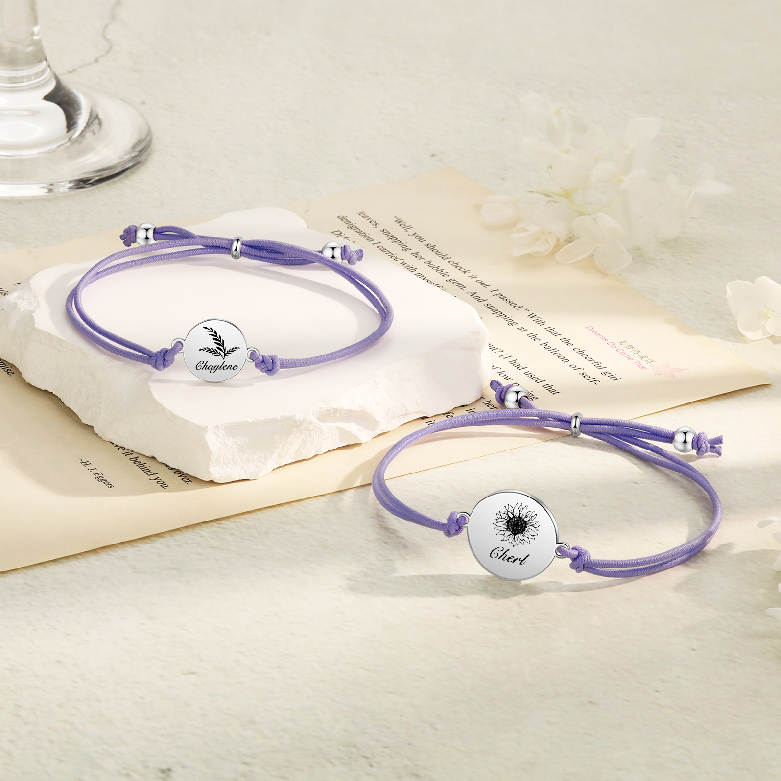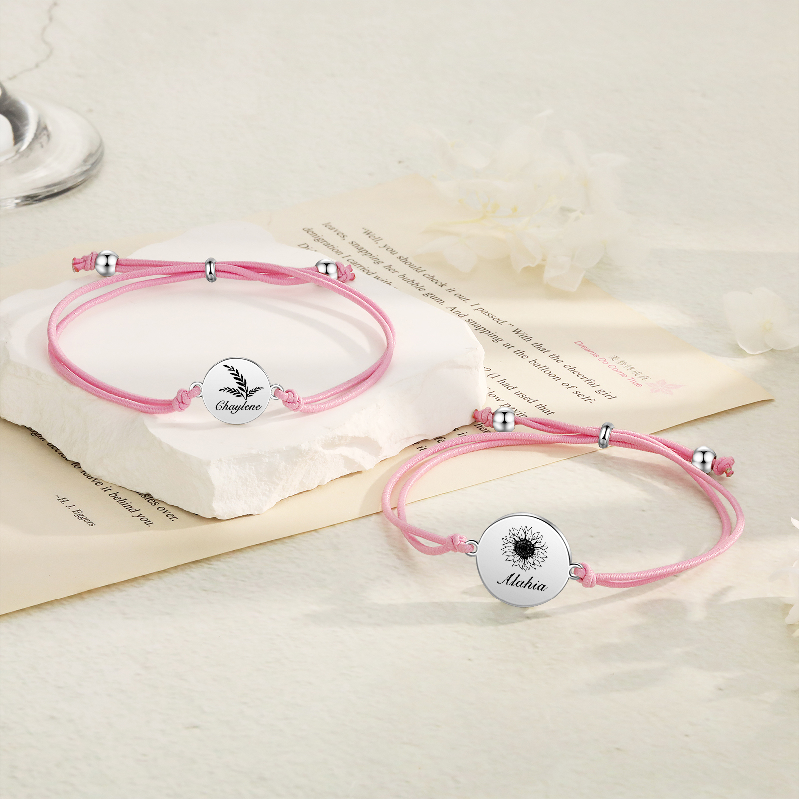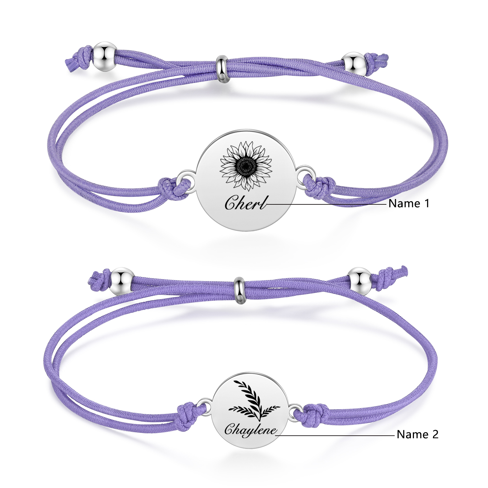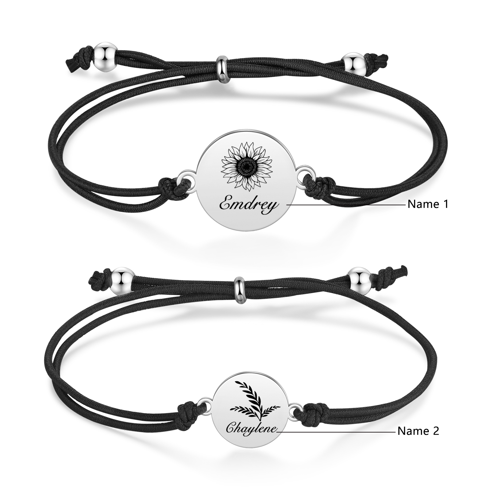 2PCS Braccialetto/Fasce per i capelli girasole con 2 nomi personalizzati regalo per bambina/donna multicolori da scegliere