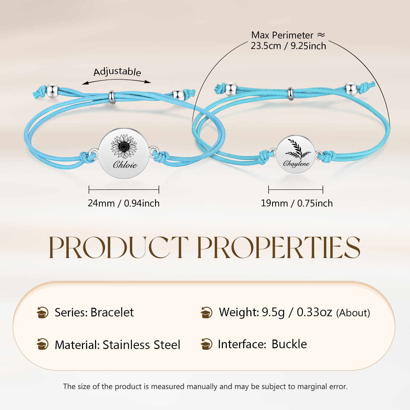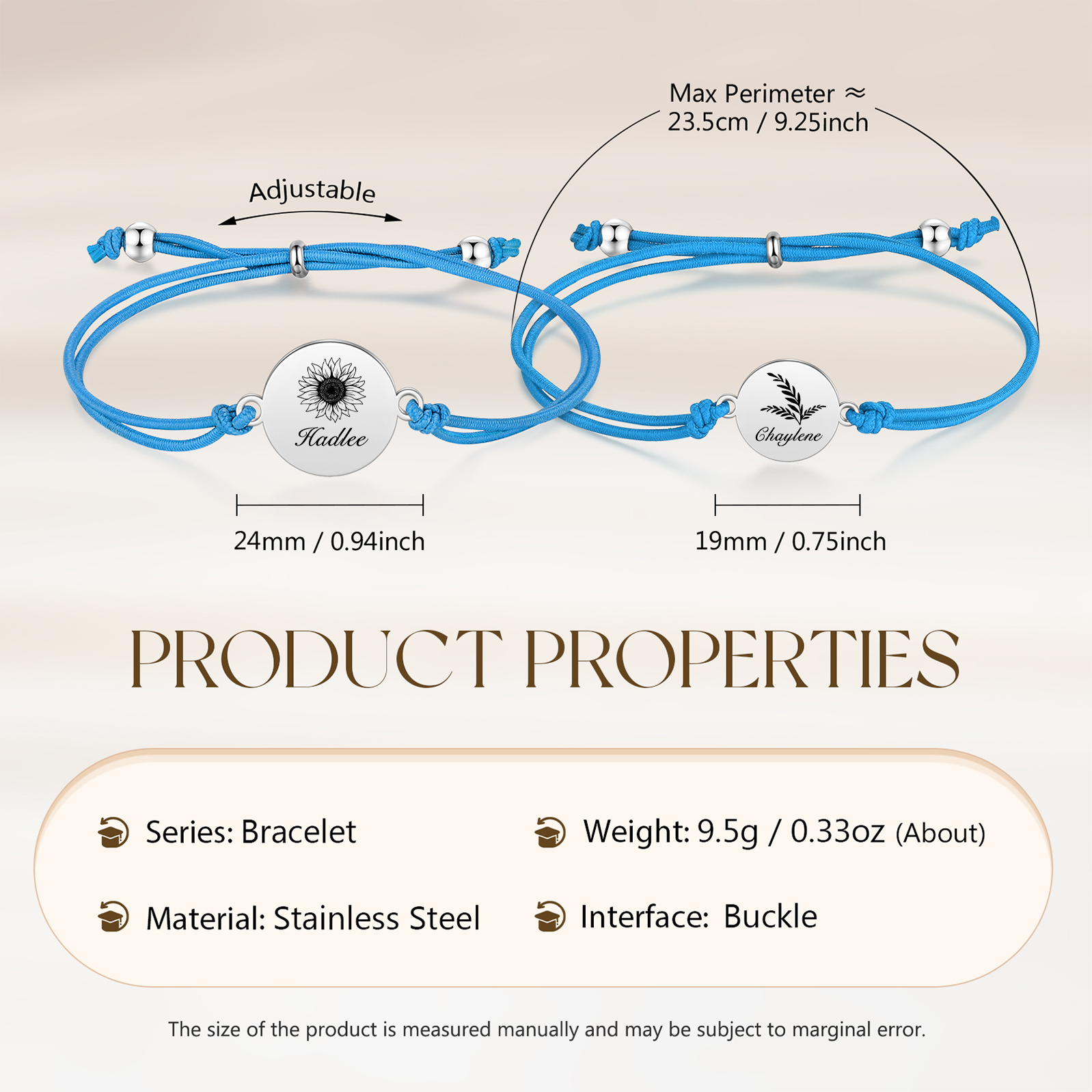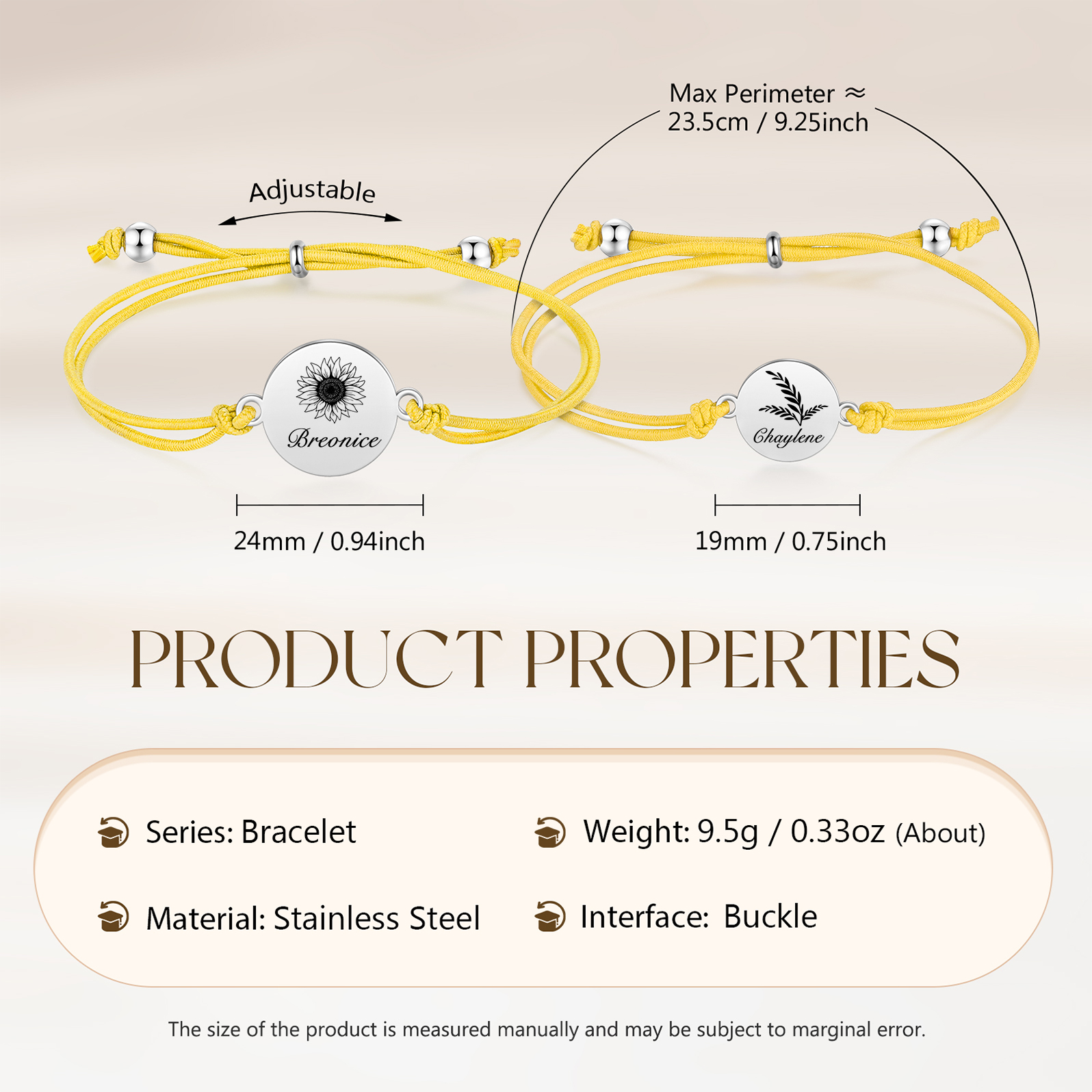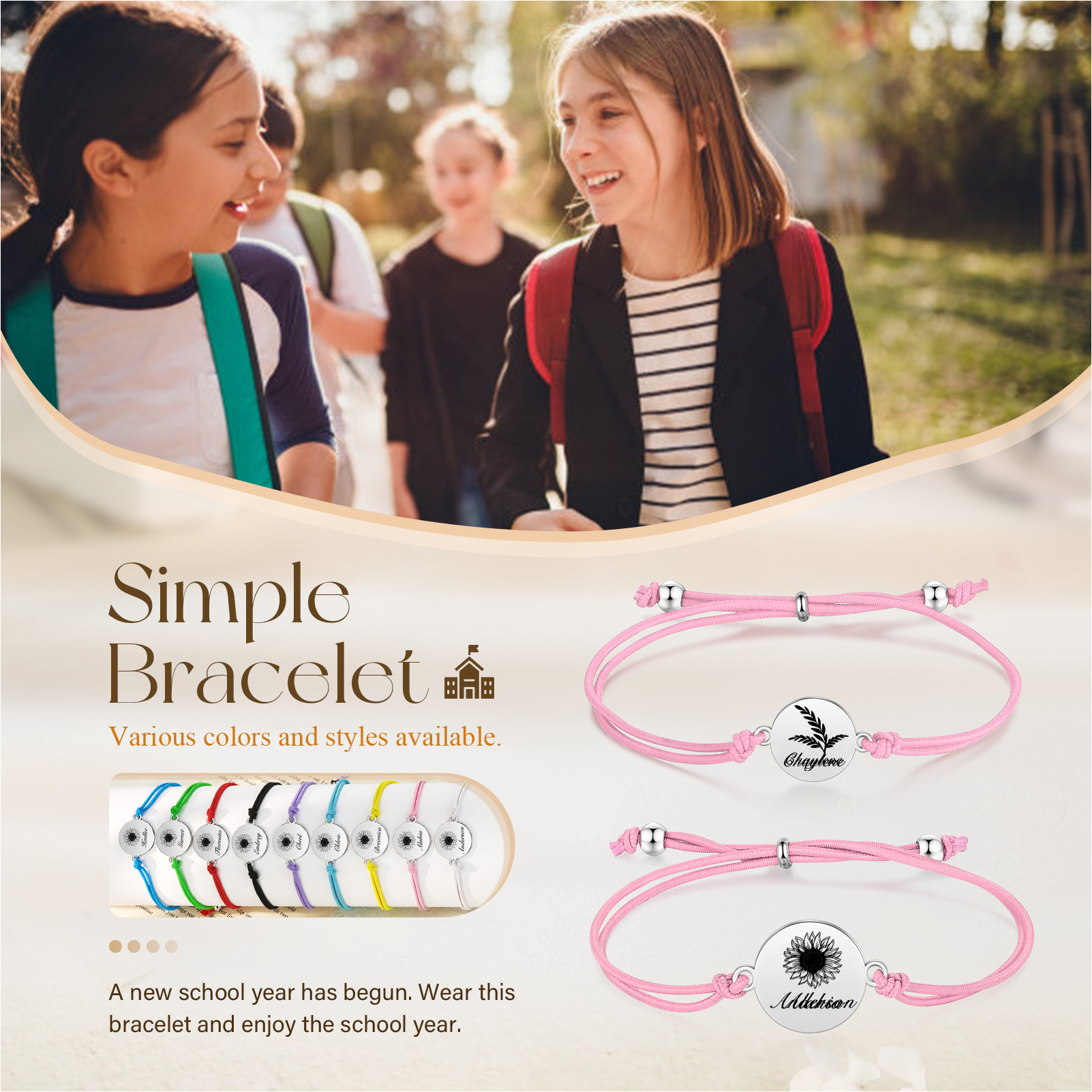 2PCS Braccialetto/Fasce per i capelli girasole con 2 nomi personalizzati regalo per bambina/donna multicolori da scegliere