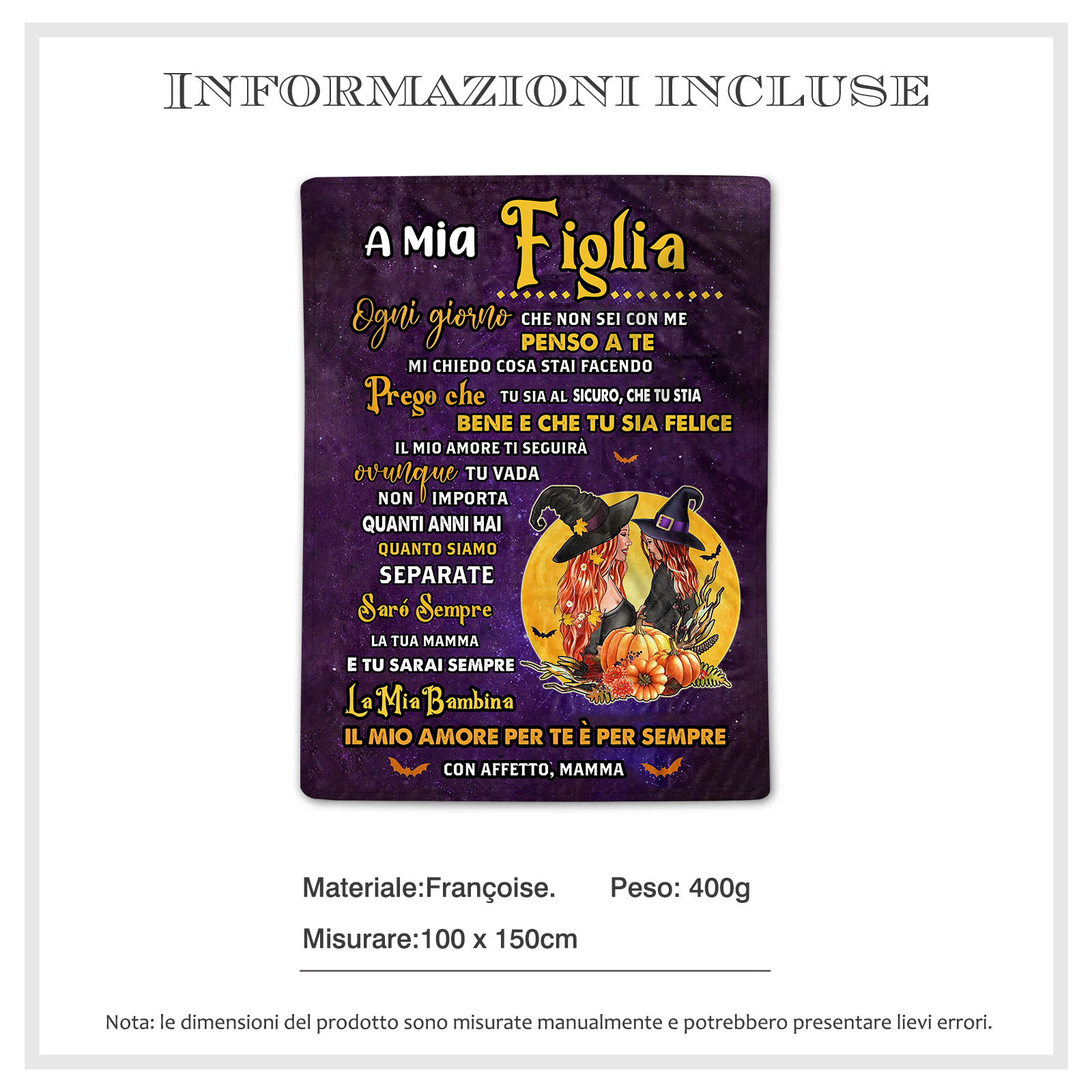 A Mia Figlia-coperta Halloween con parole sentimentale regalo casa famiglia mamma
