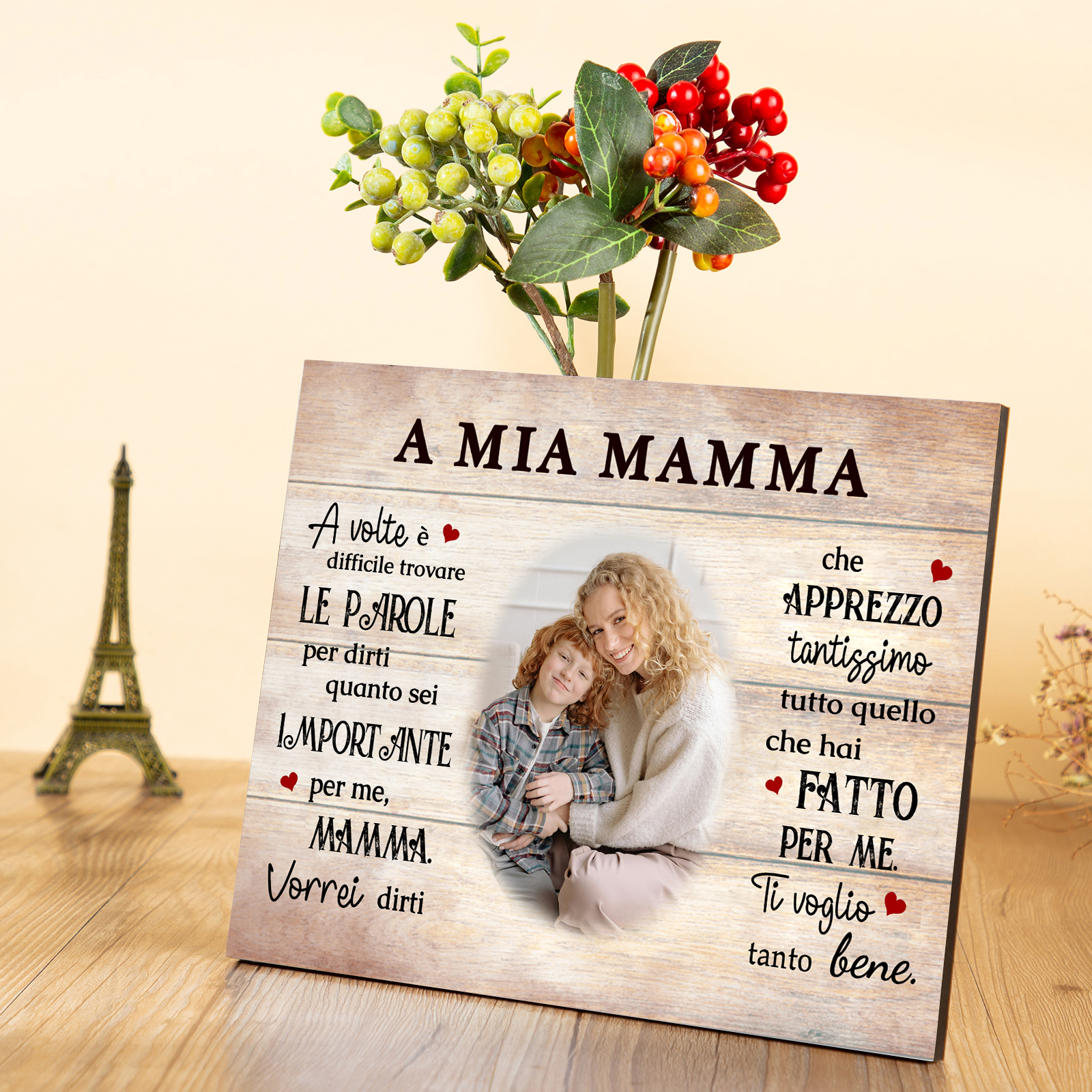 A MIA MAMMA-Targa in legno con 1 foto personalizzata regalo per mamma