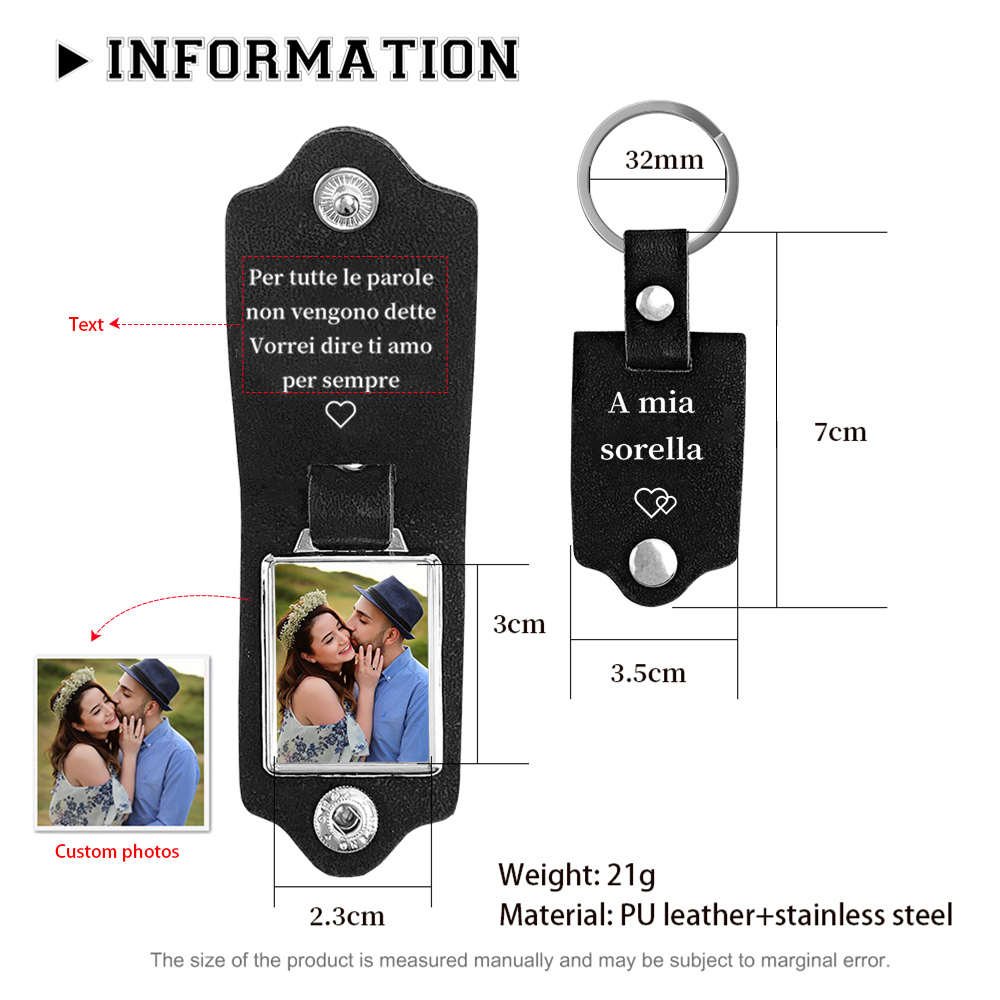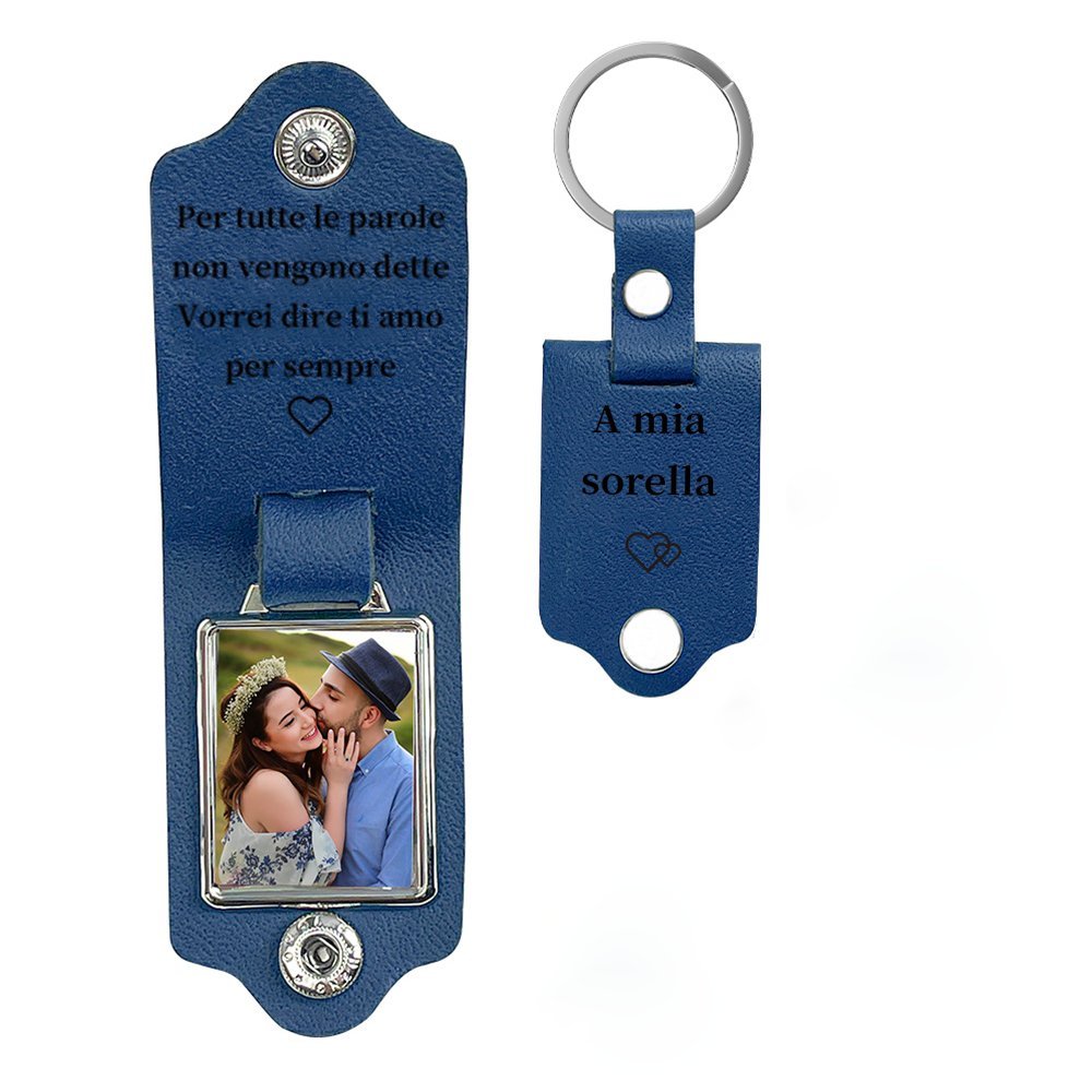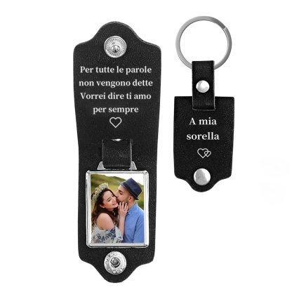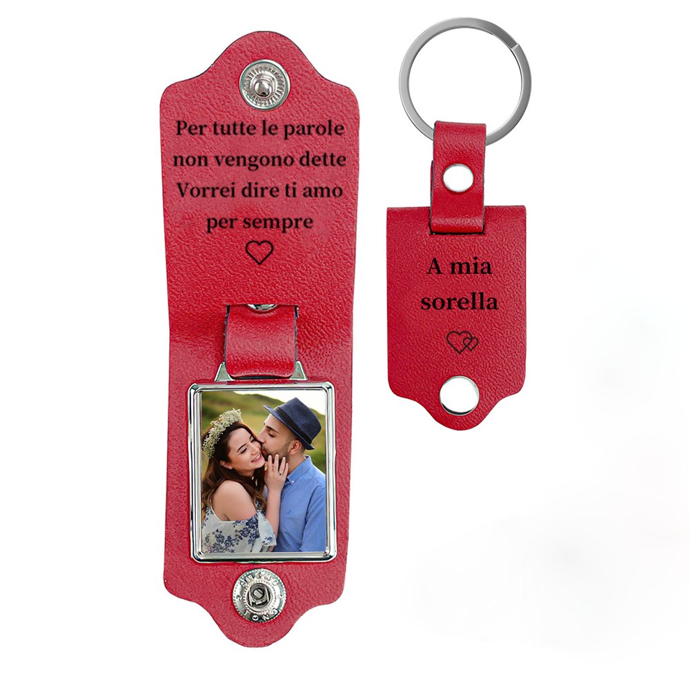 A mia sorella-Portachiavi pelle 1 testo e 1 foto personalizzabili