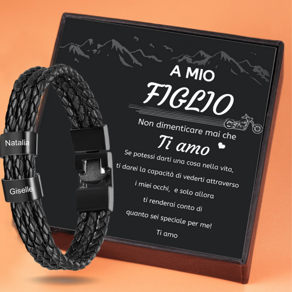A MIO FIGLIO - Braccialetto in pelle intrecciata 2 nomi Braccialetto maschile personalizzato