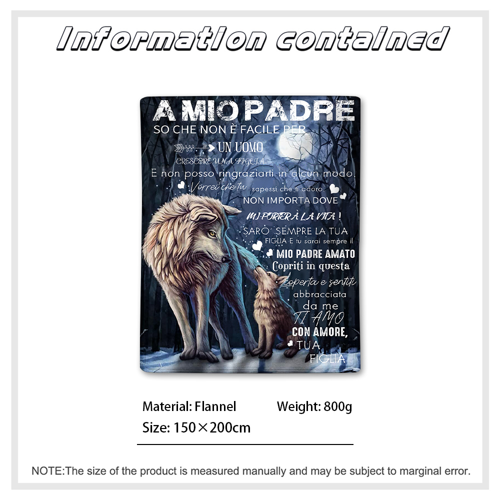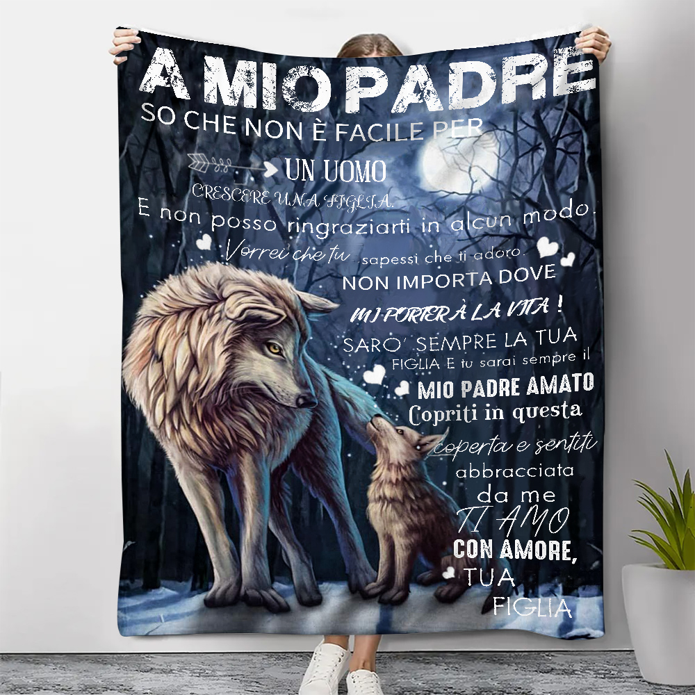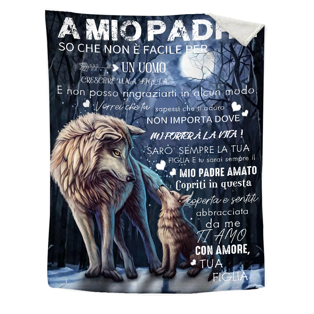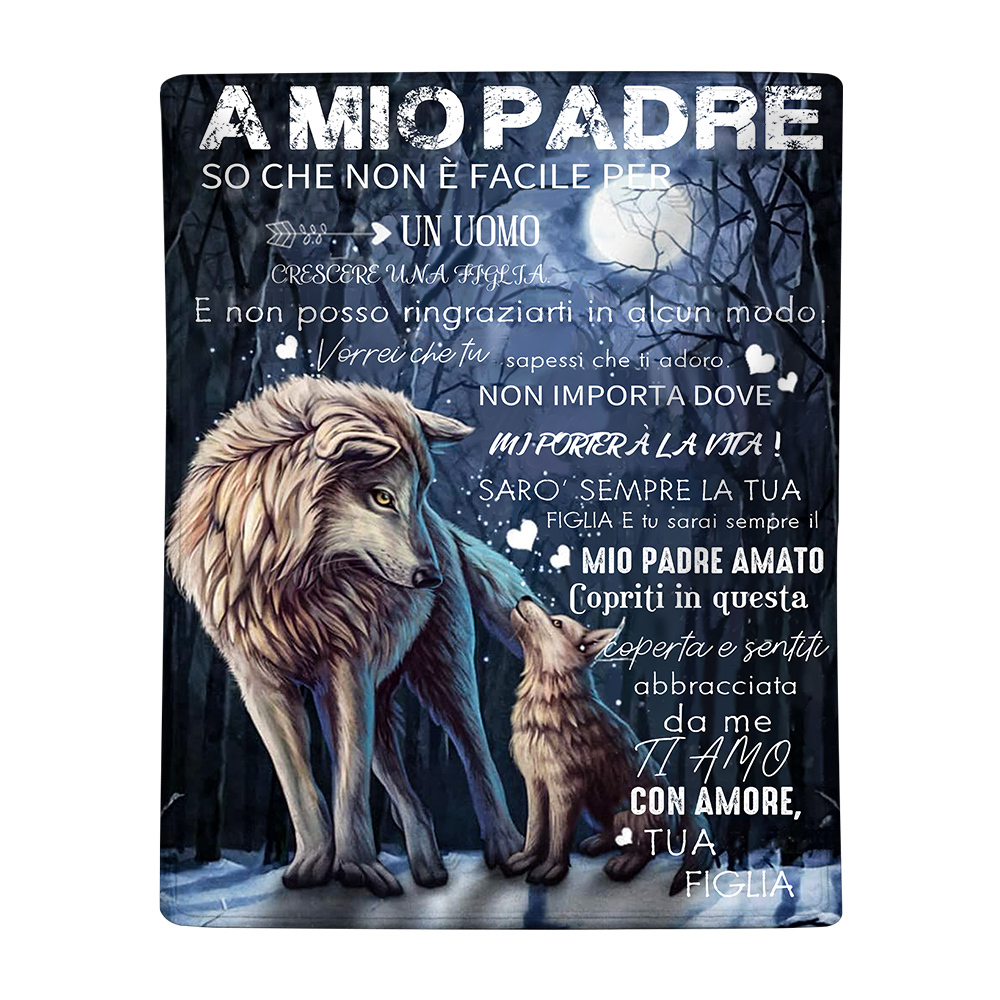 A mio padre so che non è facile per un uomo crescere una figli -Coperta lupo per papà regalo per la festa del papà