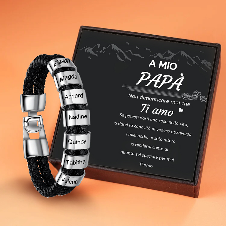 A MIO PAPÀ-Braccialetto in pelle 7 nomi personalizzati regalo per la festa del papà